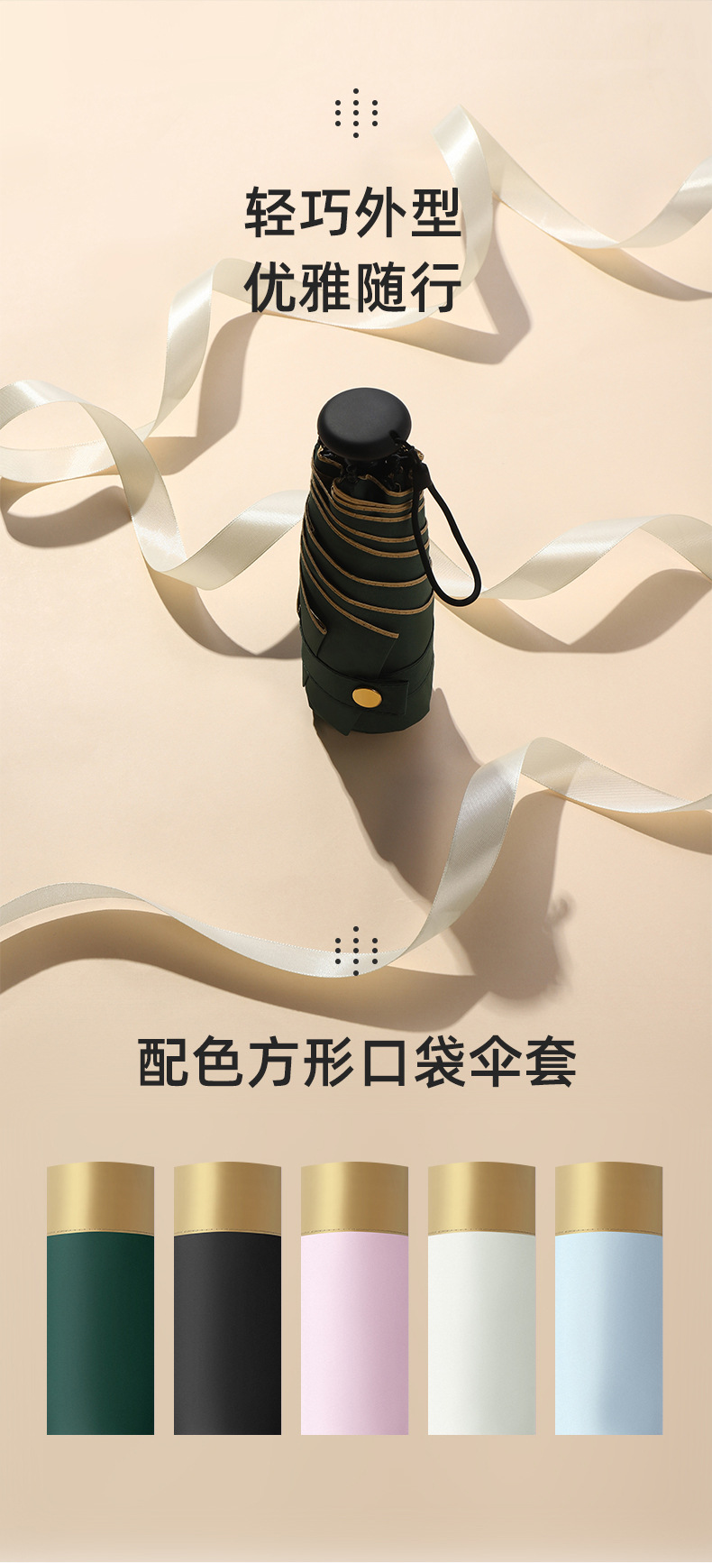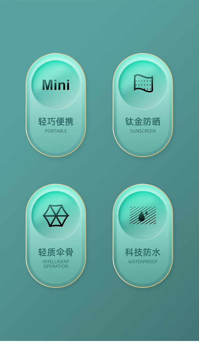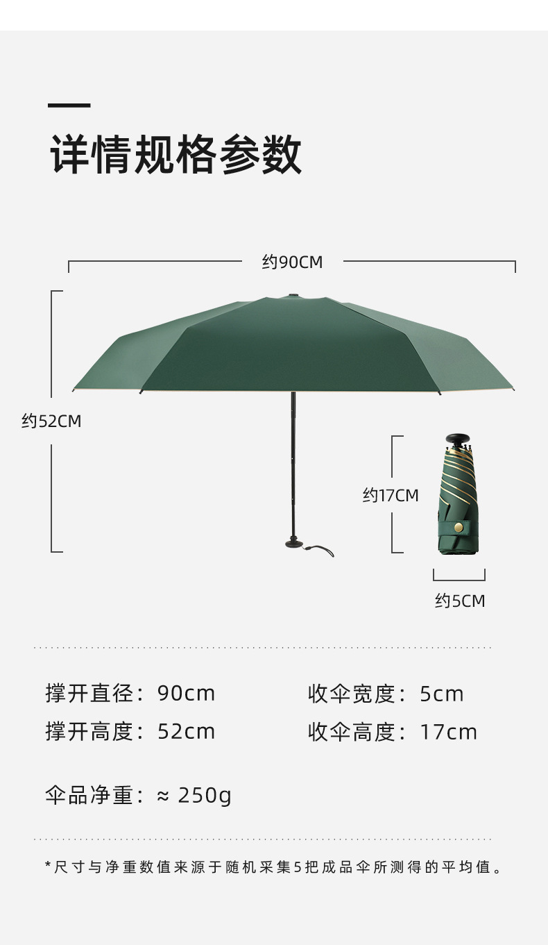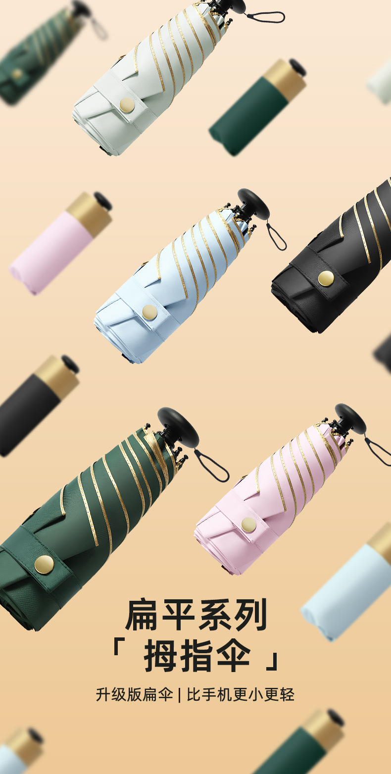 2022新款金边拇指伞五折超轻迷你小巧便携黑胶降温遮阳伞防晒防紫外线太阳伞