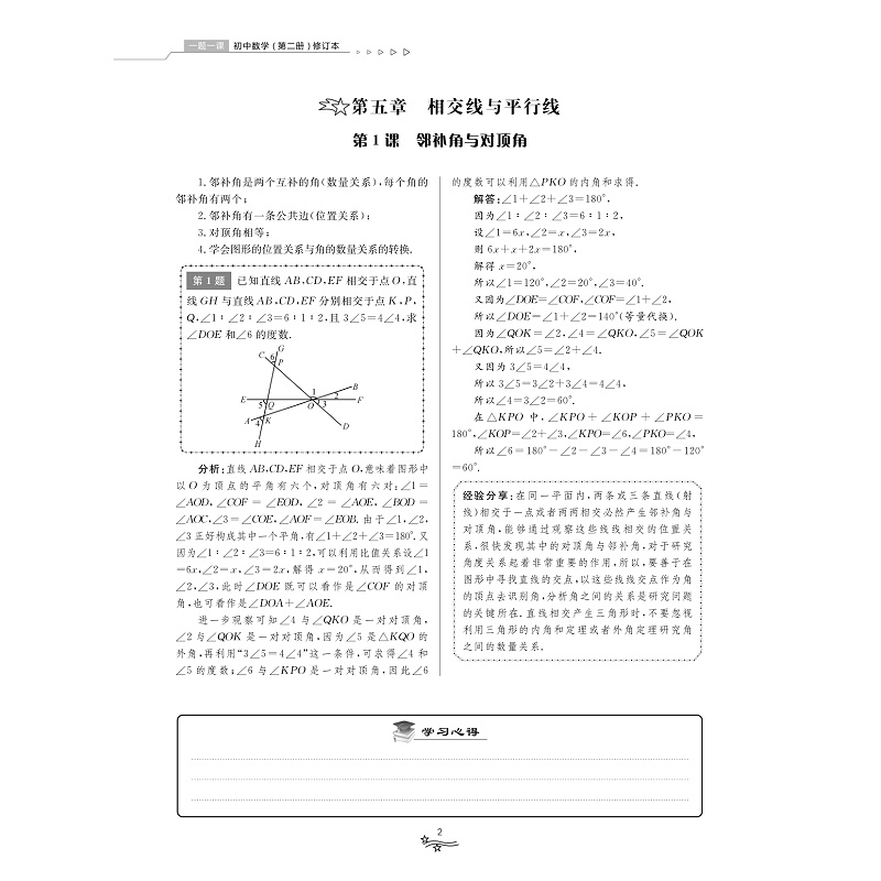 每一课,作者精选一道例题分析讲解,帮助学生理解并学会运用同步教材所学知识及技能,然后通过变式练习内化落实。 针对“一题一课”中“一题”的解析,作者主要是围绕以下几方面展开:解题中用到了哪些知识?解题的关键在哪里?思路是怎样打开的?推理是否严谨?还有别的解法吗?这种解法能用于其他问题吗?这个问题能够推广吗?改变一下条件如何?改变一下结论如何?其中,《一题一课.初中数学(第二册)》适合使用人教版的七年级学生下学期同步学习用,也适合使用其他版本学生根据专题自主学习用。