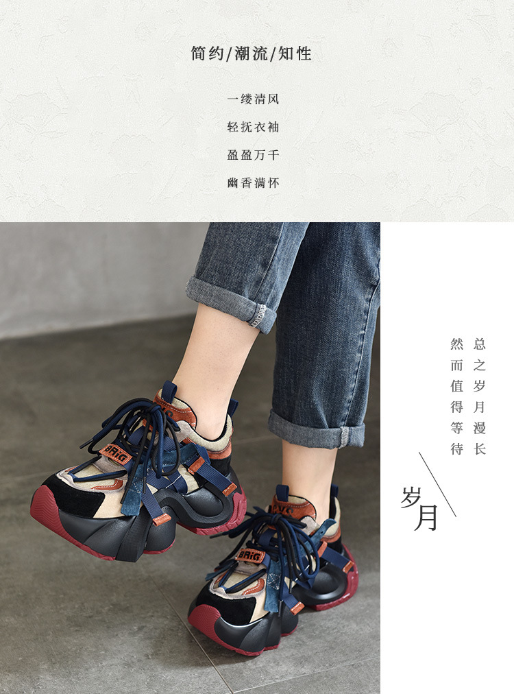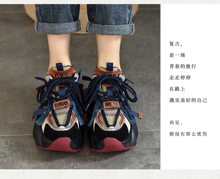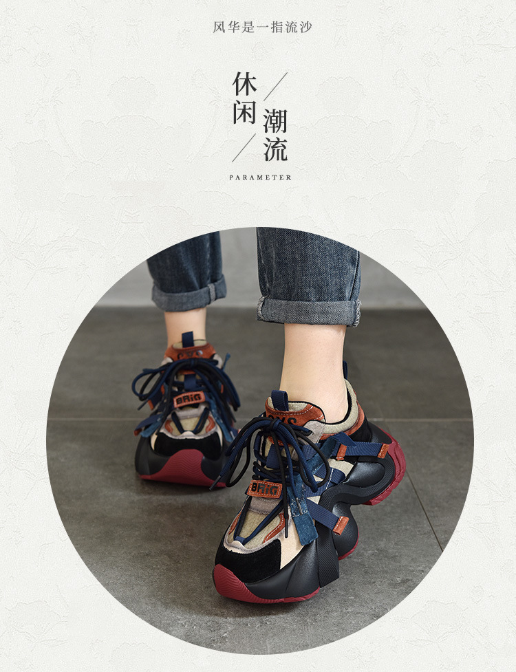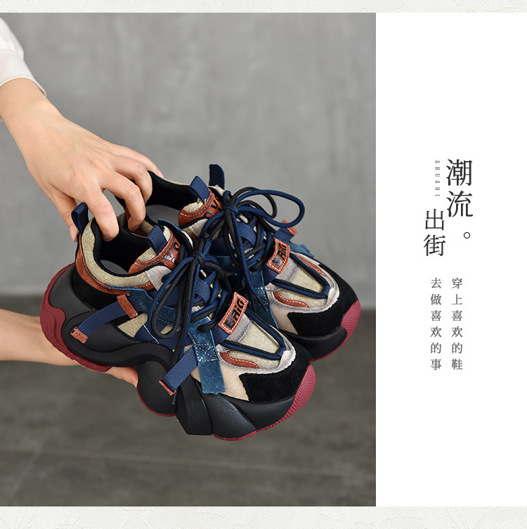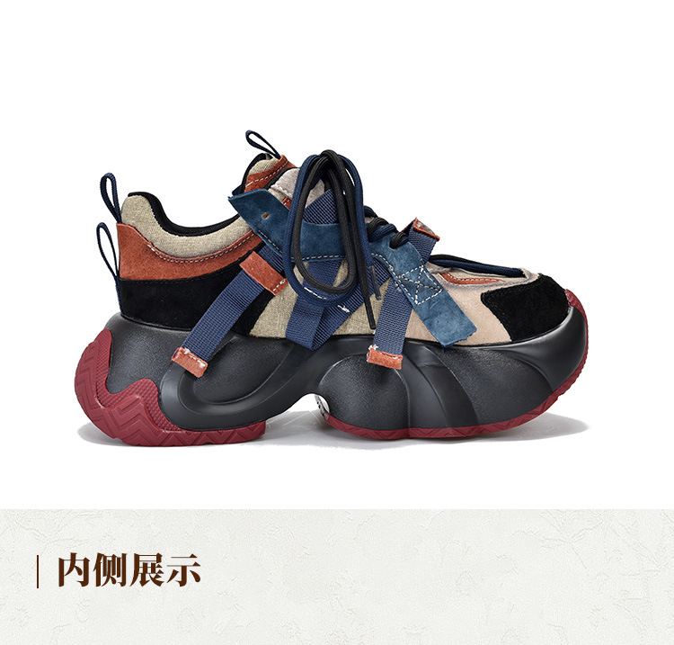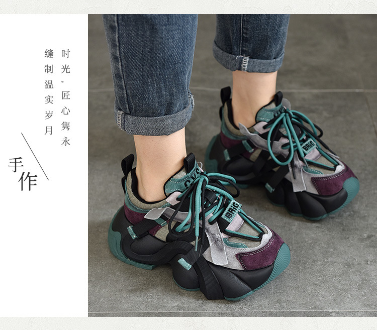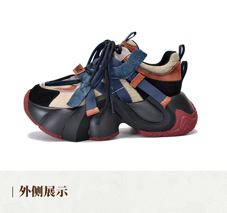 T50312-0112024春季新款厚底老爹鞋女休闲真皮百搭系带低帮鞋设计感运动女鞋