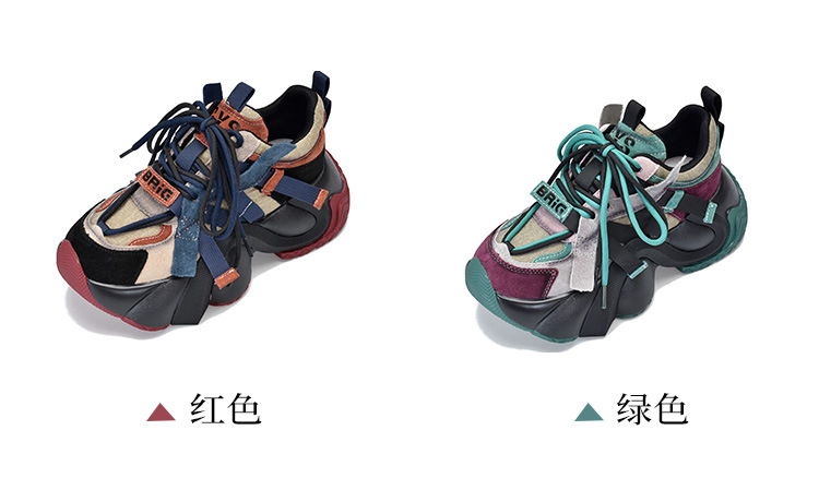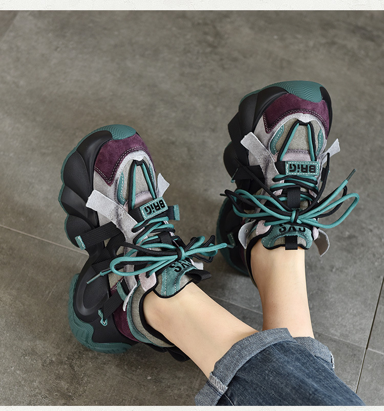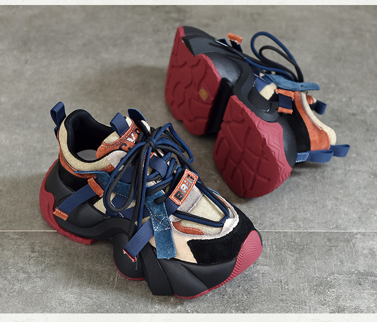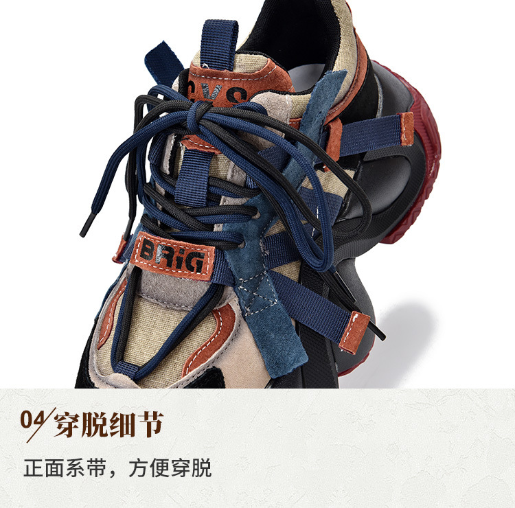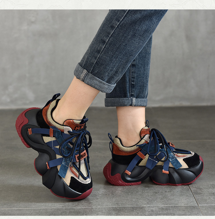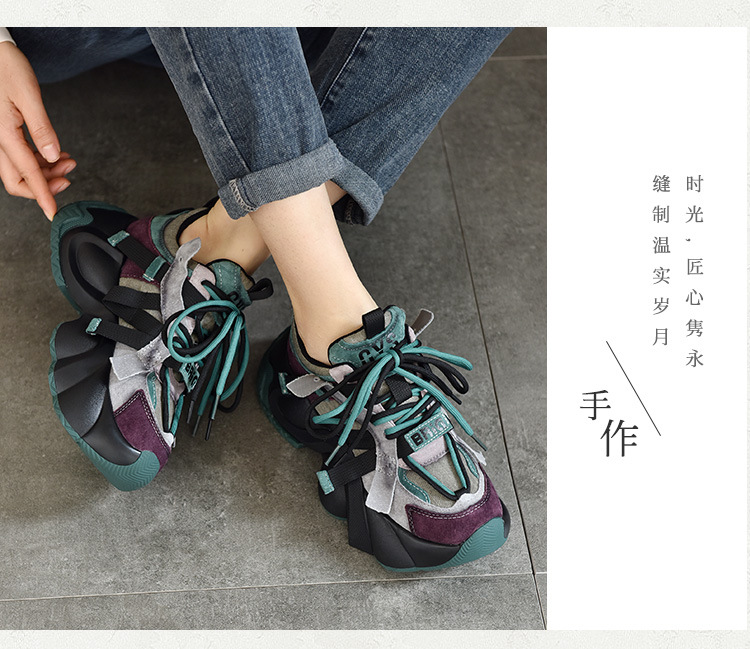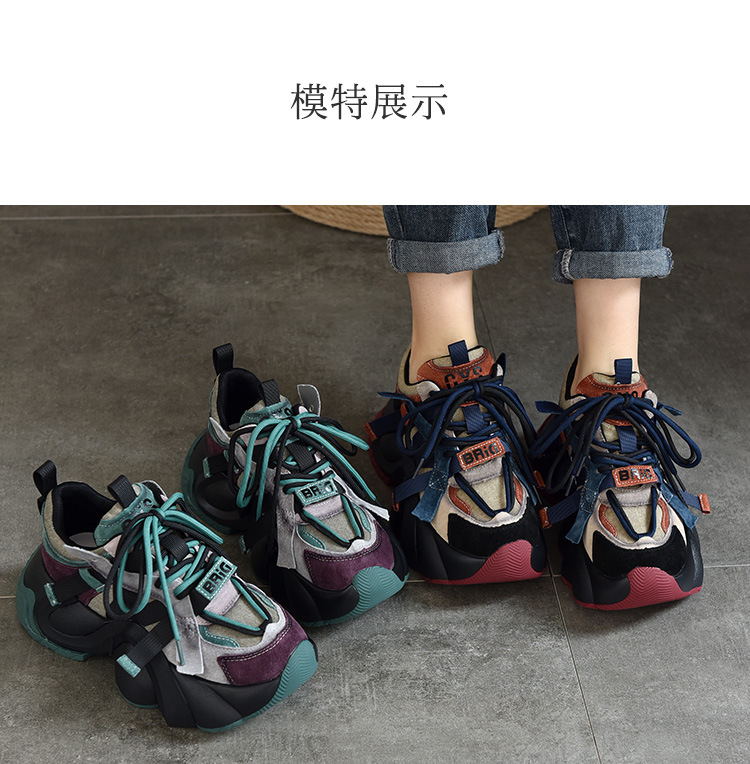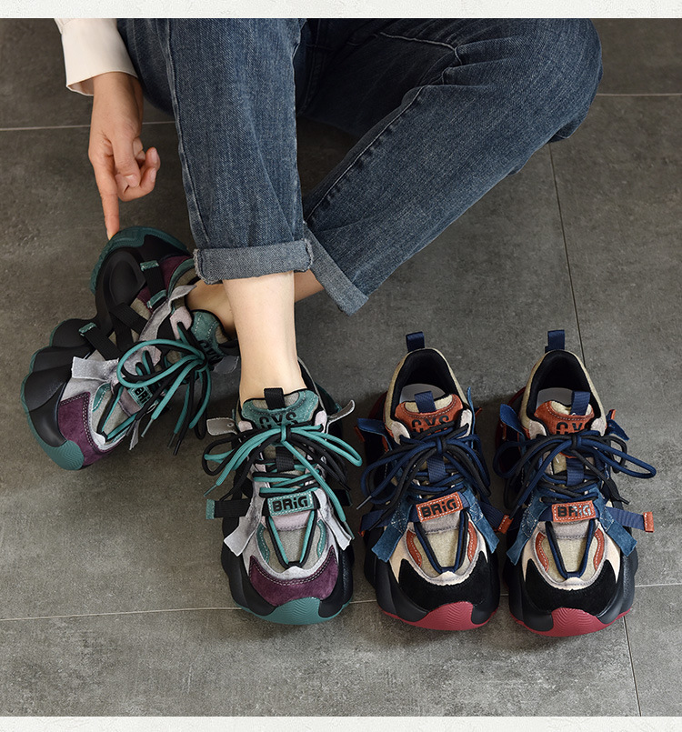 T50312-0112024春季新款厚底老爹鞋女休闲真皮百搭系带低帮鞋设计感运动女鞋
