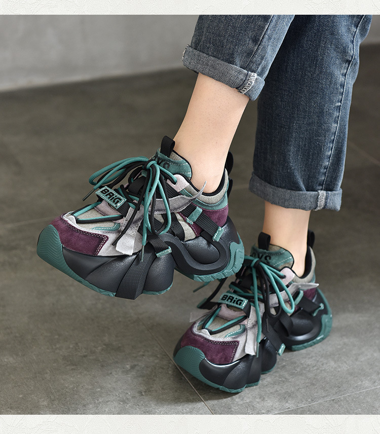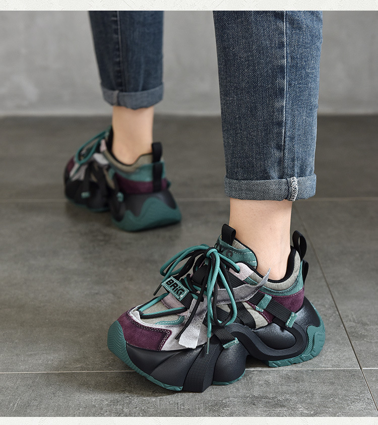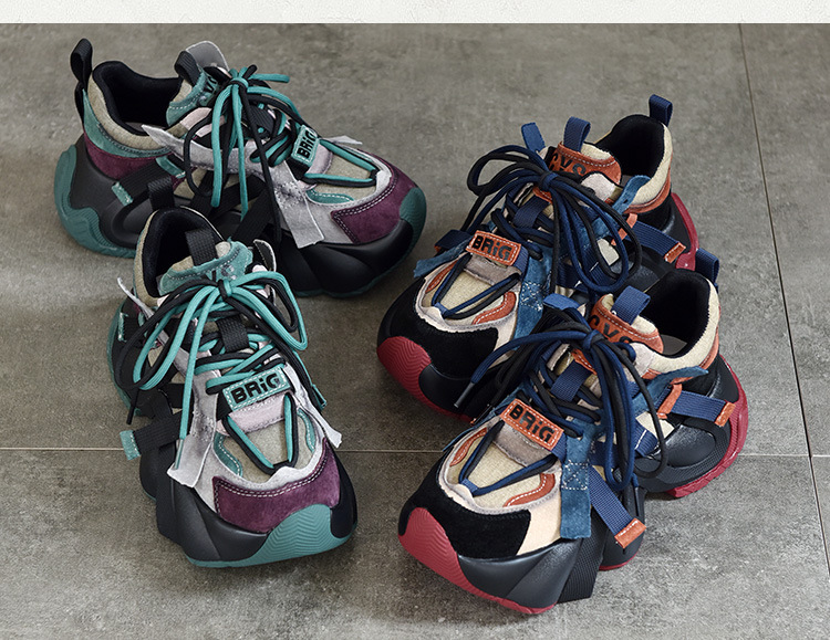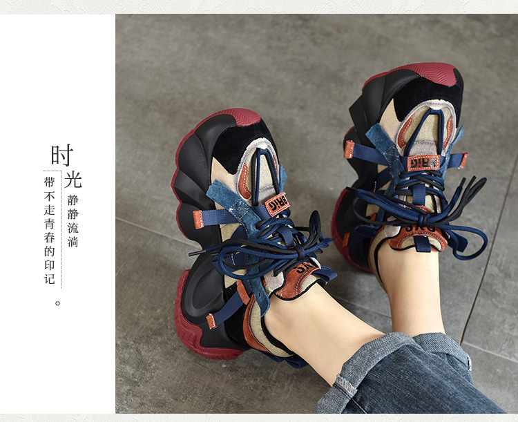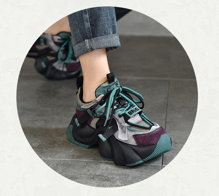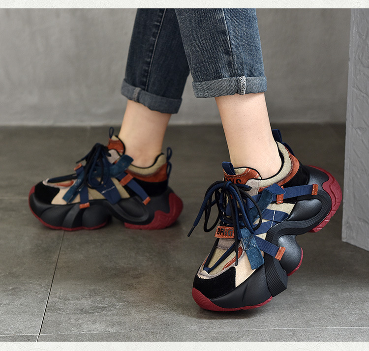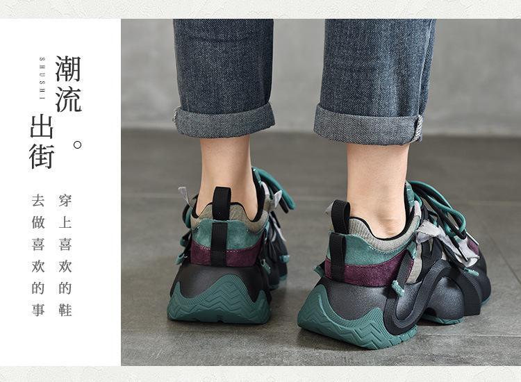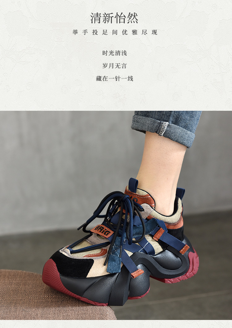 T50312-0112024春季新款厚底老爹鞋女休闲真皮百搭系带低帮鞋设计感运动女鞋