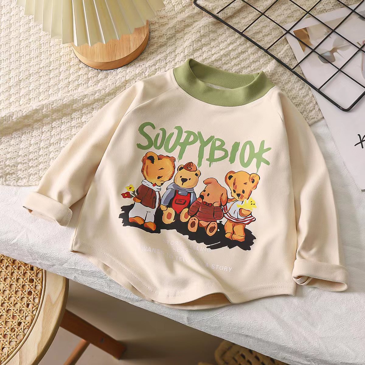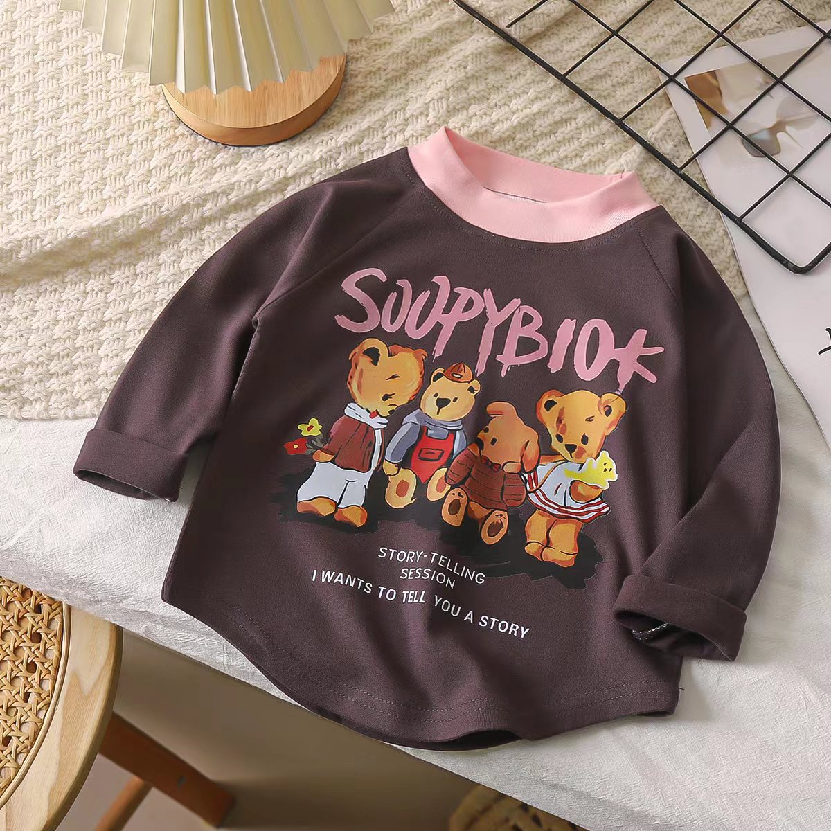 【萌趣卡通,增添童趣】2024春季新款小熊T恤男童洋气,不规则长袖T恤女童上衣舒服打底外穿,多彩多色 靓丽穿搭!