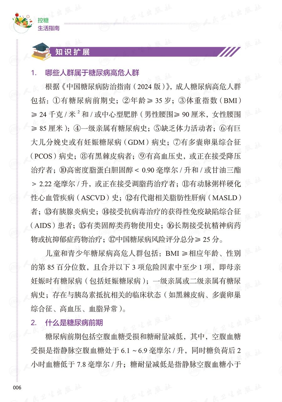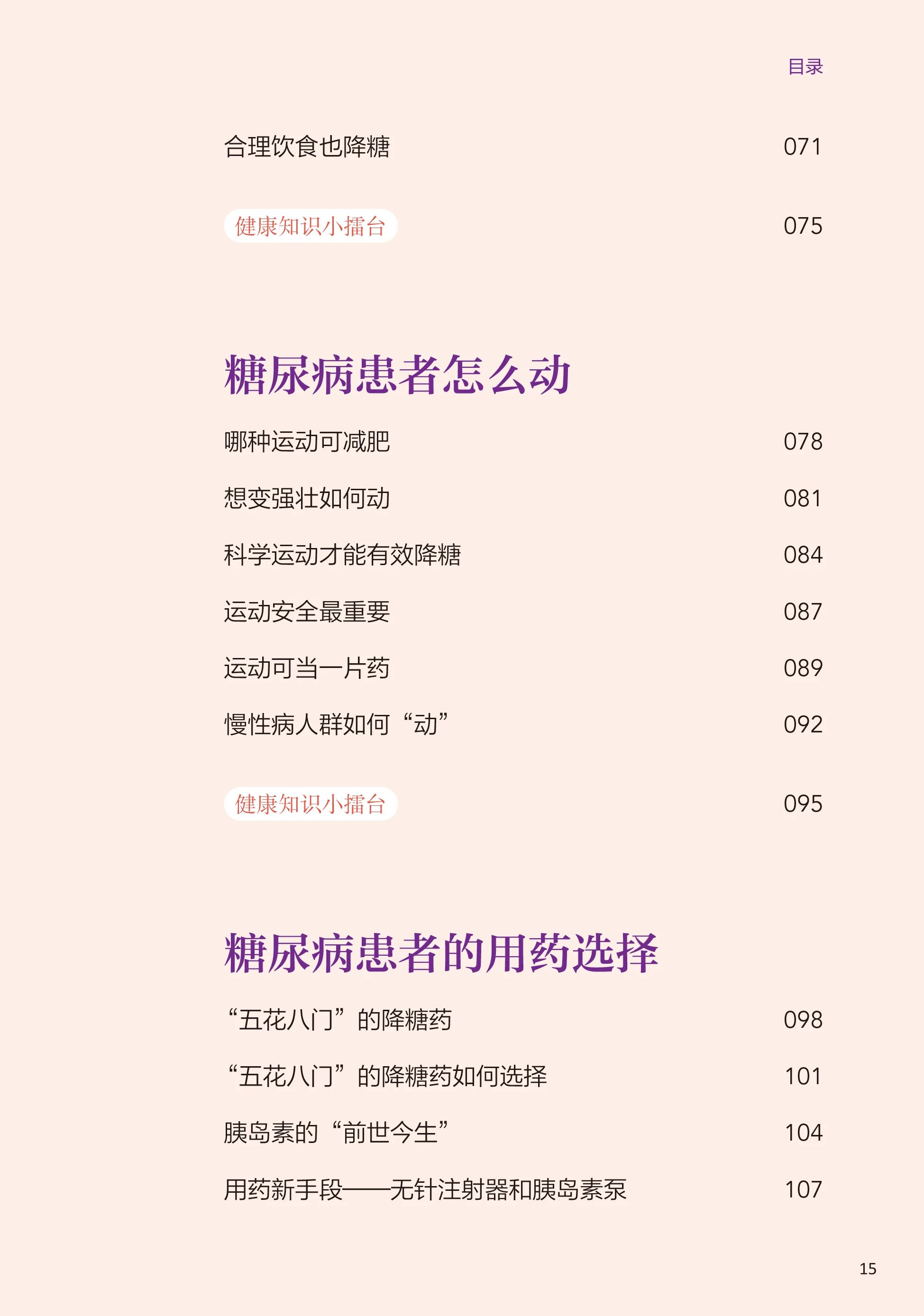 本书由国家卫生健康委组织内分泌领域的权威主编和专家进行编写,保证了知识的科学性、准确性。图书注重知识性和趣味性统一,在介绍健康知识时,穿插有意义的小案例、小故事及自测题,增加读者的代入感、互动感和阅读兴趣。图书体例形式创新,图文并茂,配以视频演示,生动有趣帮助,帮助读者建立控糖的正确认知,掌握科学的管理方法,找到属于自己的“甜蜜平衡点”。