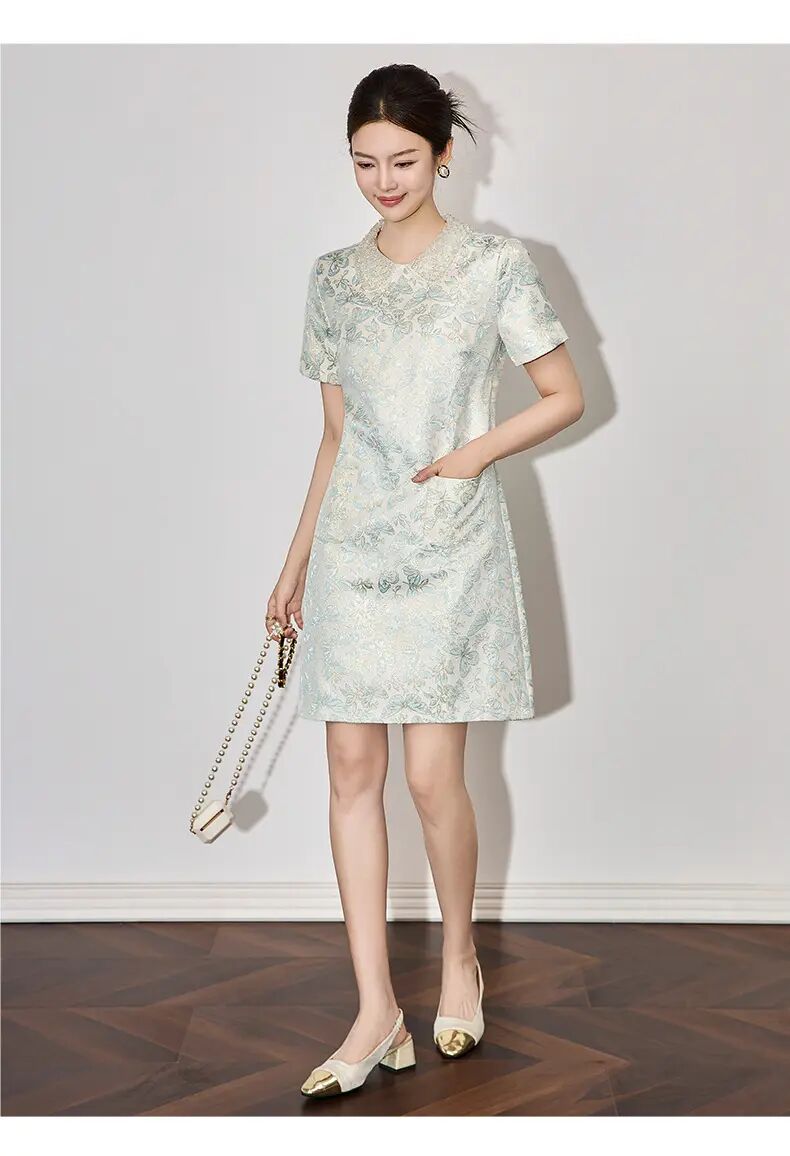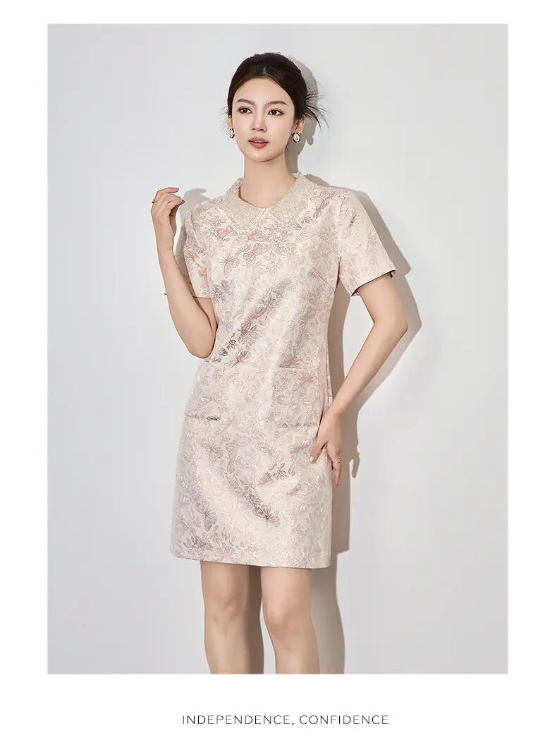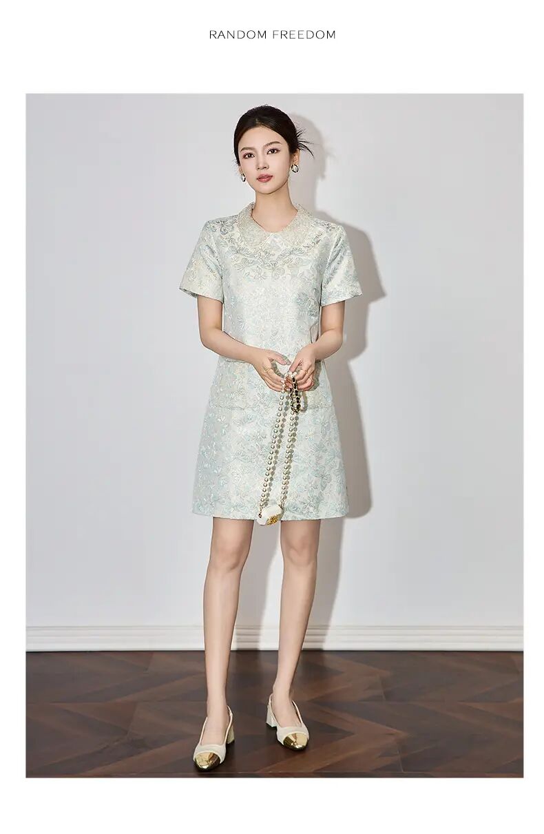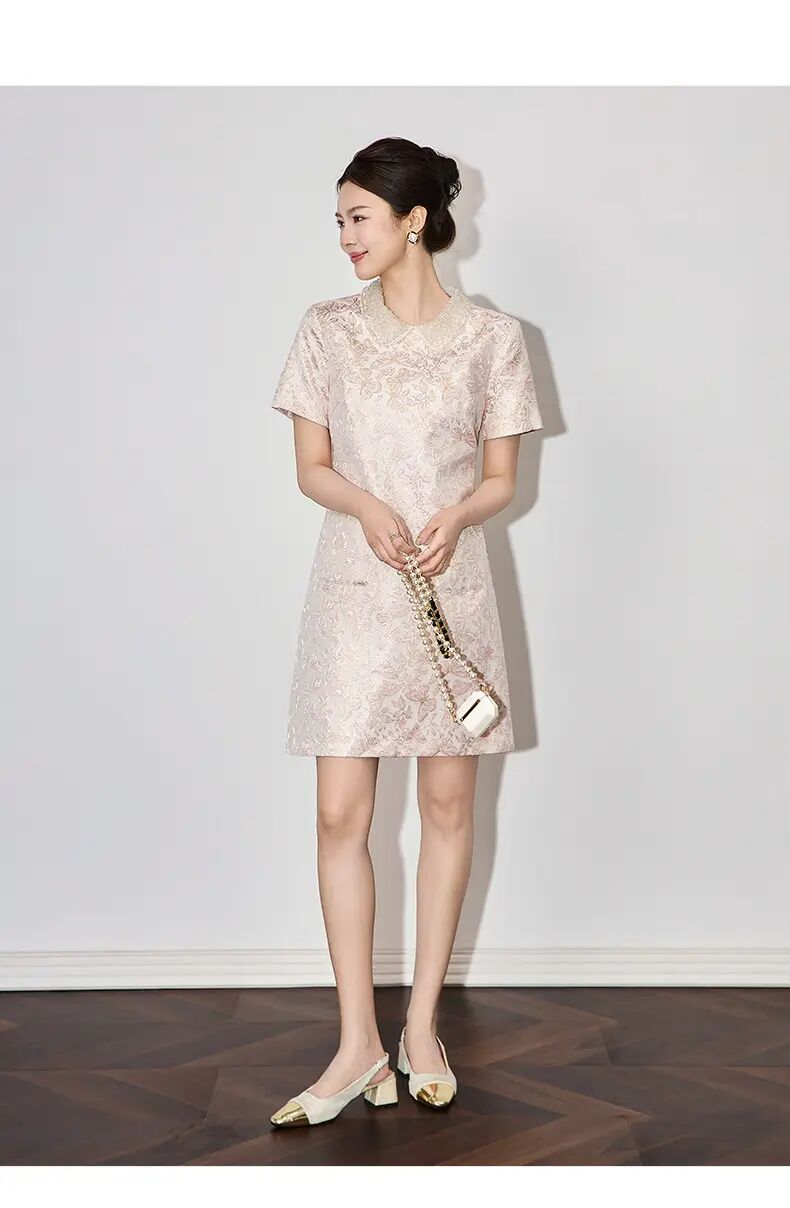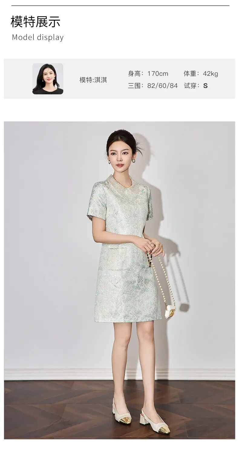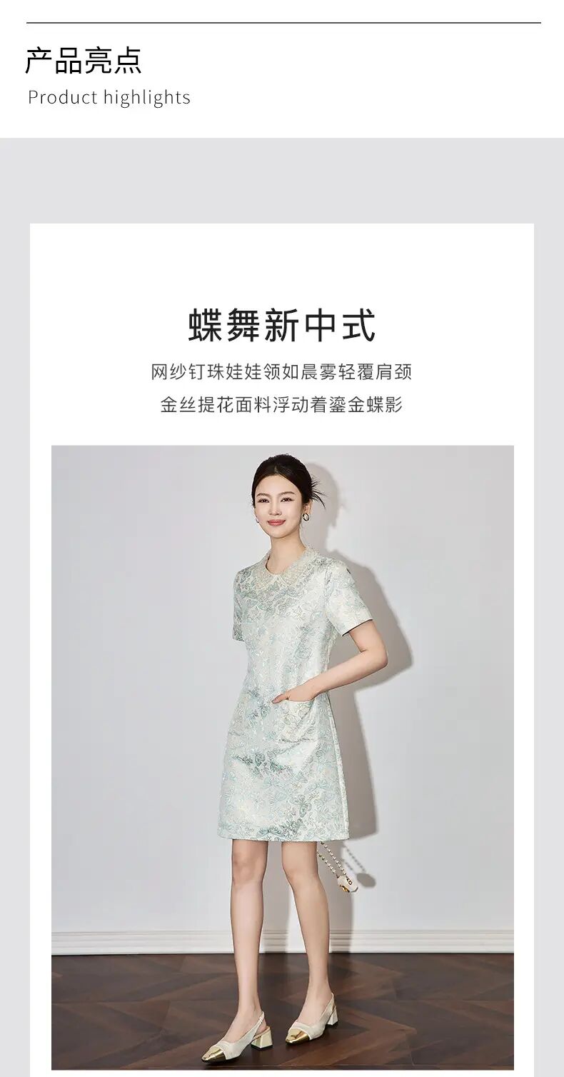 【高货wl】全新升级【铂金会员275/天猫369/差价94】(73043) 洛诗琳时尚名媛优雅新中式重工钉珠翻领金丝提花连衣裙
