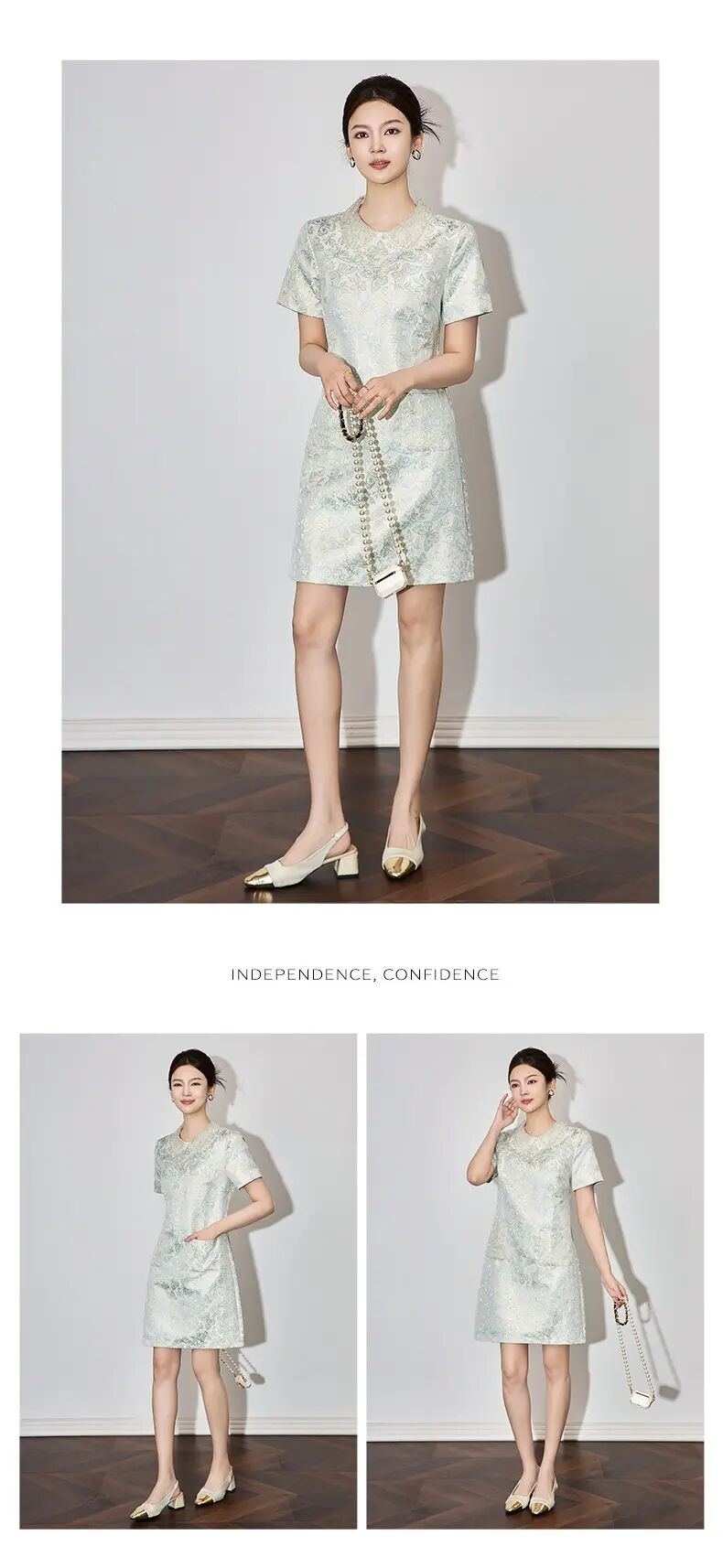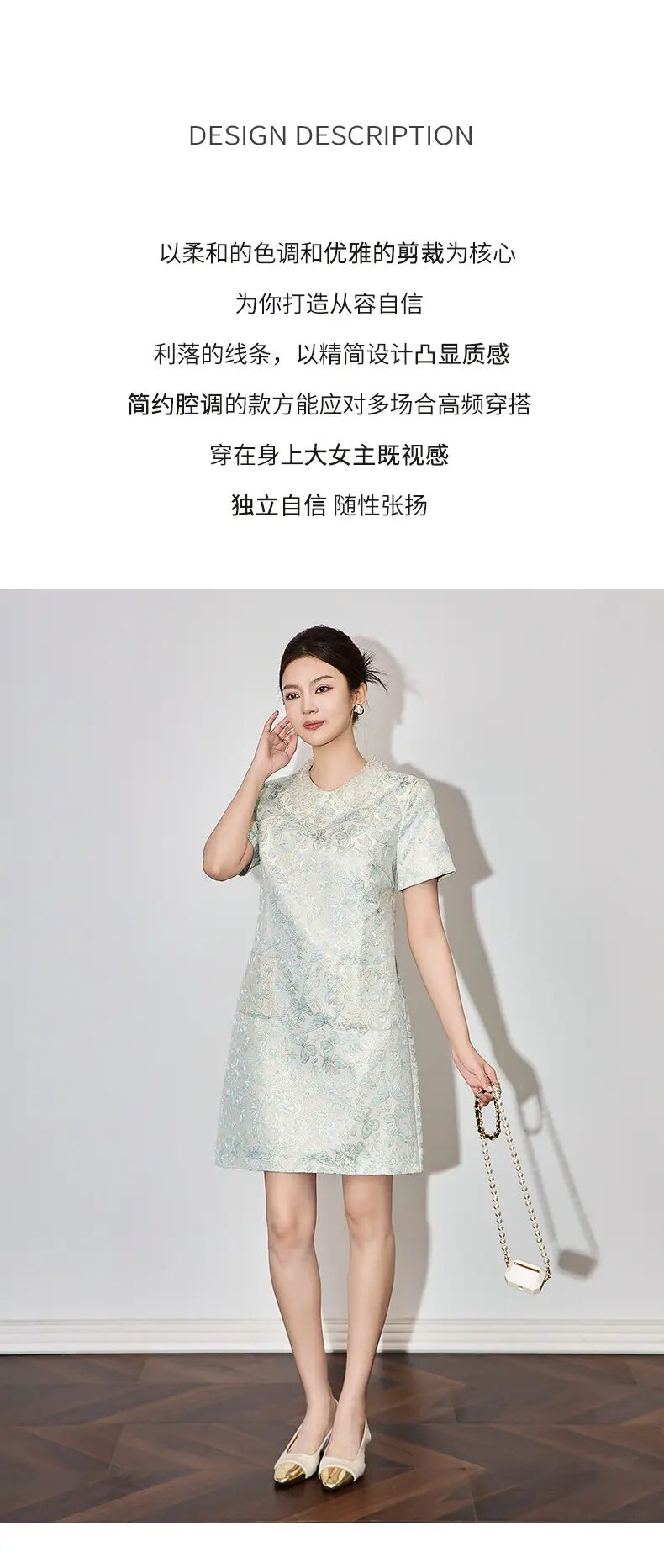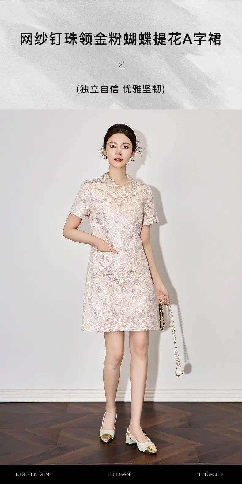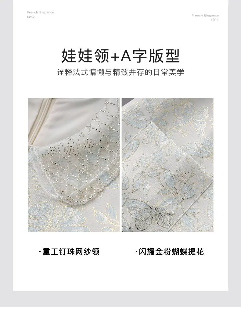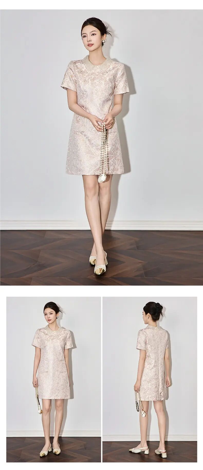 【高货wl】全新升级【铂金会员275/天猫369/差价94】(73043) 洛诗琳时尚名媛优雅新中式重工钉珠翻领金丝提花连衣裙