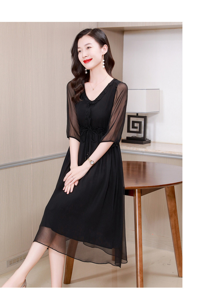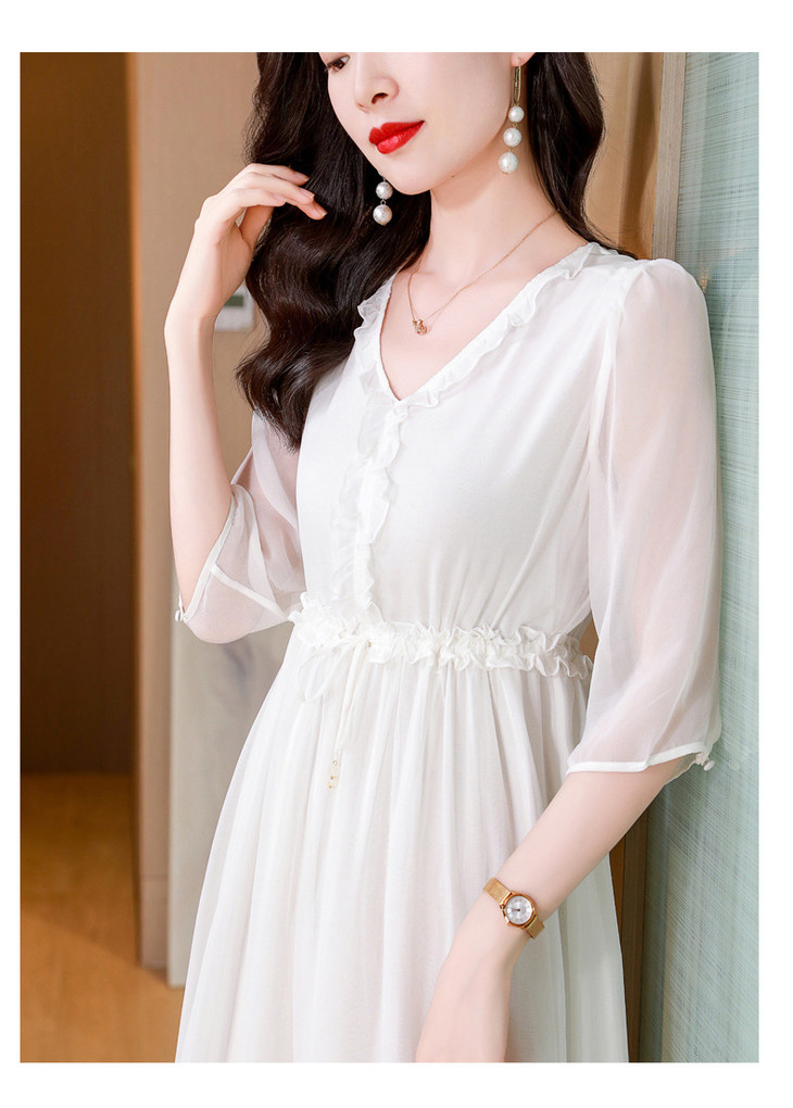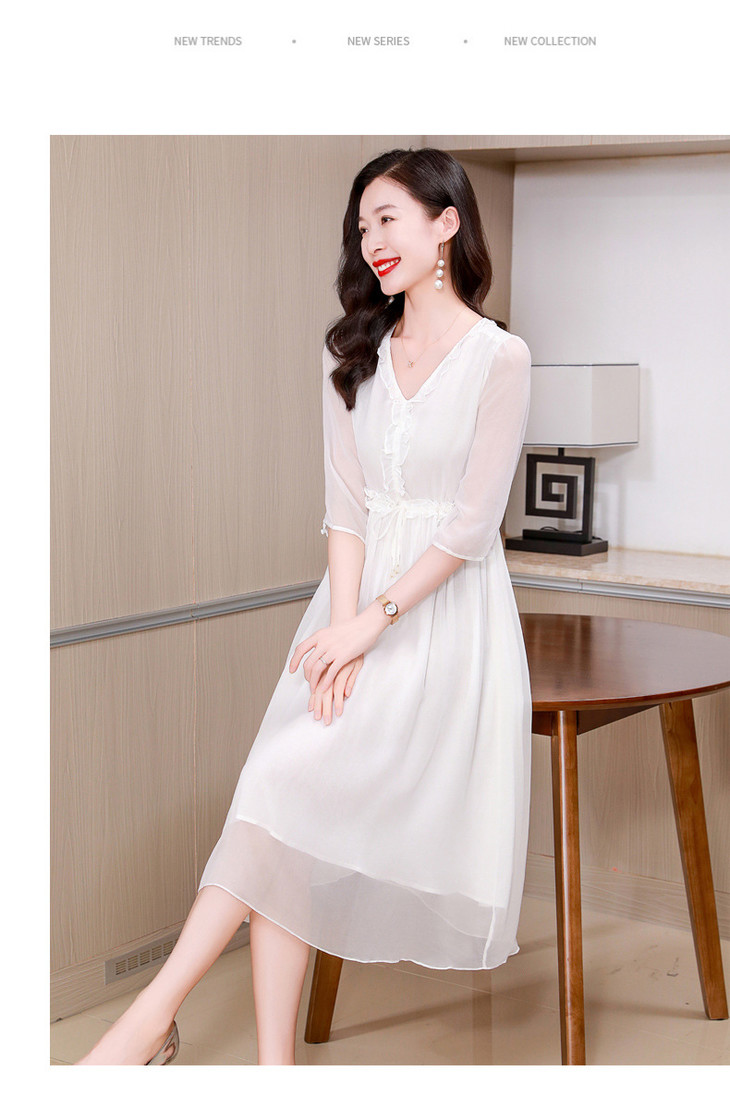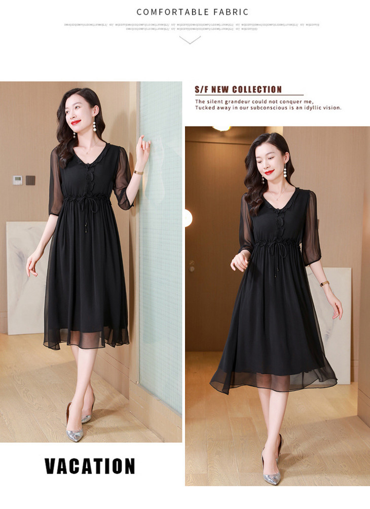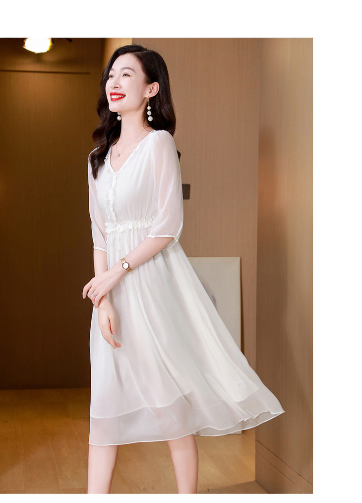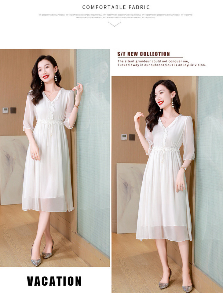 ASE真丝连衣裙女夏季2024新款高端轻奢气质纯色调节腰度假真丝连衣裙