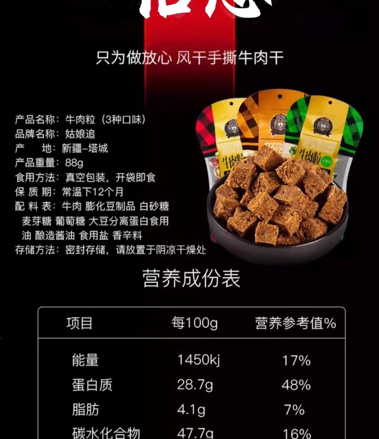 姑娘追·牛肉粒 88g*3包 独立小粒 办公、出游都能吃