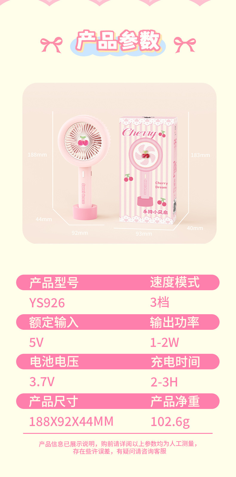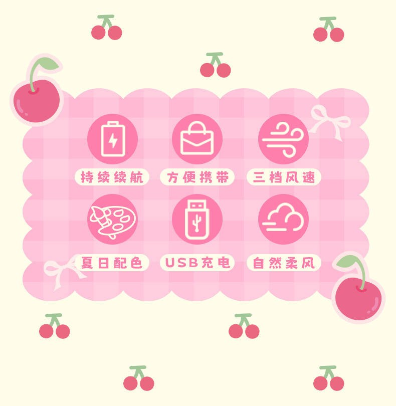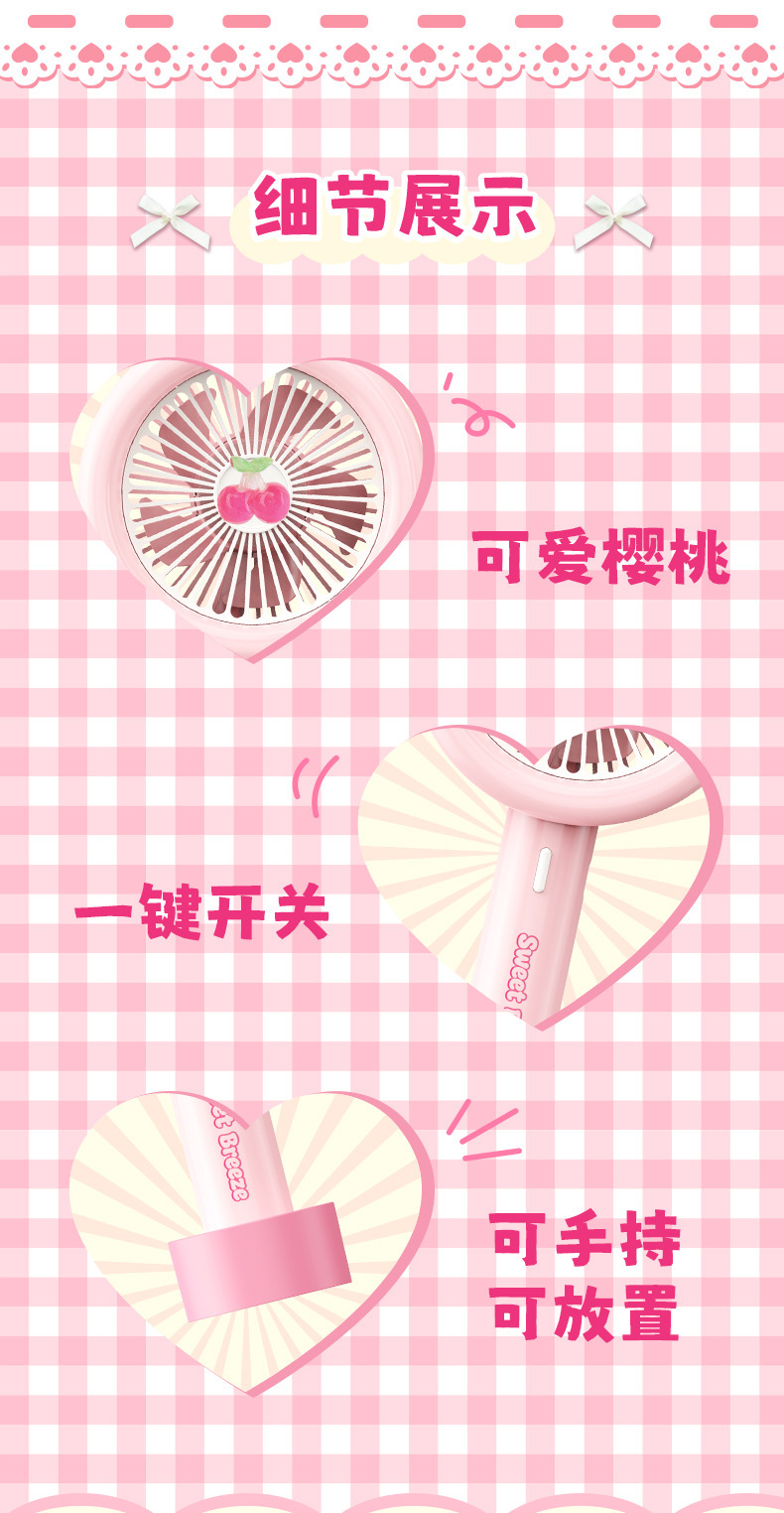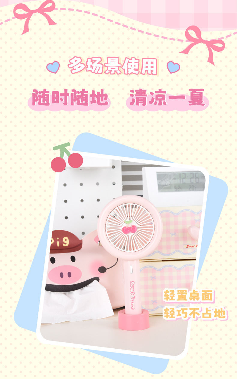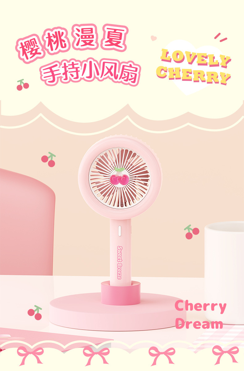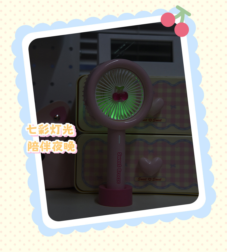 【便携小巧!无负担出行】新款卡通樱桃手持小风扇usb充电高颜值迷你户外便携式大风力电扇。xb
