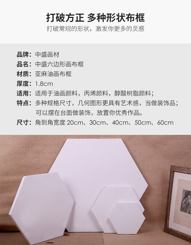 中盛 异形框六边形油画框亚麻油画布框油画板1.8cm厚 油画颜料用