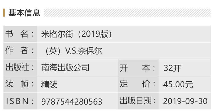 ☆ 《米格尔街》糅合了契诃夫式的幽默和特立尼达岛居民即兴编唱的小调,确立了奈保尔作为幽默家和街头生活作家的地位。——诺贝尔文学奖颁奖辞