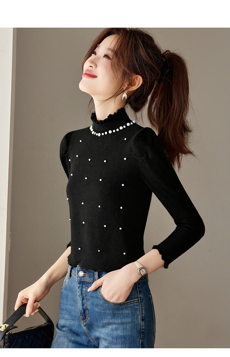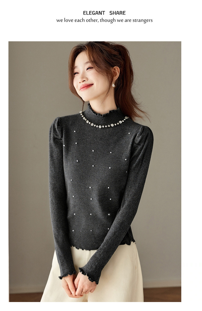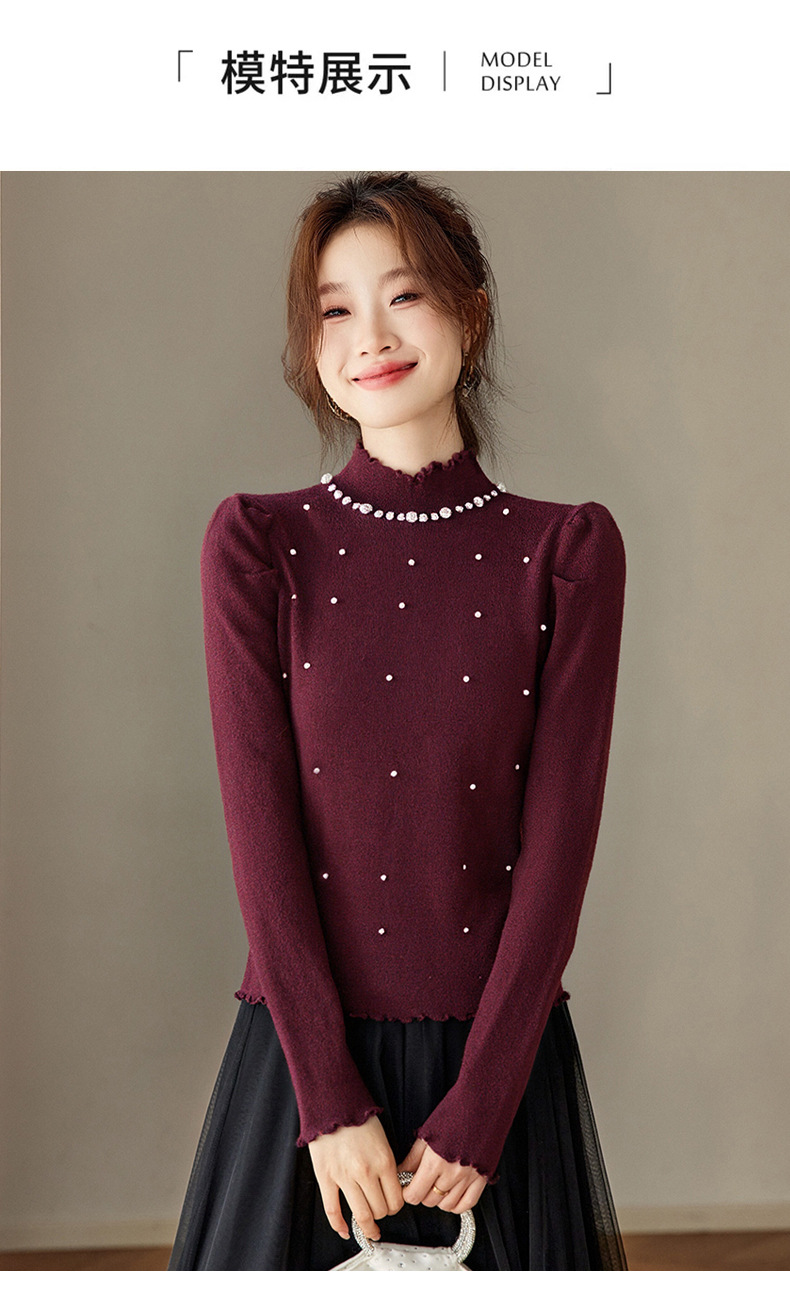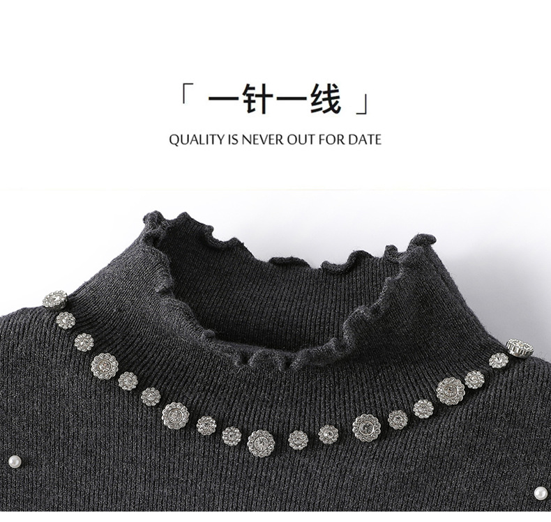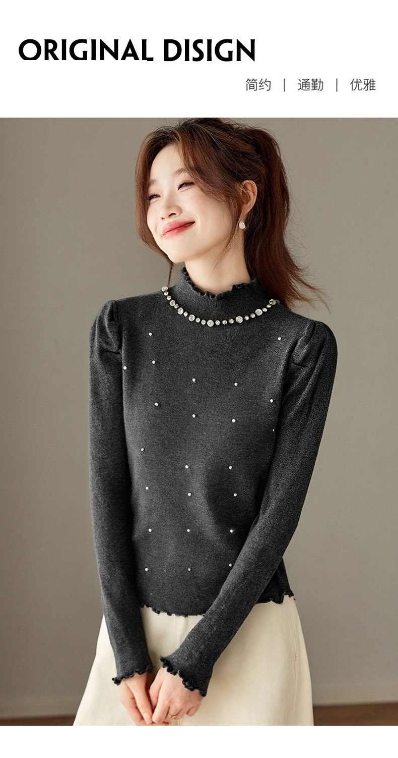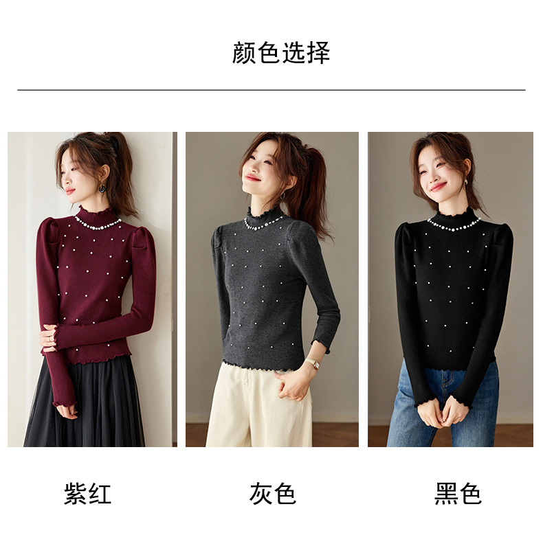 CC半高领钉珠针织衫女秋冬高级感修身毛衣内搭长袖上衣好看打底衫女