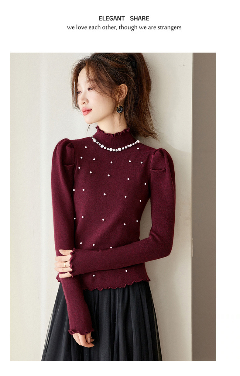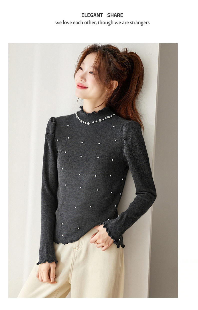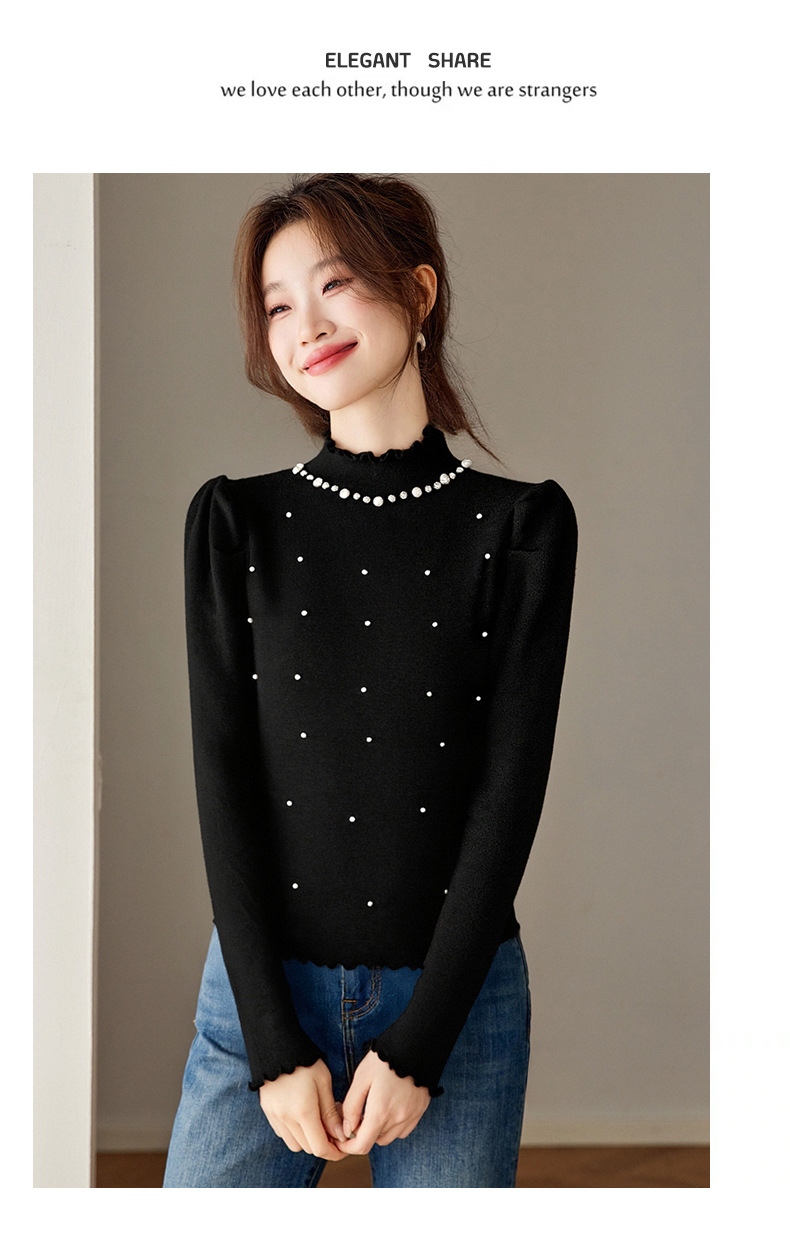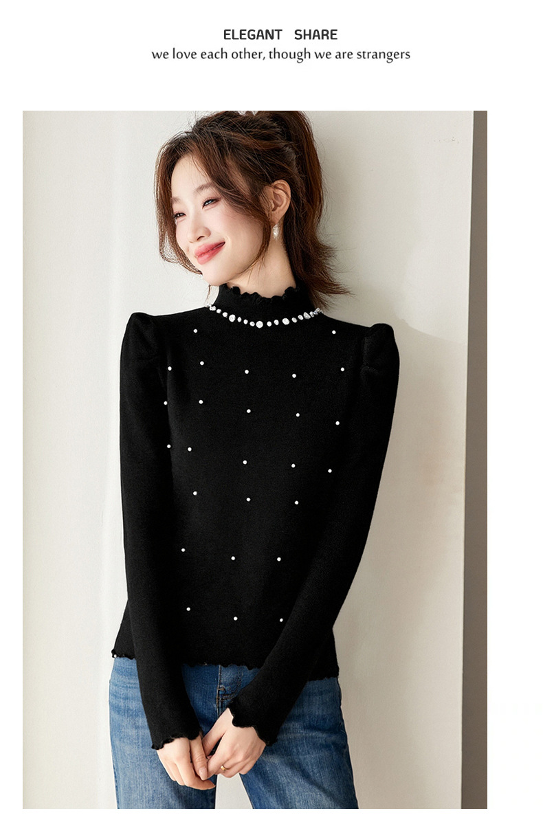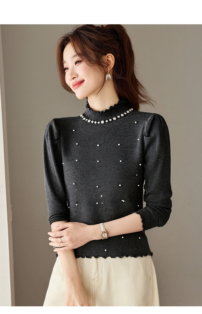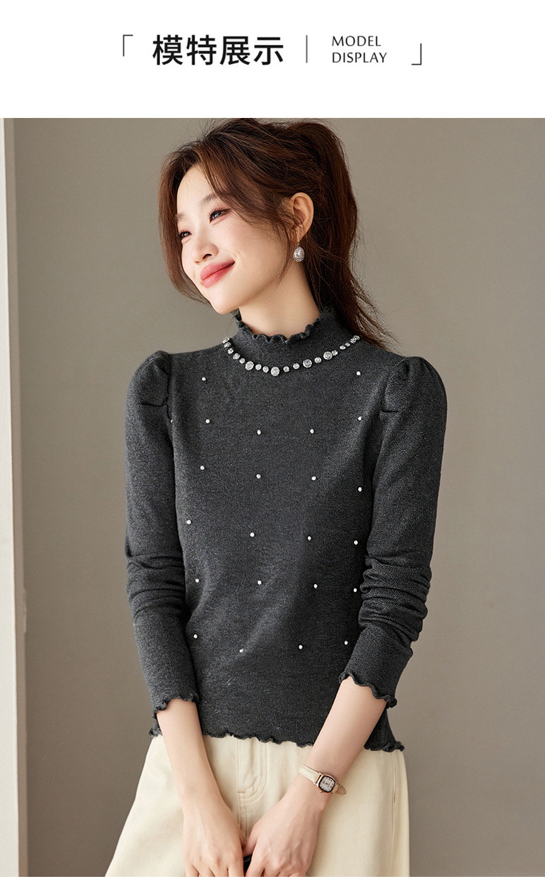 CC半高领钉珠针织衫女秋冬高级感修身毛衣内搭长袖上衣好看打底衫女