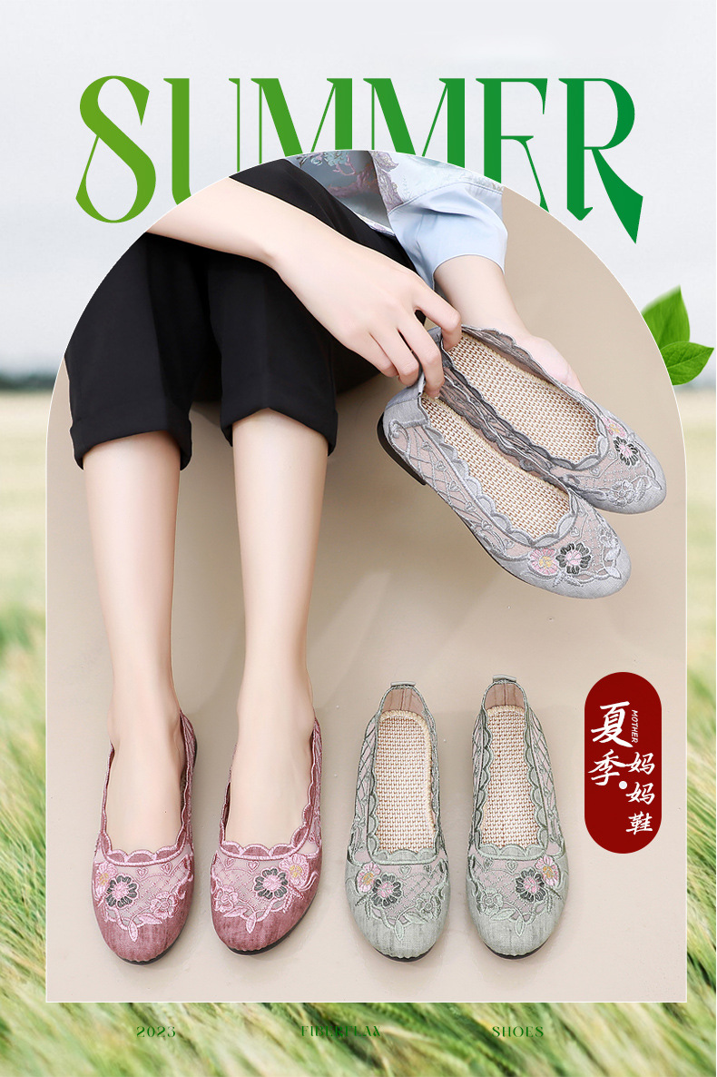 DD-夏新款布鞋女网鞋透气网面中老年平底舒适妈妈鞋