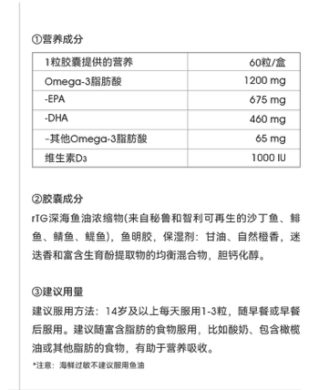鱼油|WHC小千金鱼油 高纯度深海鱼油 改善血脂水平 改善动脉硬化 60粒 补充O3 小千金