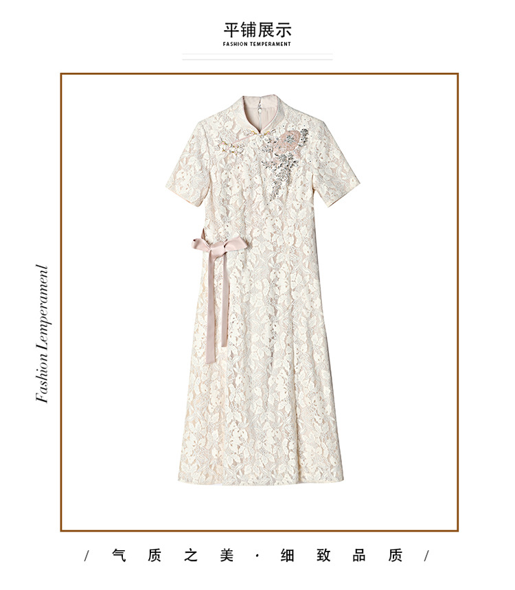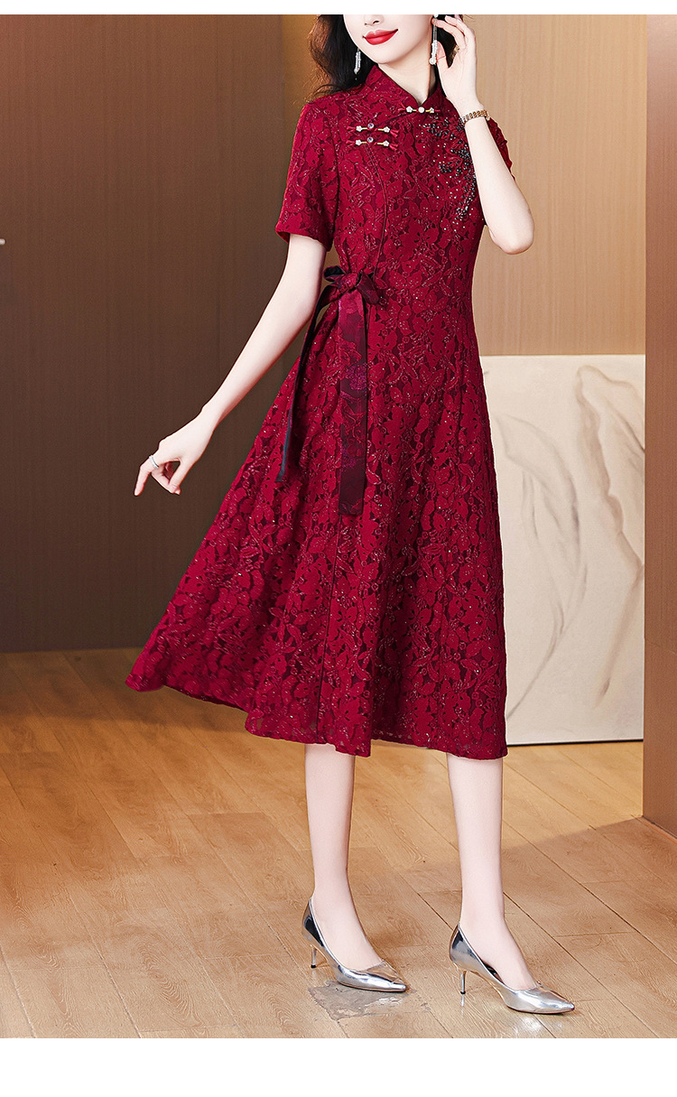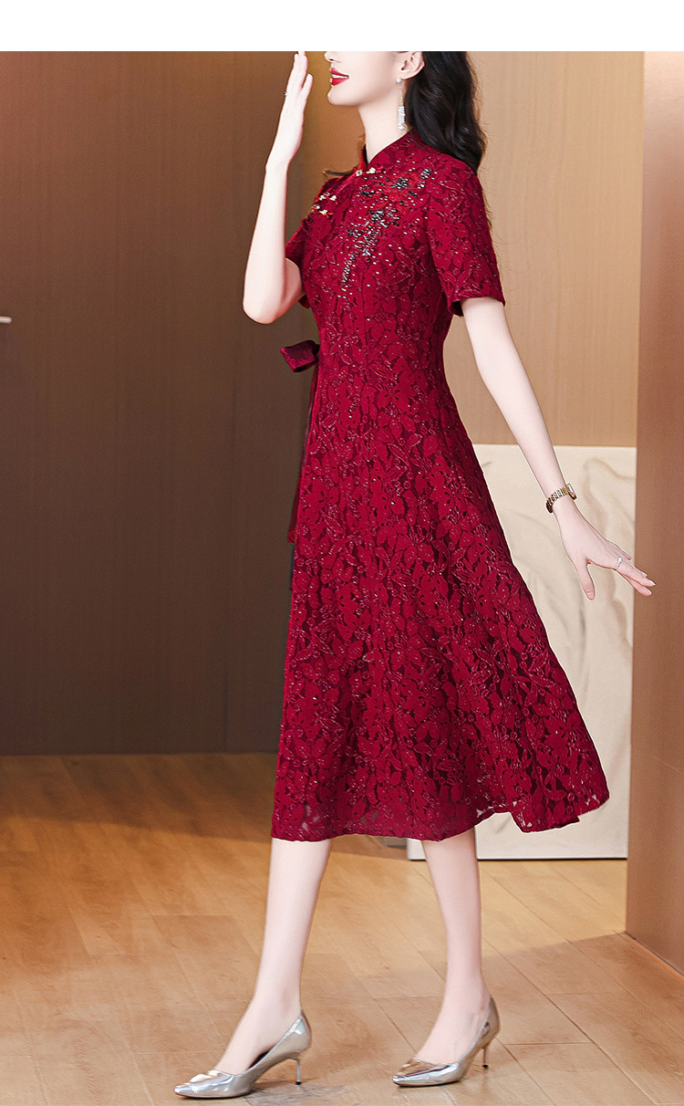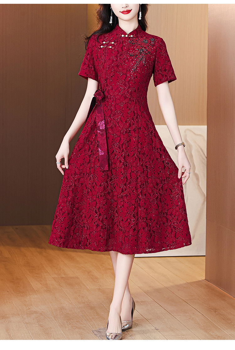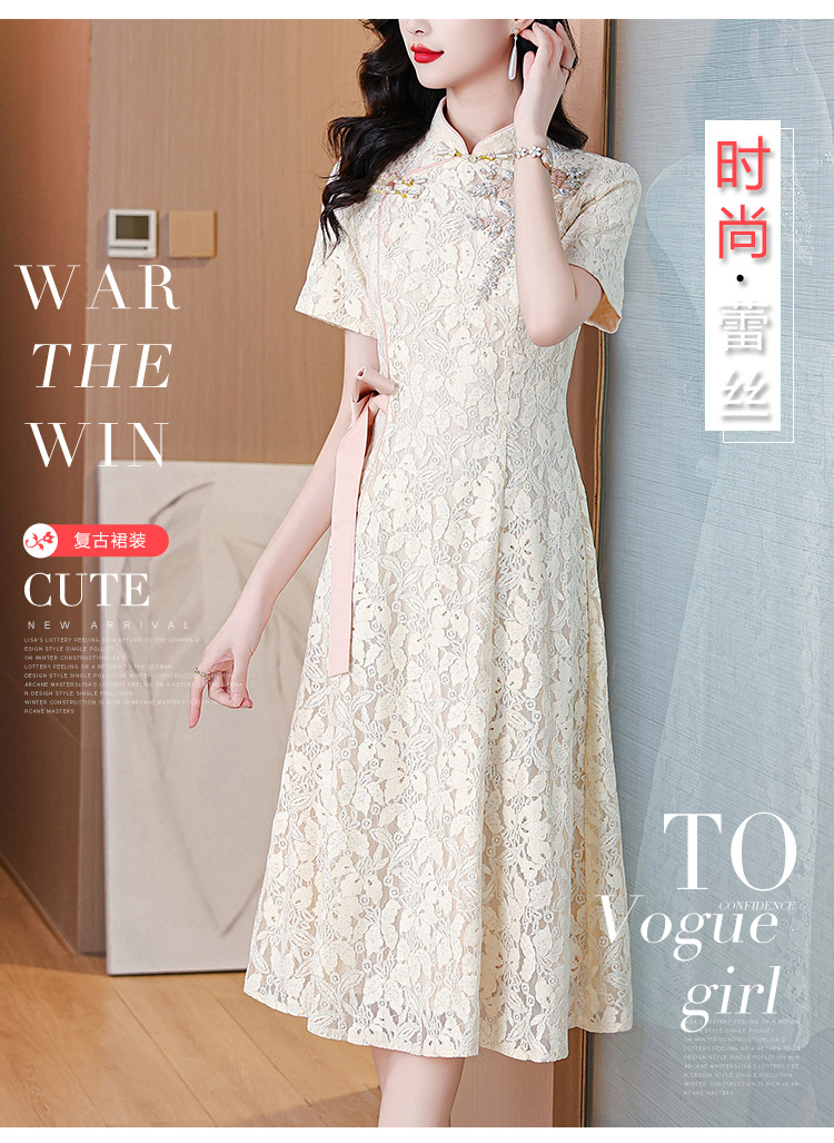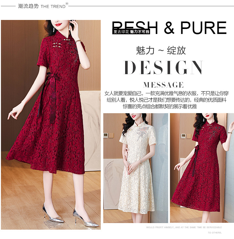雀说蕾丝旗袍新中式礼服裙新款复古立领连衣裙AL7984