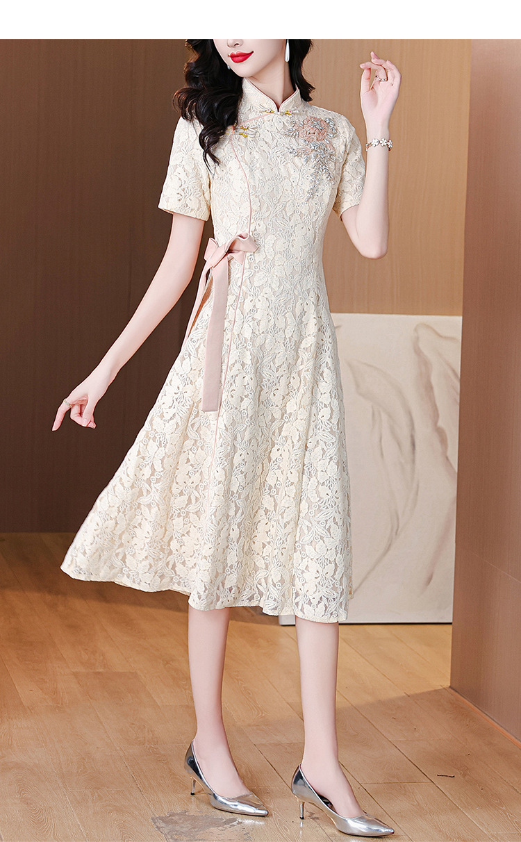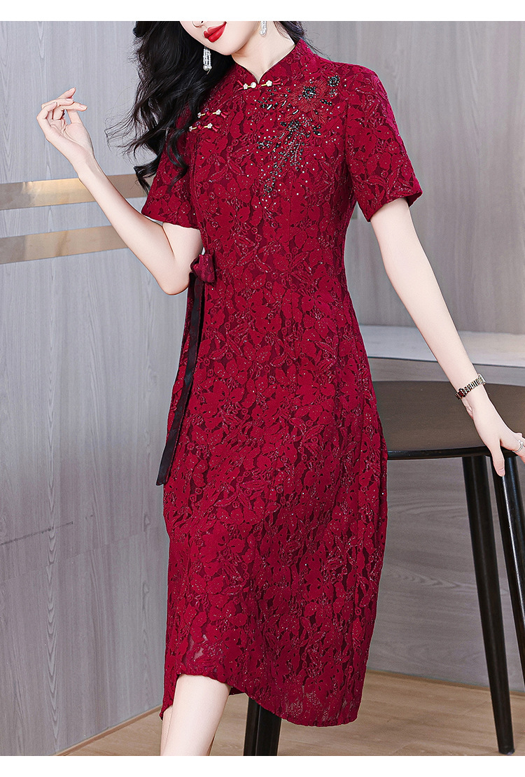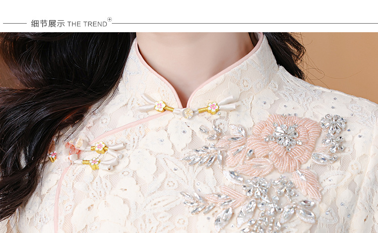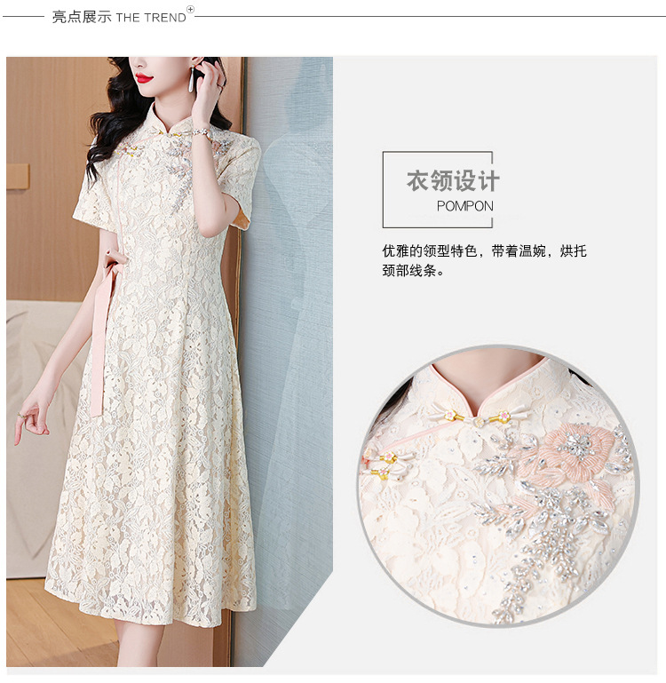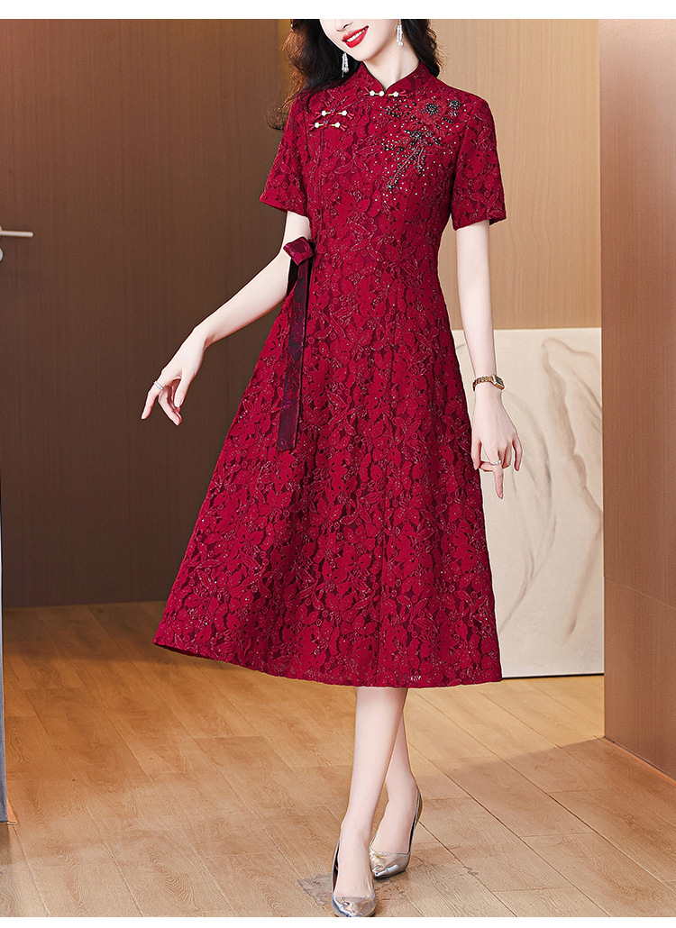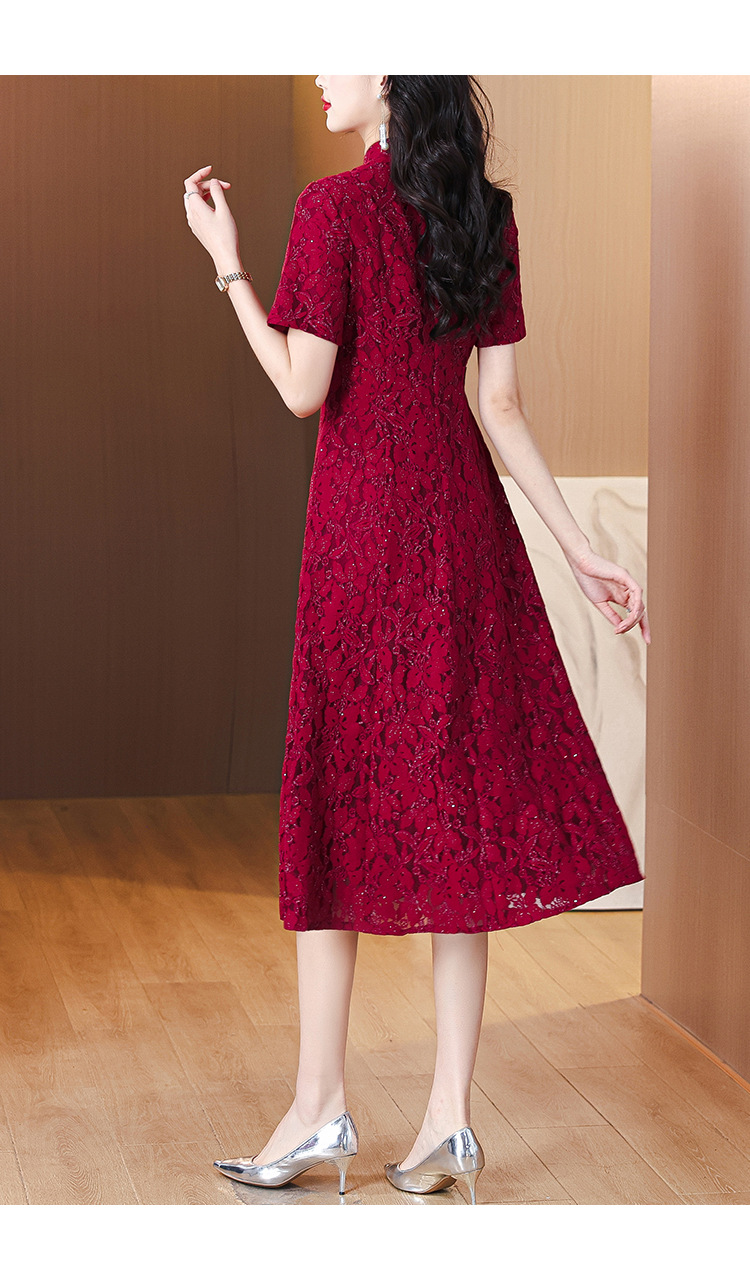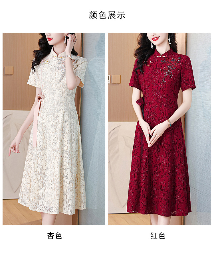 雀说蕾丝旗袍新中式礼服裙新款复古立领连衣裙AL7984