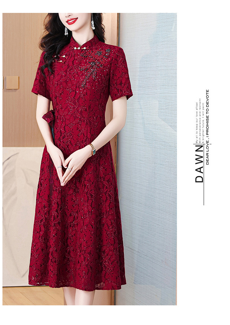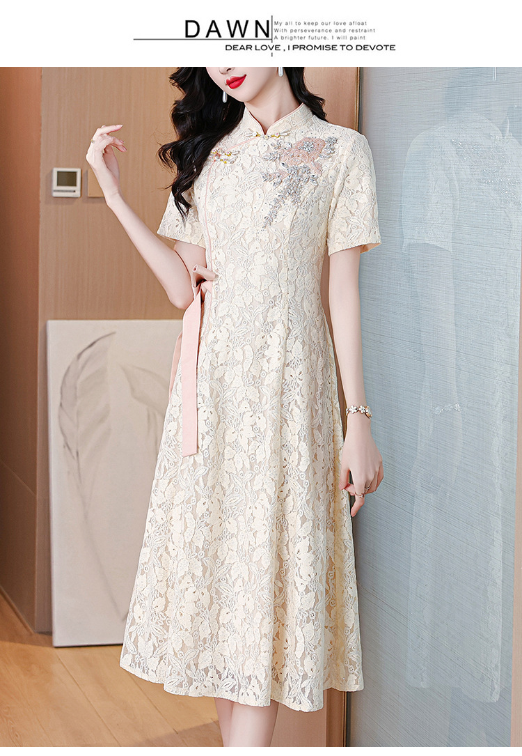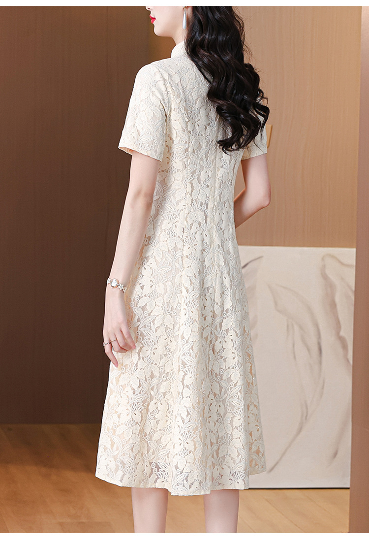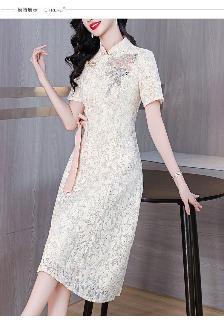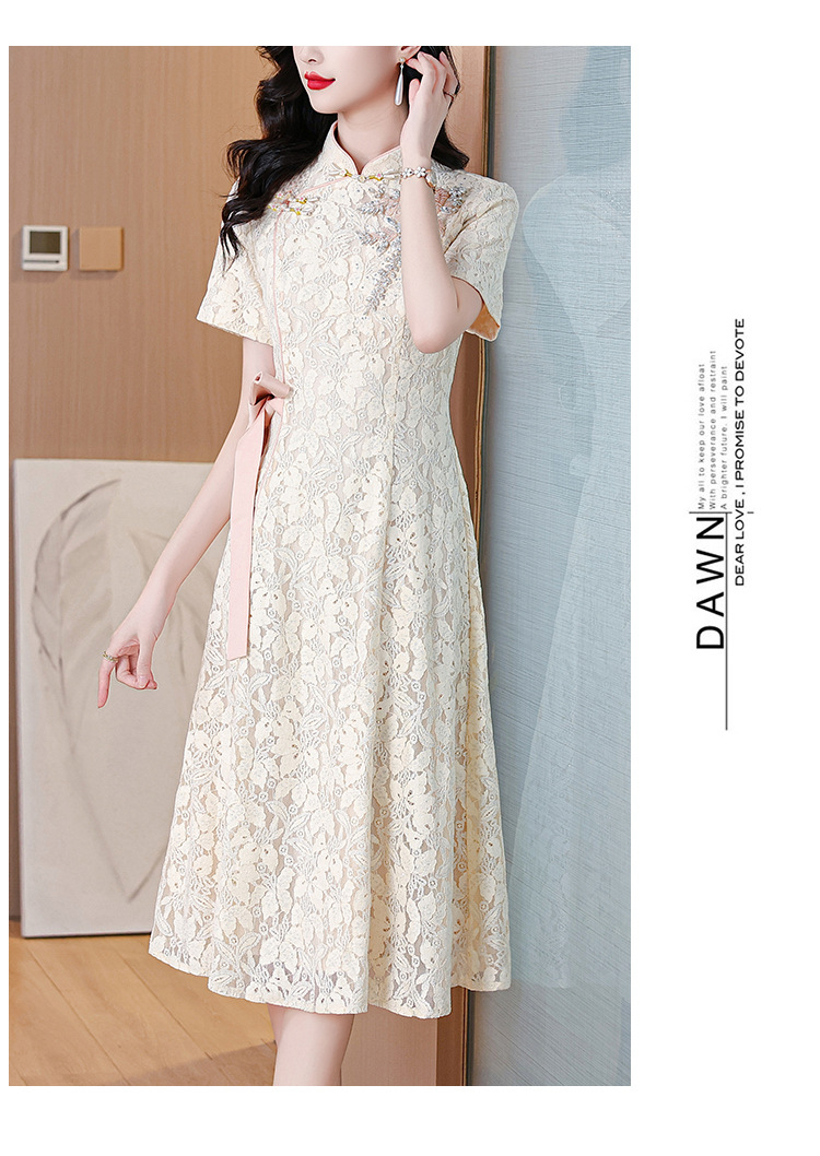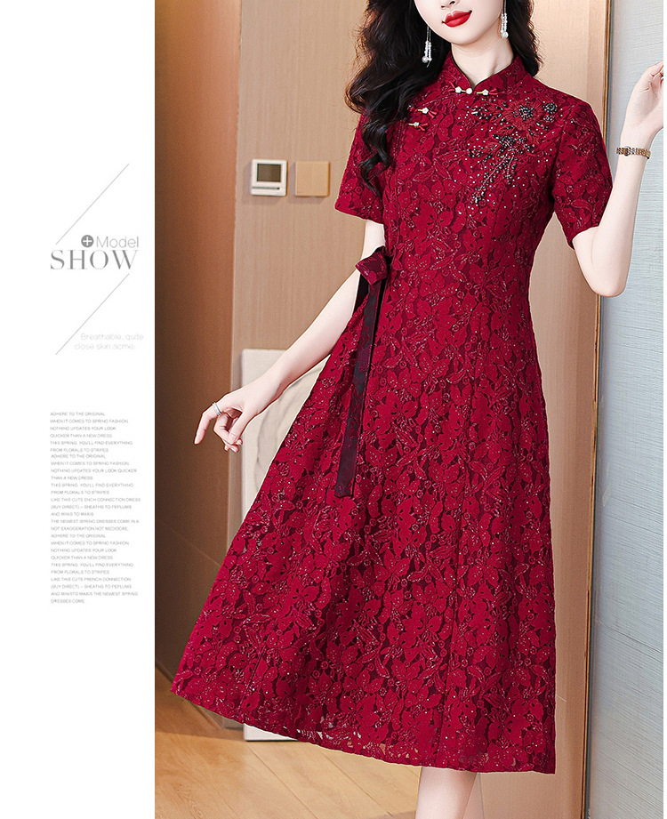 雀说蕾丝旗袍新中式礼服裙新款复古立领连衣裙AL7984