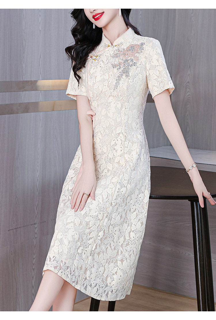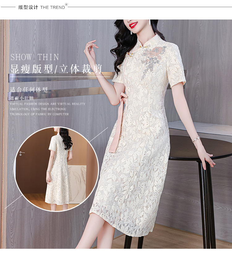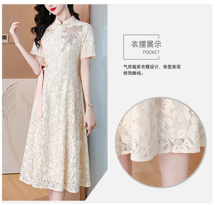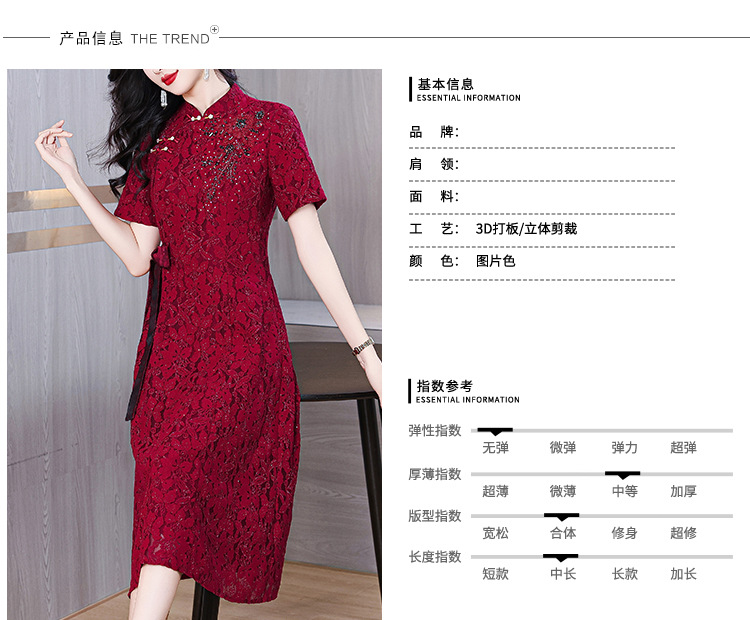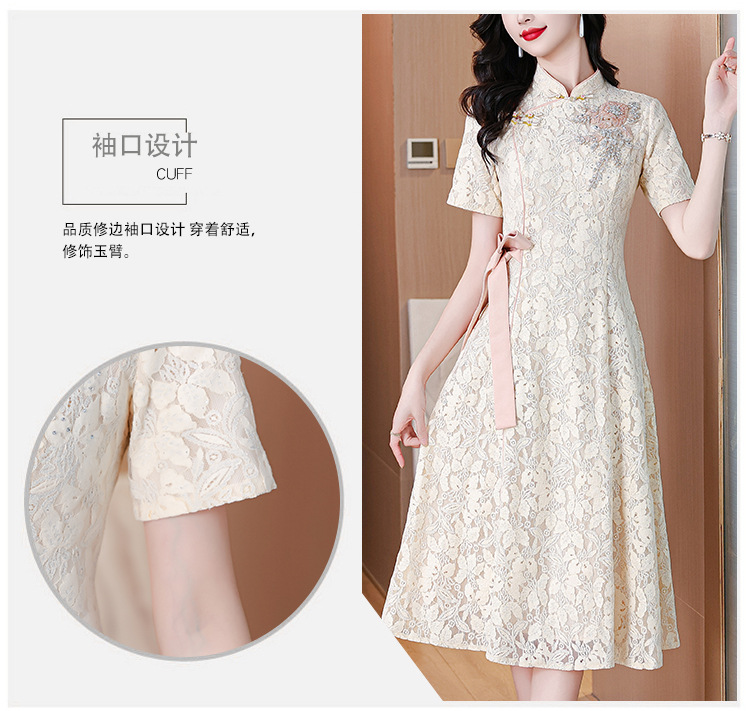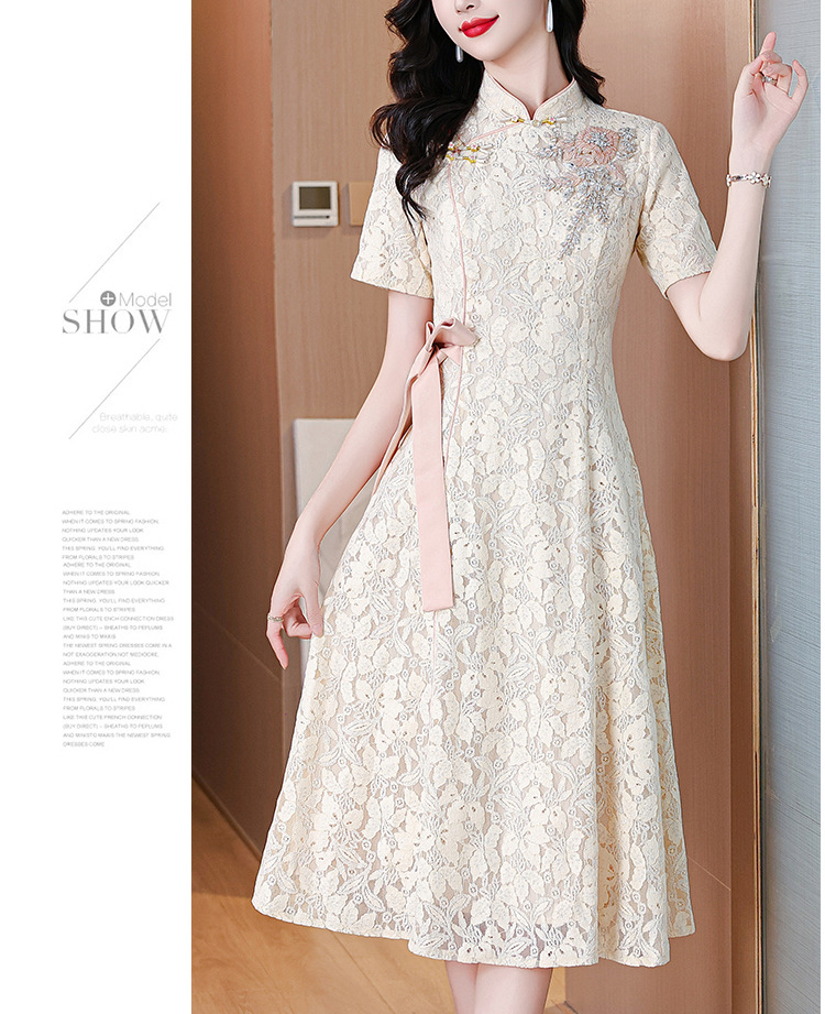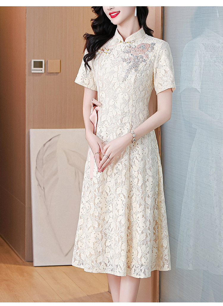 雀说蕾丝旗袍新中式礼服裙新款复古立领连衣裙AL7984