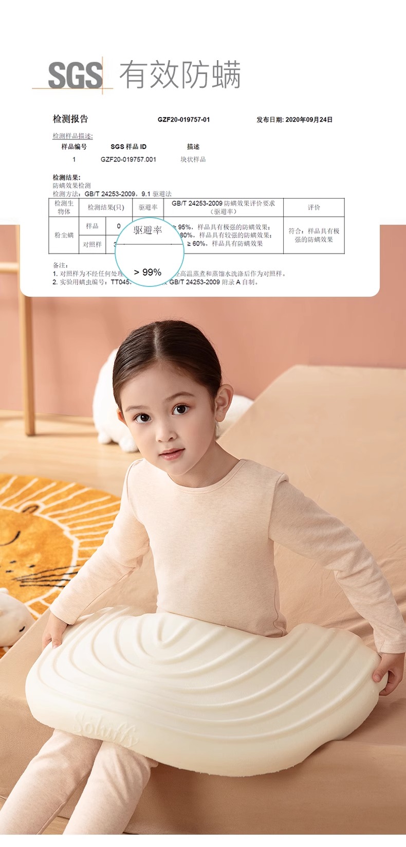 杞冠臻选 | 斯柔菲枕头 儿童彩虹枕 3-6岁 紧密贴合颈椎 SGS检测报告