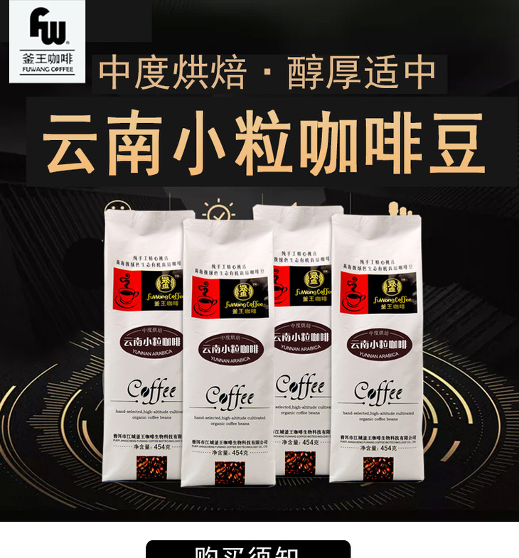 云南小粒咖啡豆 新鲜烘焙豆 特浓咖啡豆 提神熬夜 可现磨手冲黑咖啡粉 454g