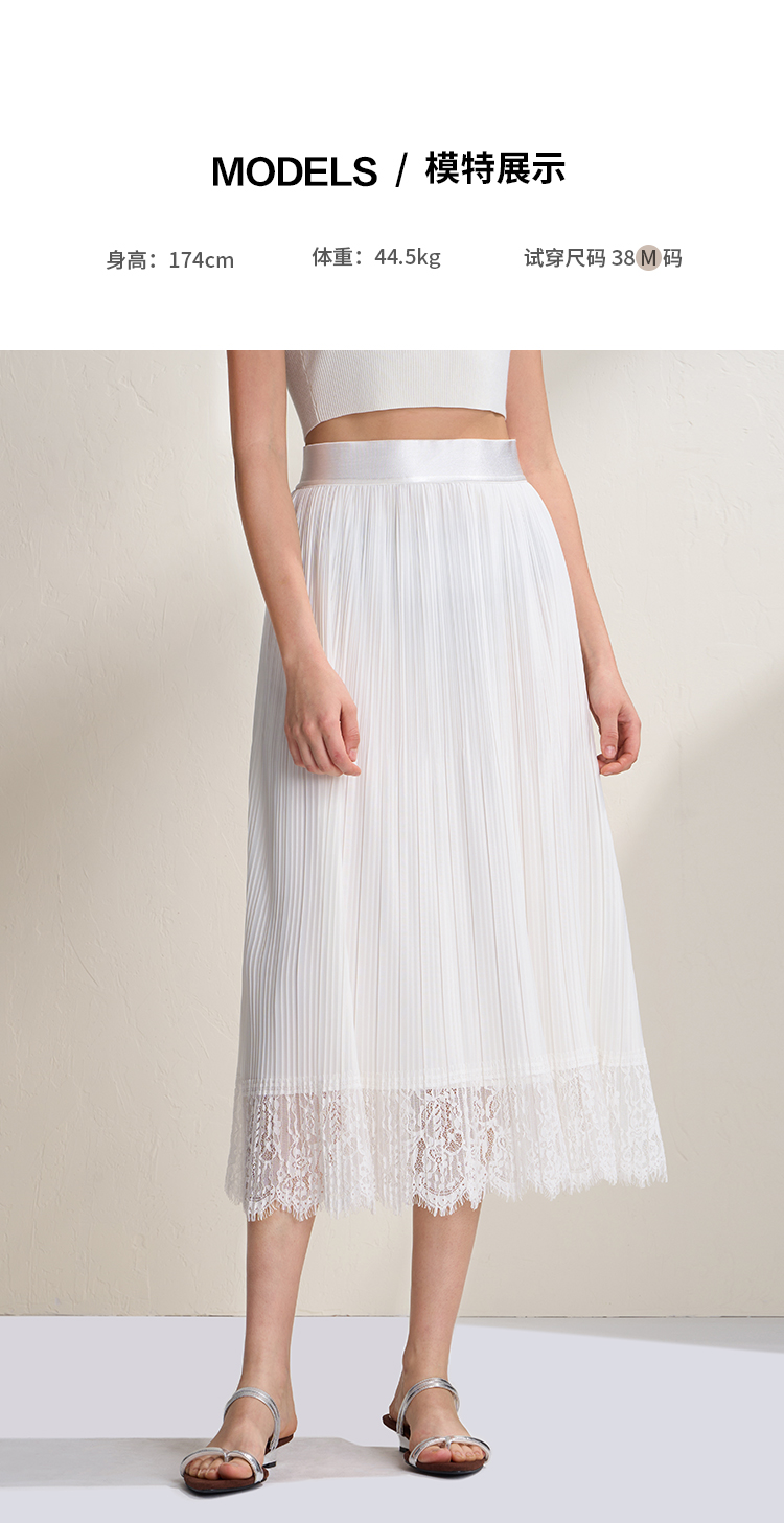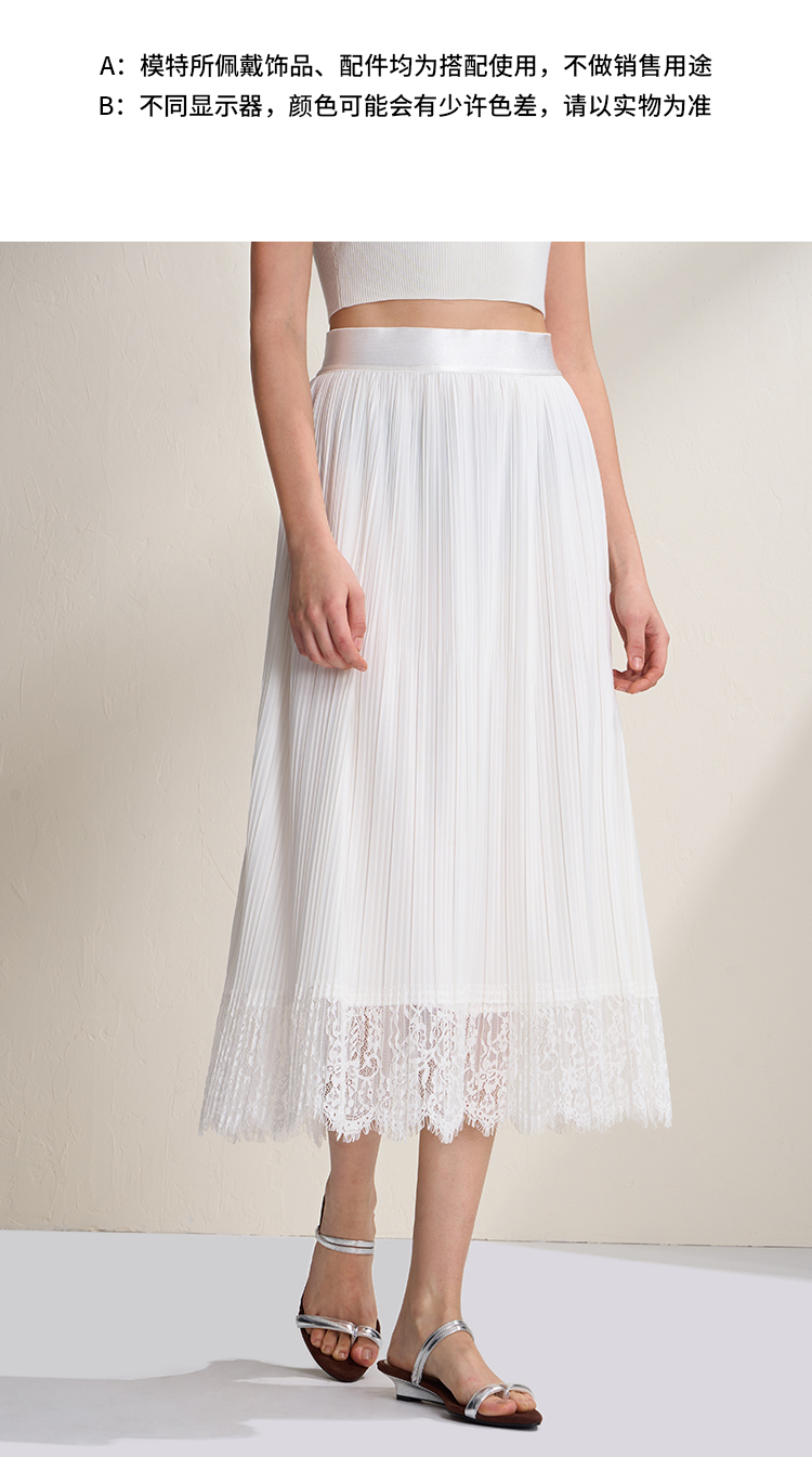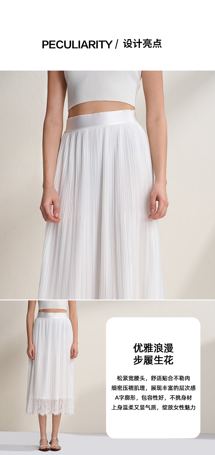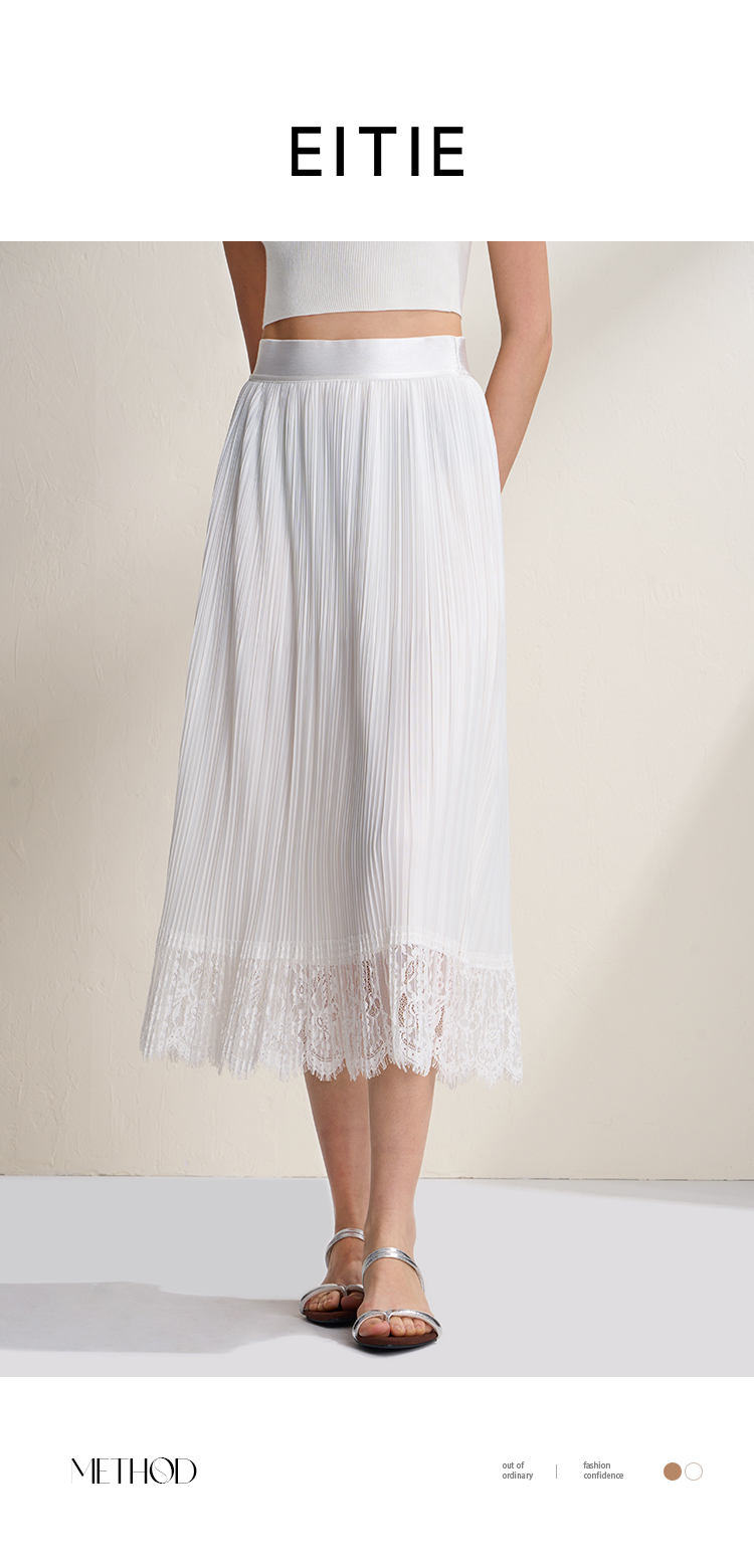 EITIE爱特爱法式优雅高腰A字百叶褶蕾丝花边半身裙2026夏季新款B2606204