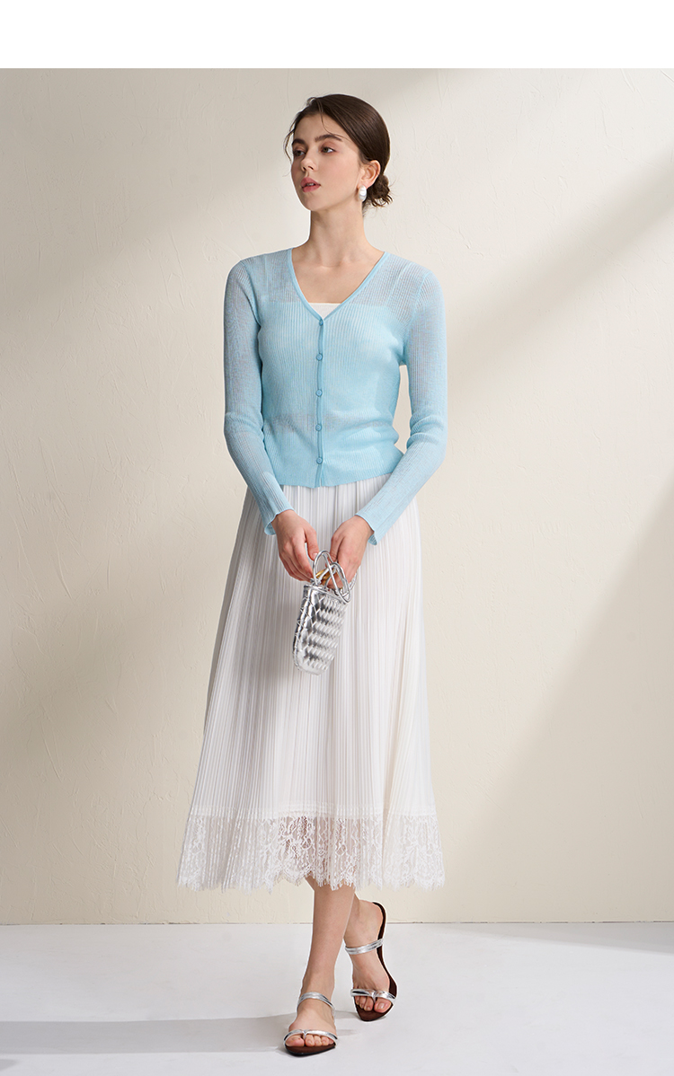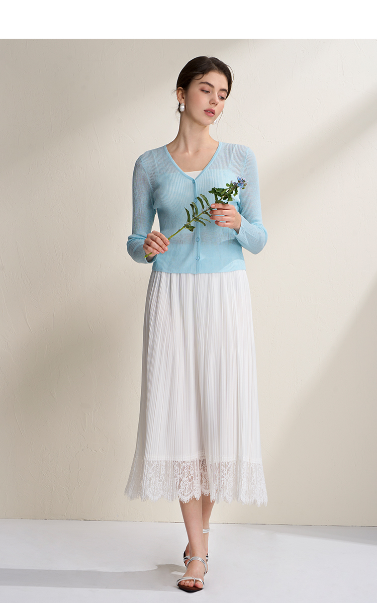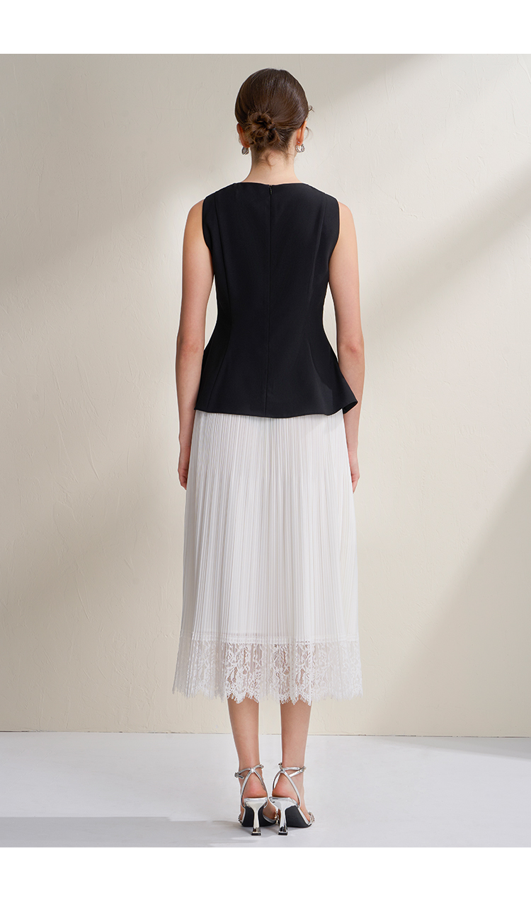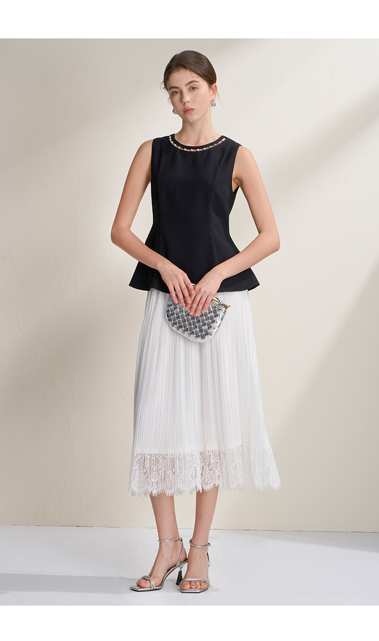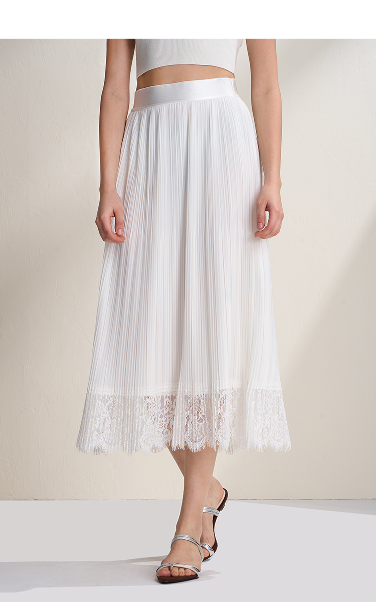 EITIE爱特爱法式优雅高腰A字百叶褶蕾丝花边半身裙2026夏季新款B2606204