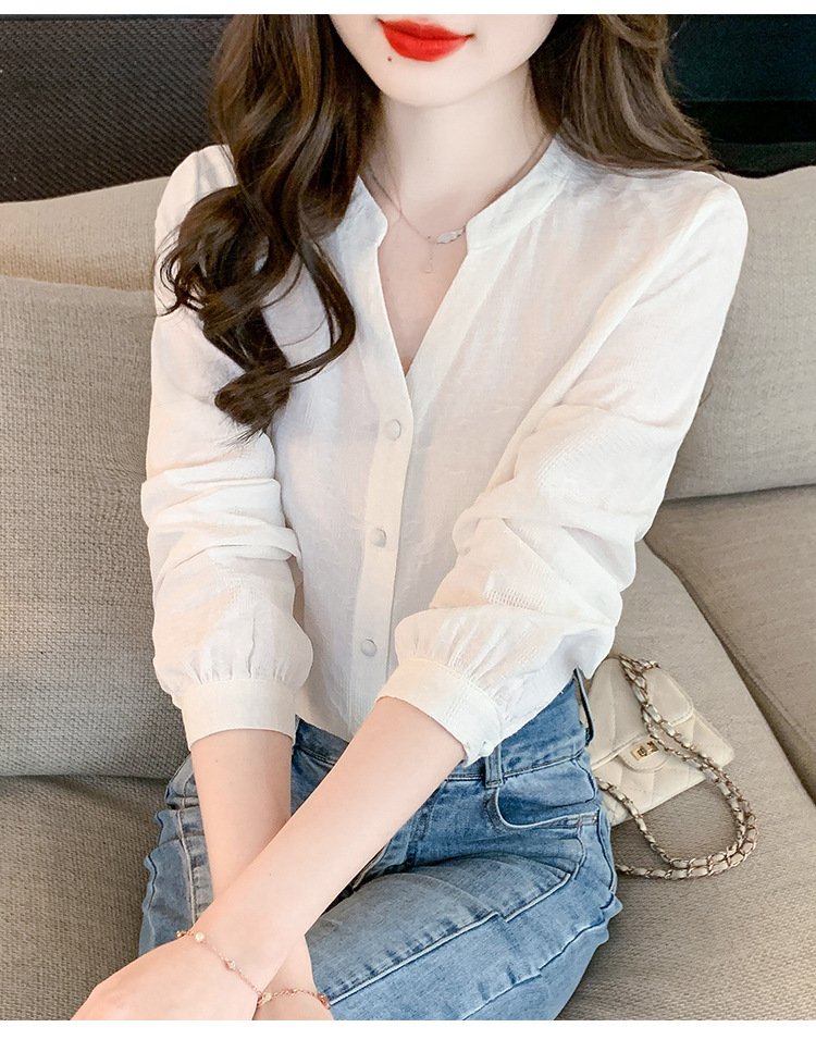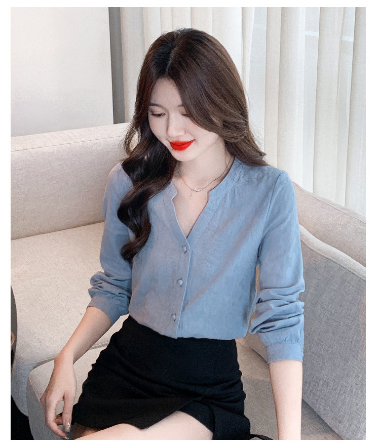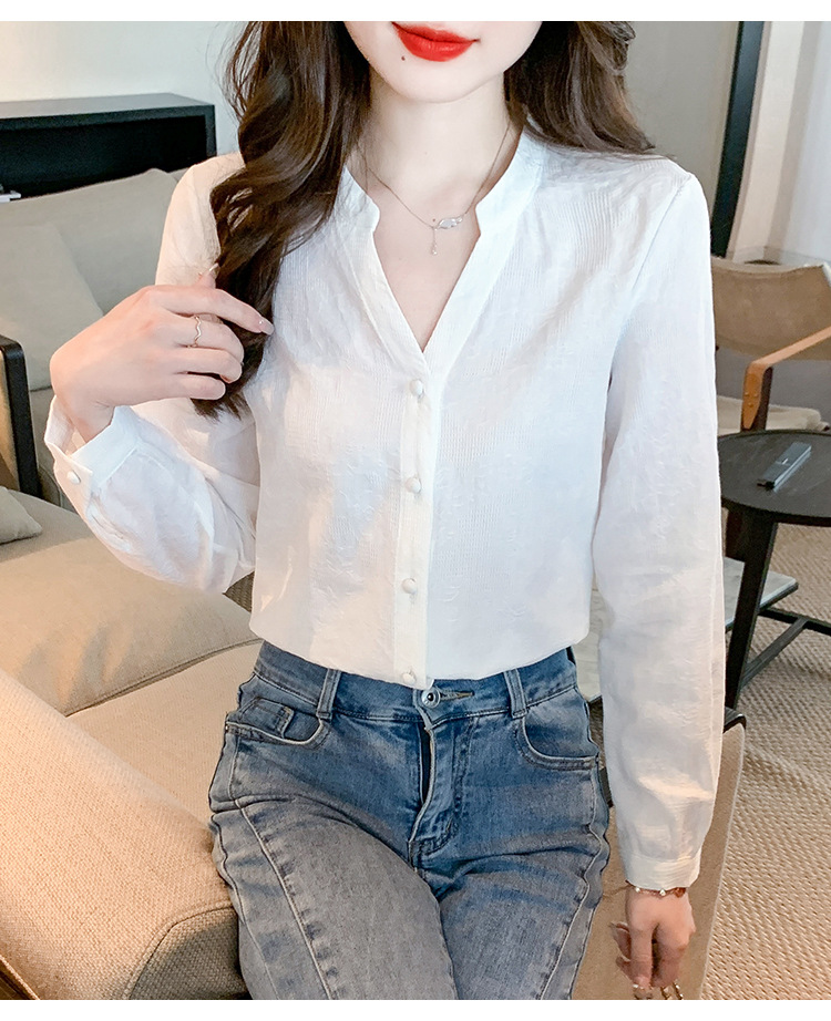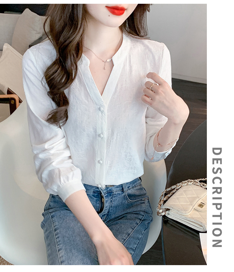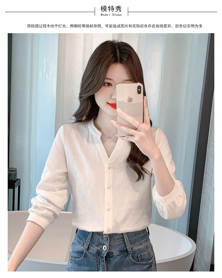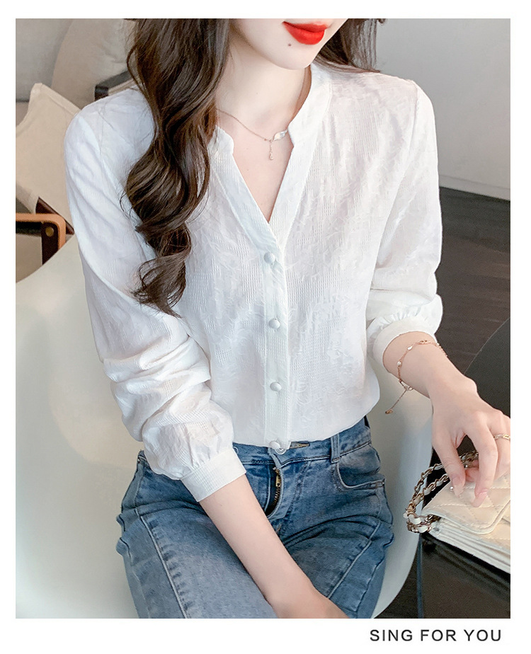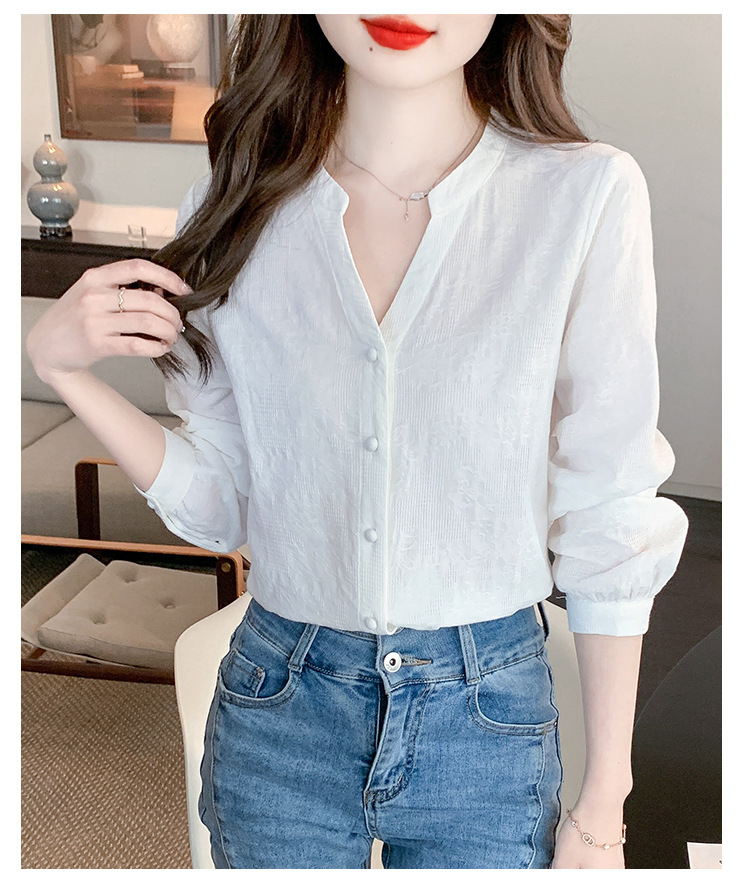 棉布提花v领长袖衬衫,春季新款休闲简约气质百搭小衫上衣KQL-E318N9069