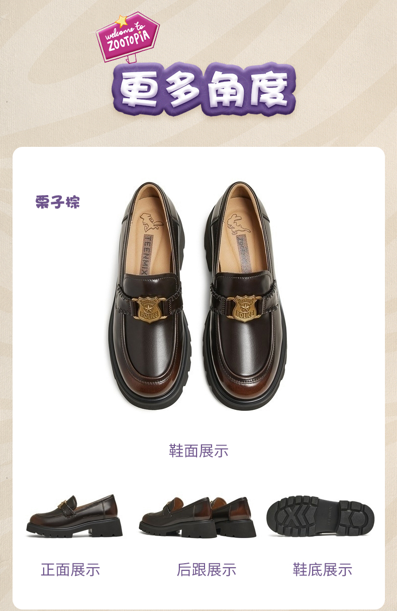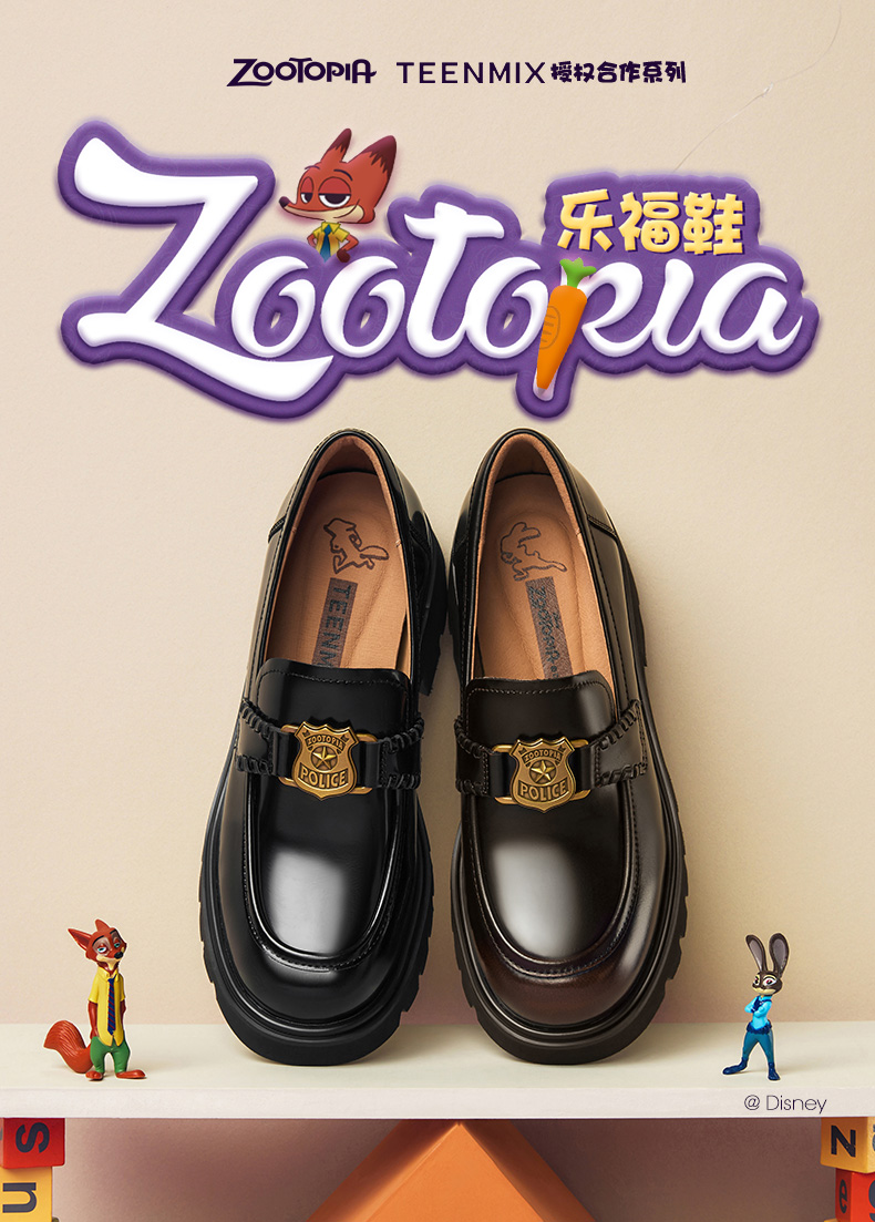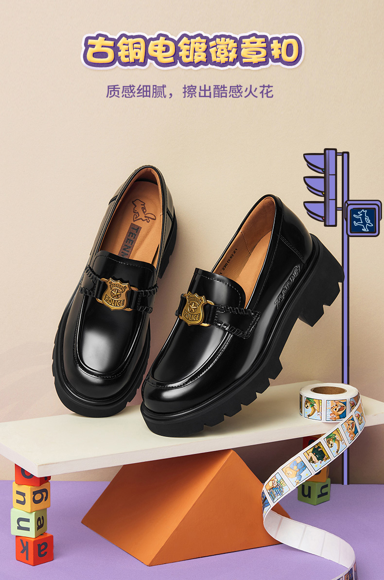 TEENMIX天美意 疯狂动物城联名 学院厚底乐福鞋女复古单鞋小皮鞋2025春新款