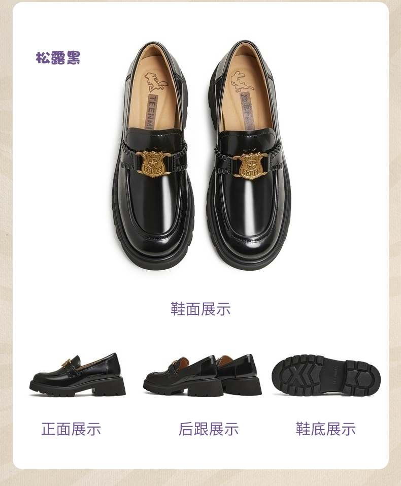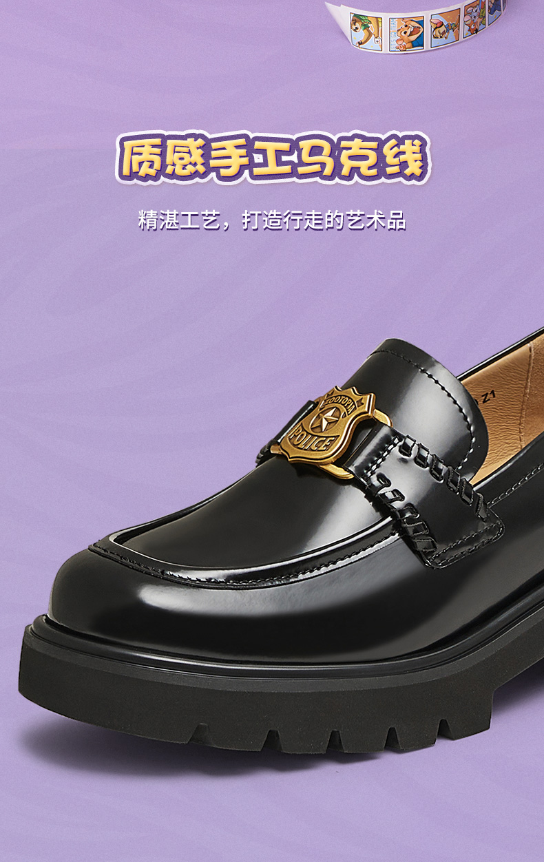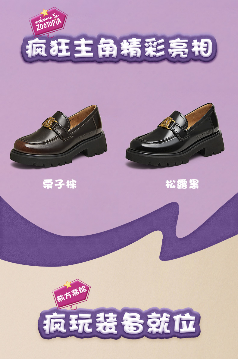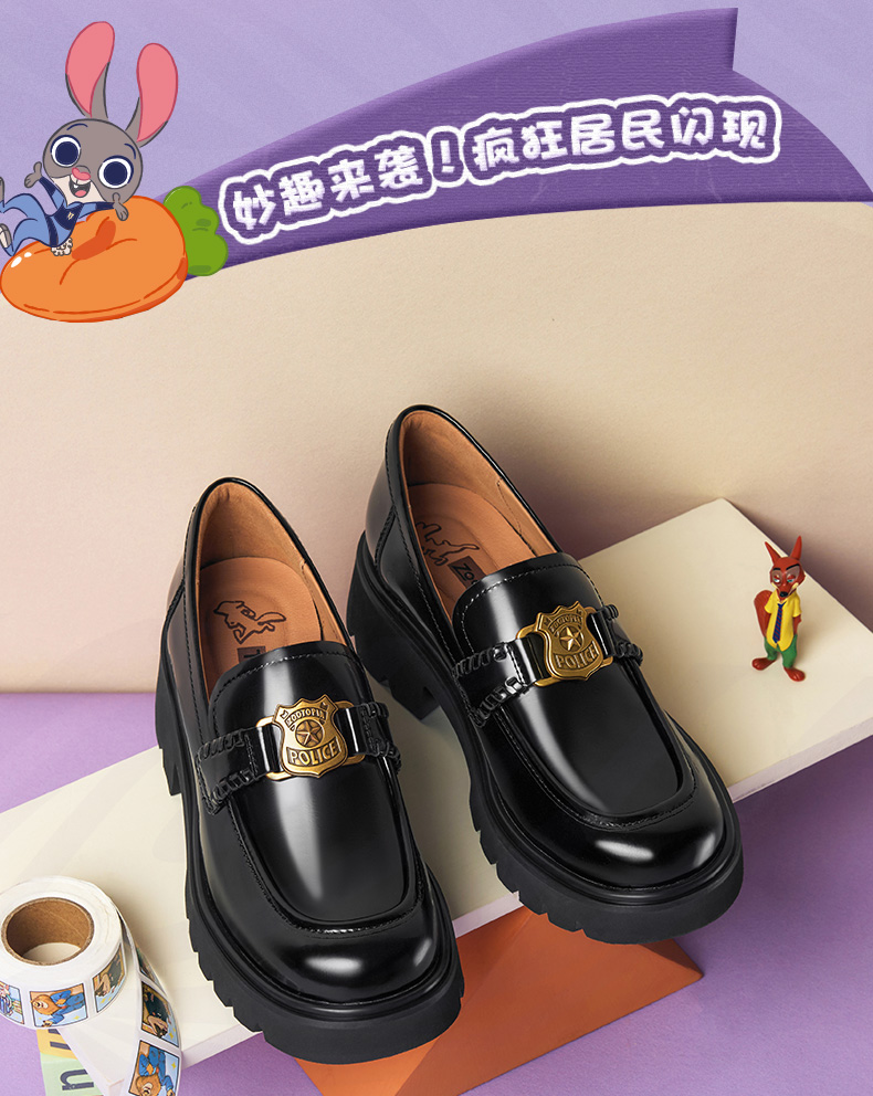 TEENMIX天美意 疯狂动物城联名 学院厚底乐福鞋女复古单鞋小皮鞋2025春新款