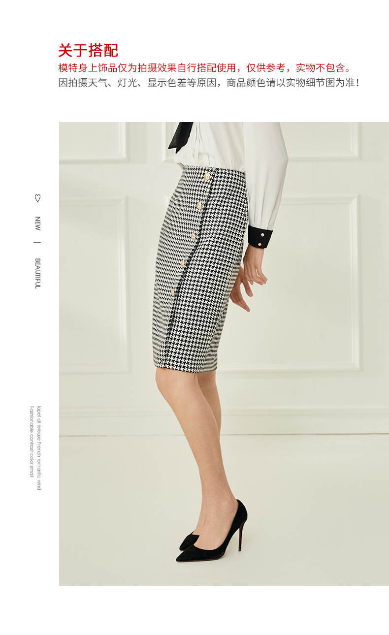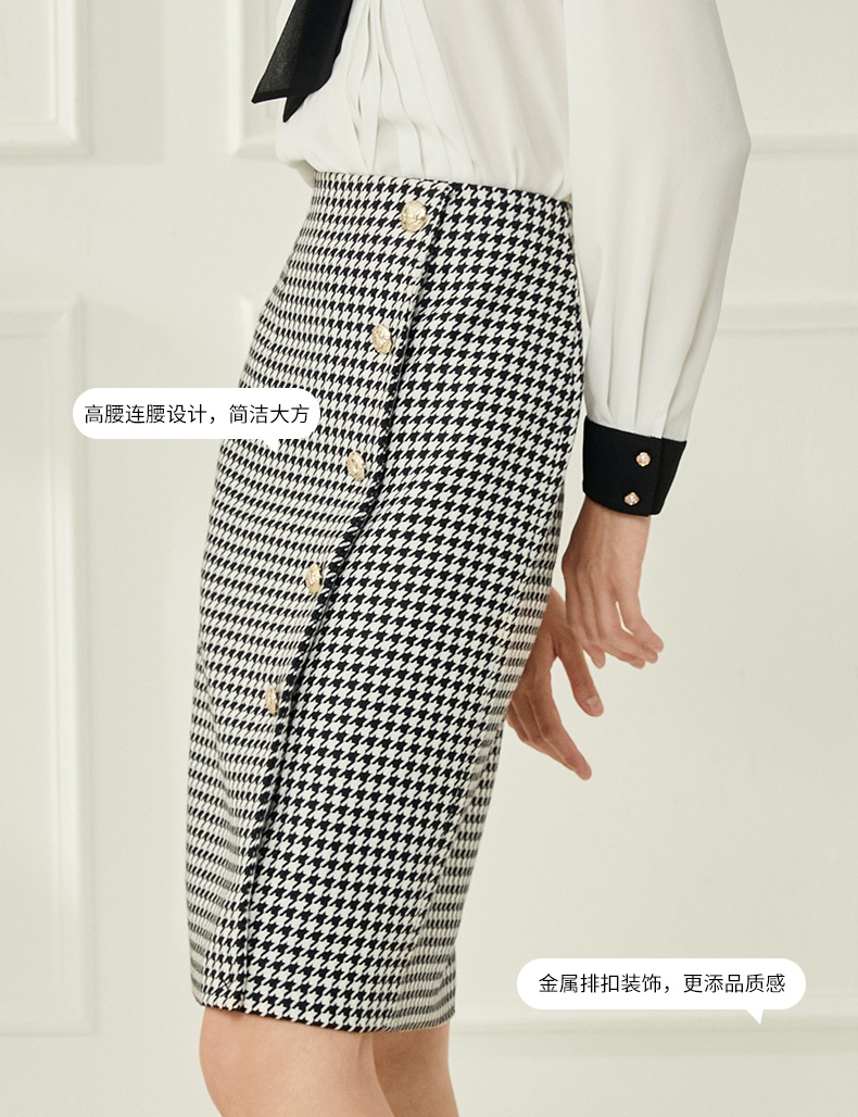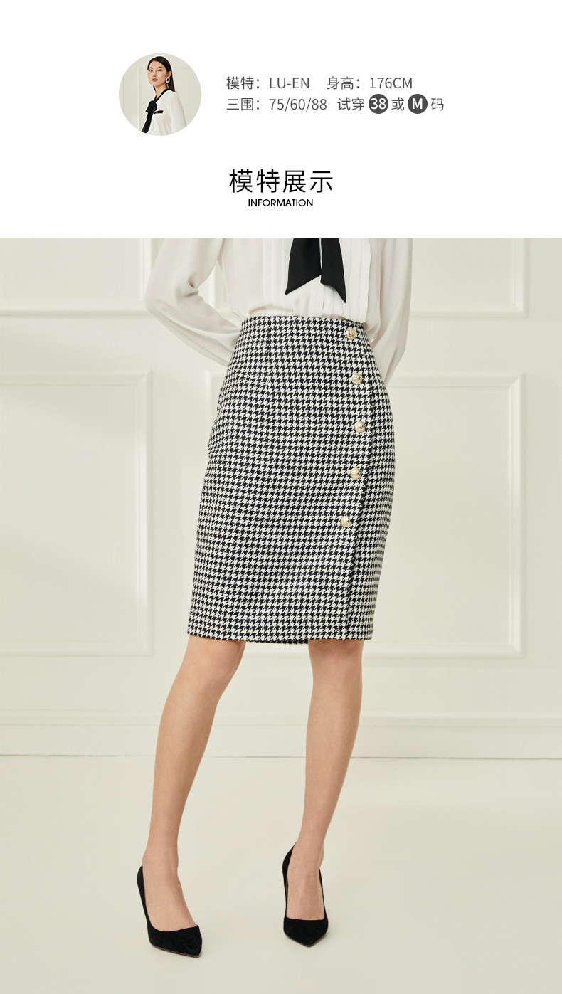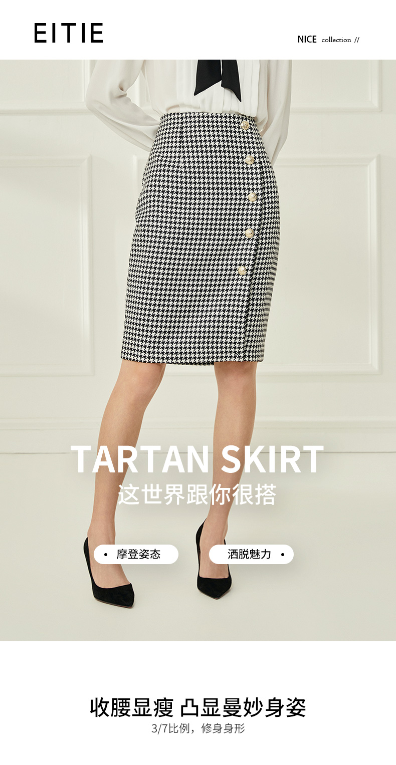 EITIE爱特爱秋冬新款洋气时髦格纹高腰包臀半身裙女裙半裙6706410