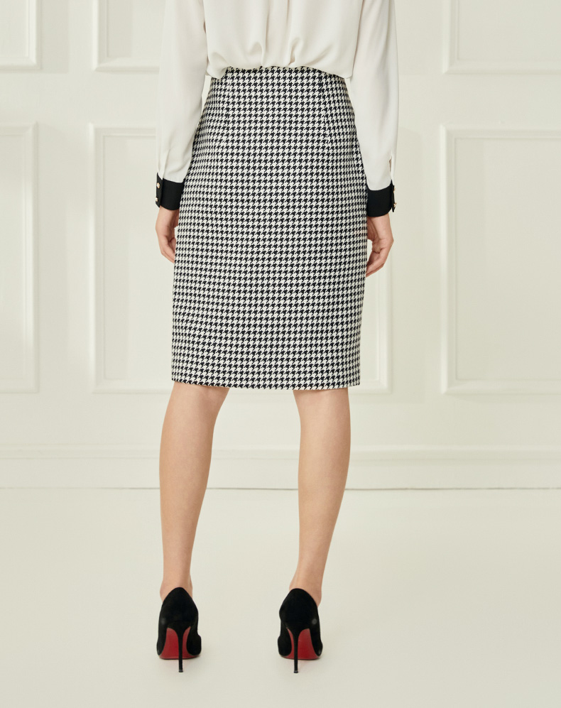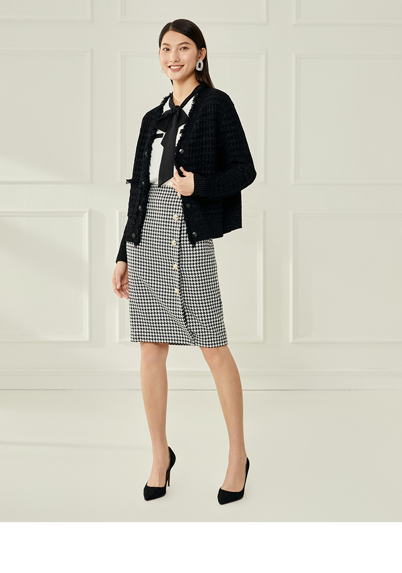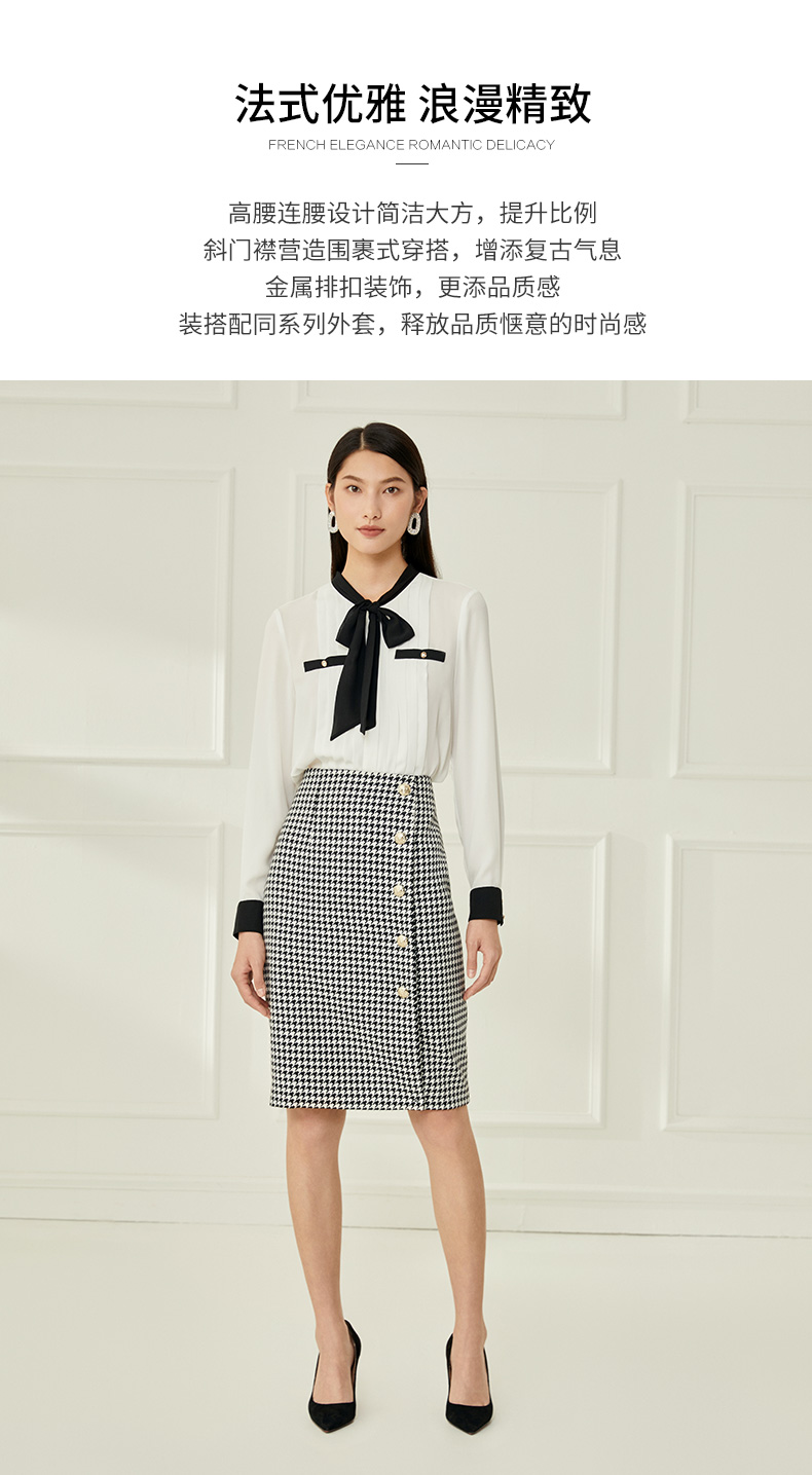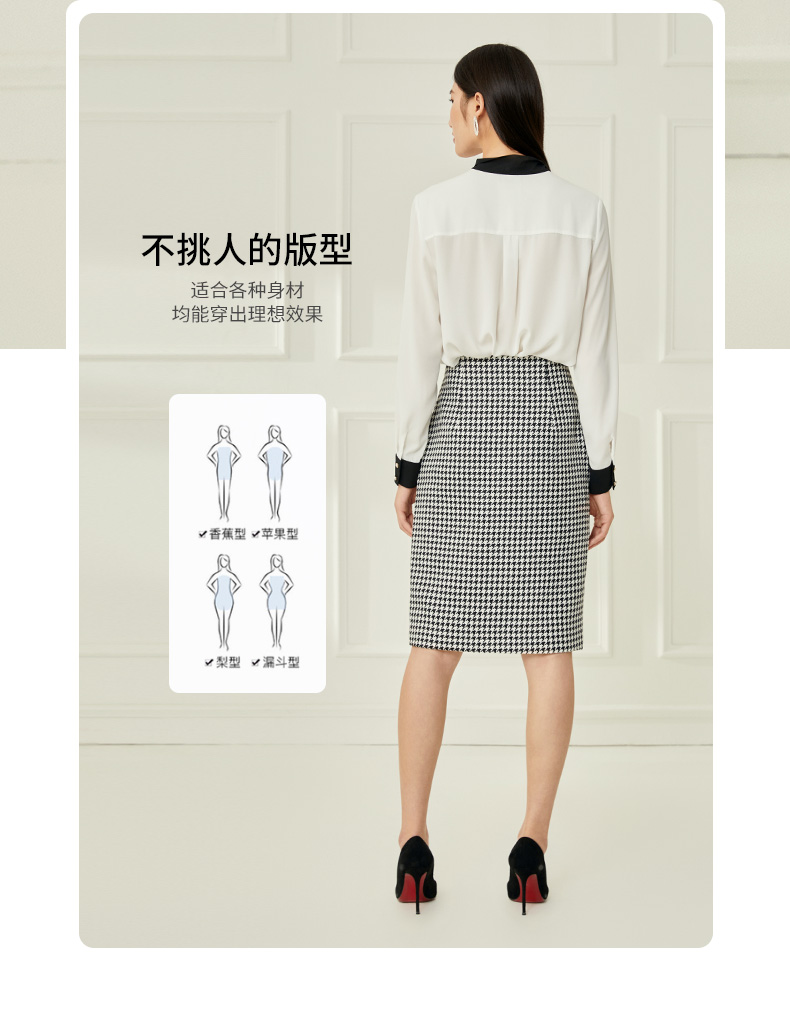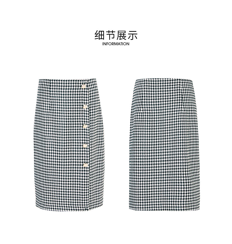 EITIE爱特爱秋冬新款洋气时髦格纹高腰包臀半身裙女裙半裙6706410