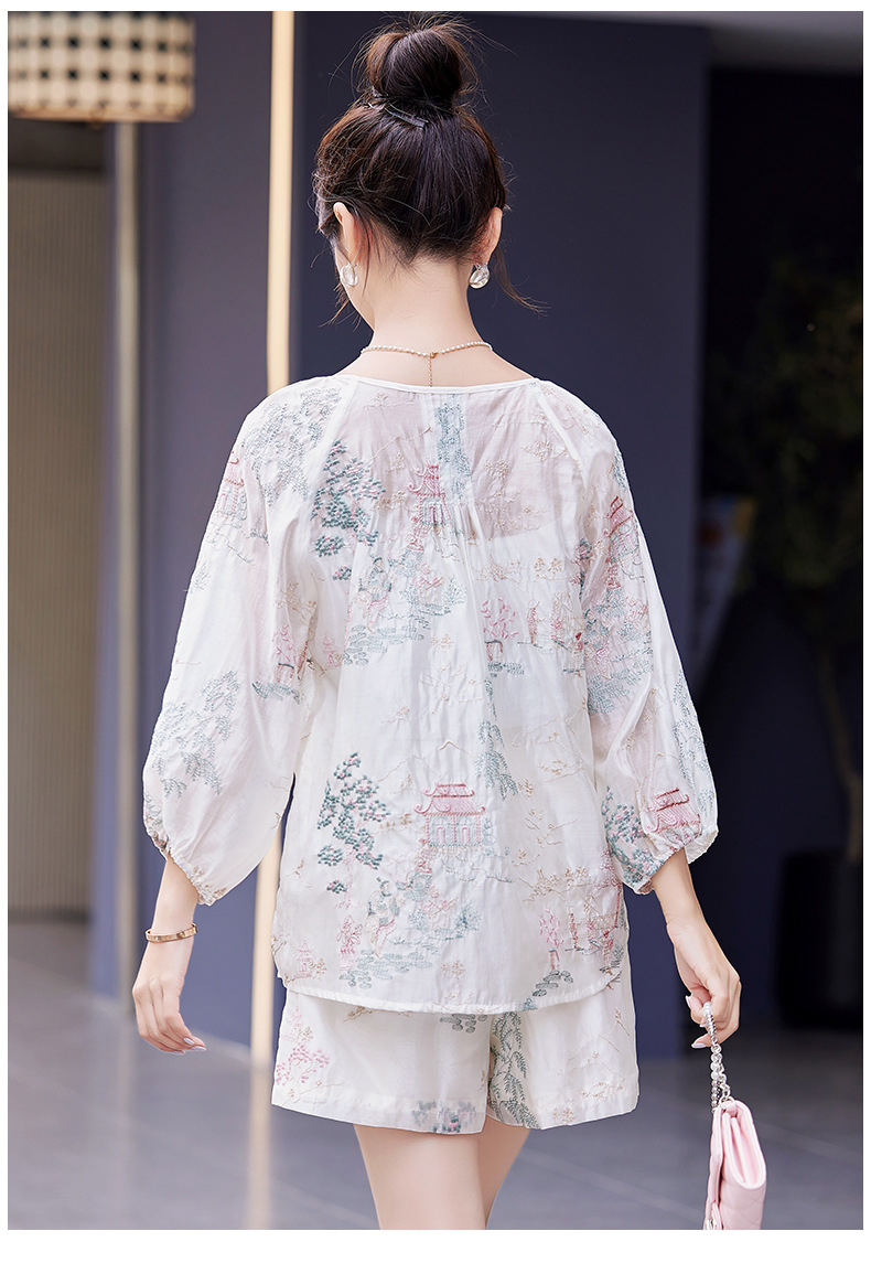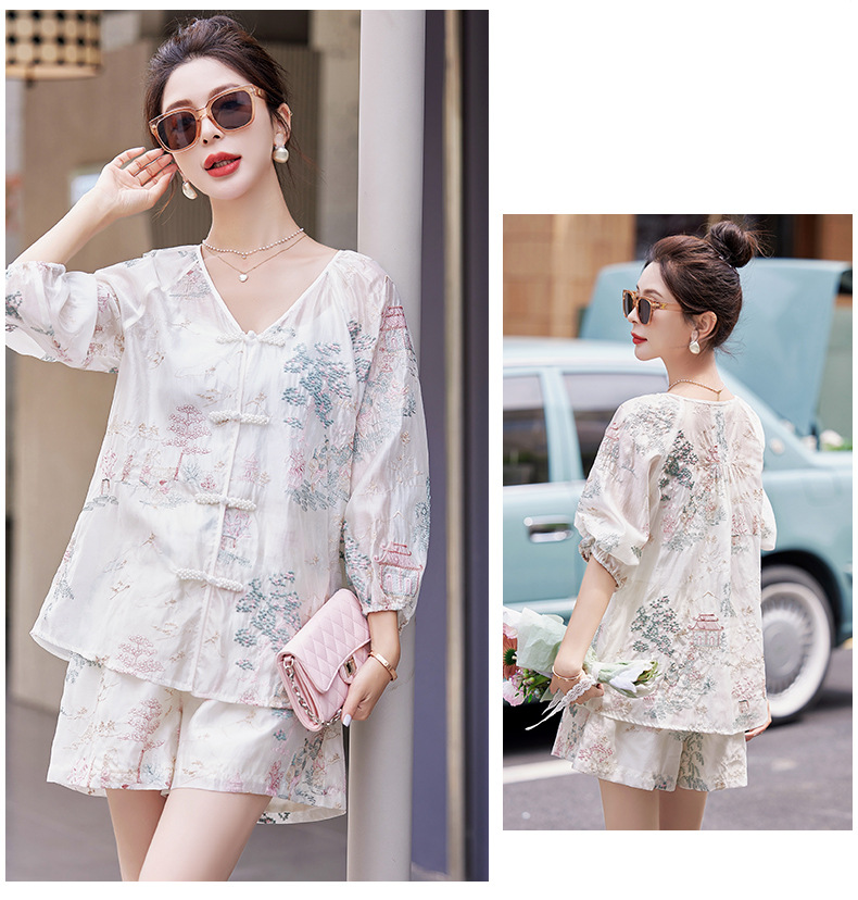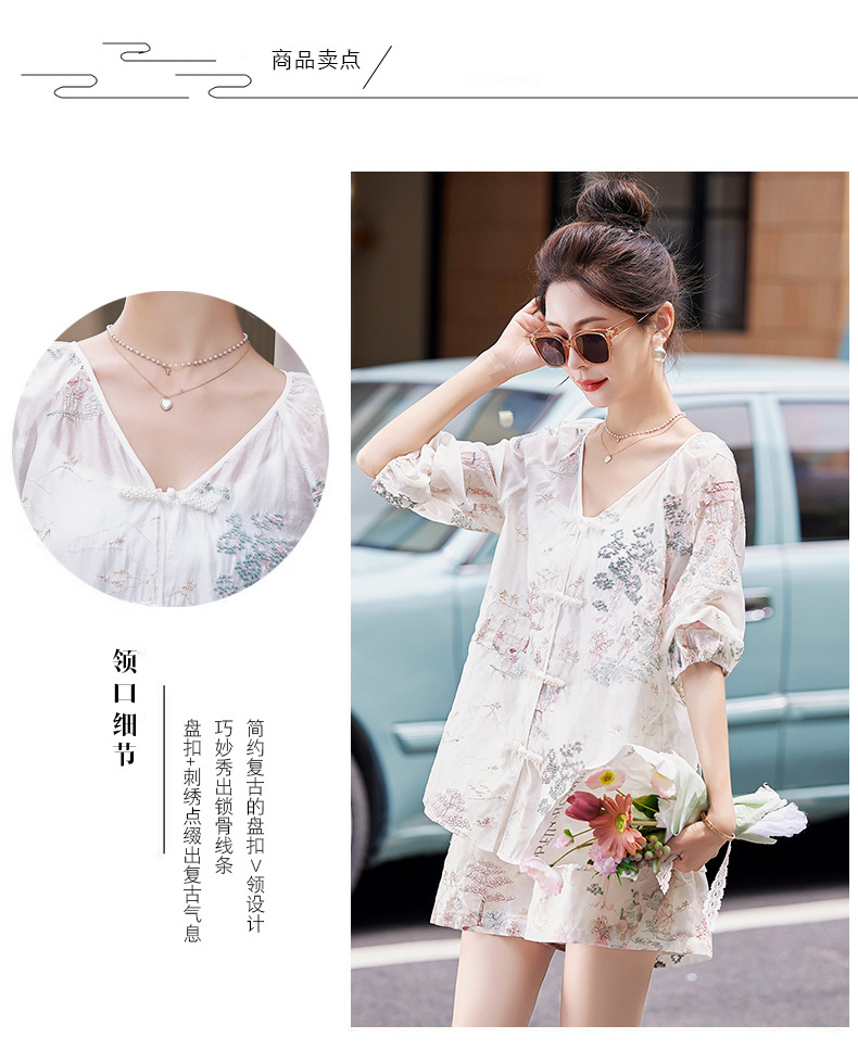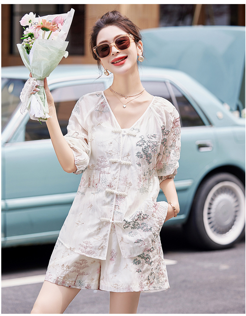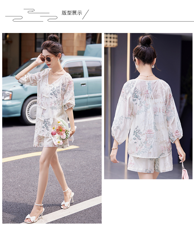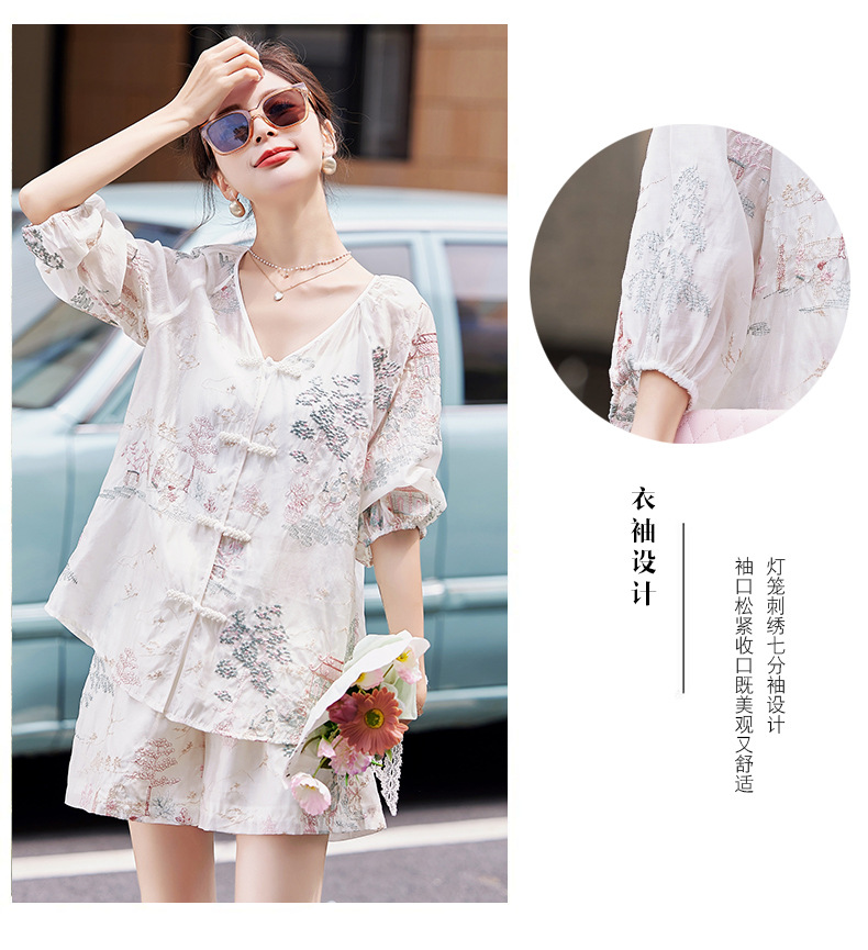 新中式国风短裤套装,宽松刺绣盘扣防晒衣两件套HR-ARE3718