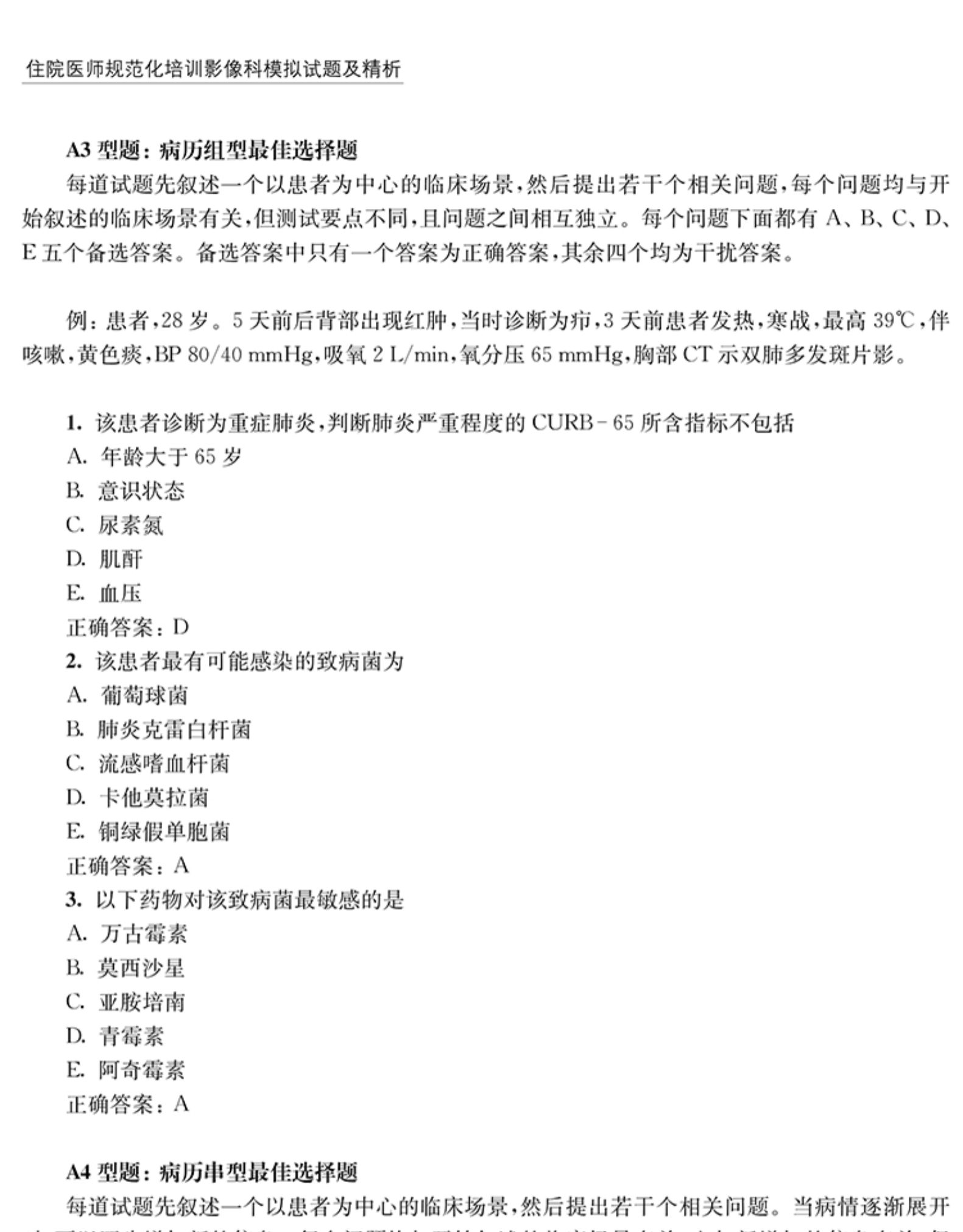 住院医师规范化培训影像科模拟试题及精析 9787313203335 住培考试宝典丛书