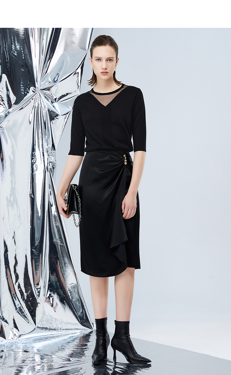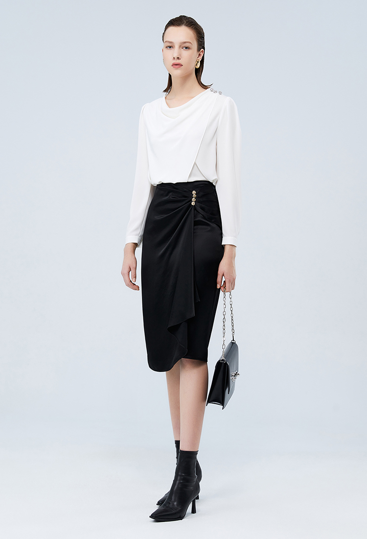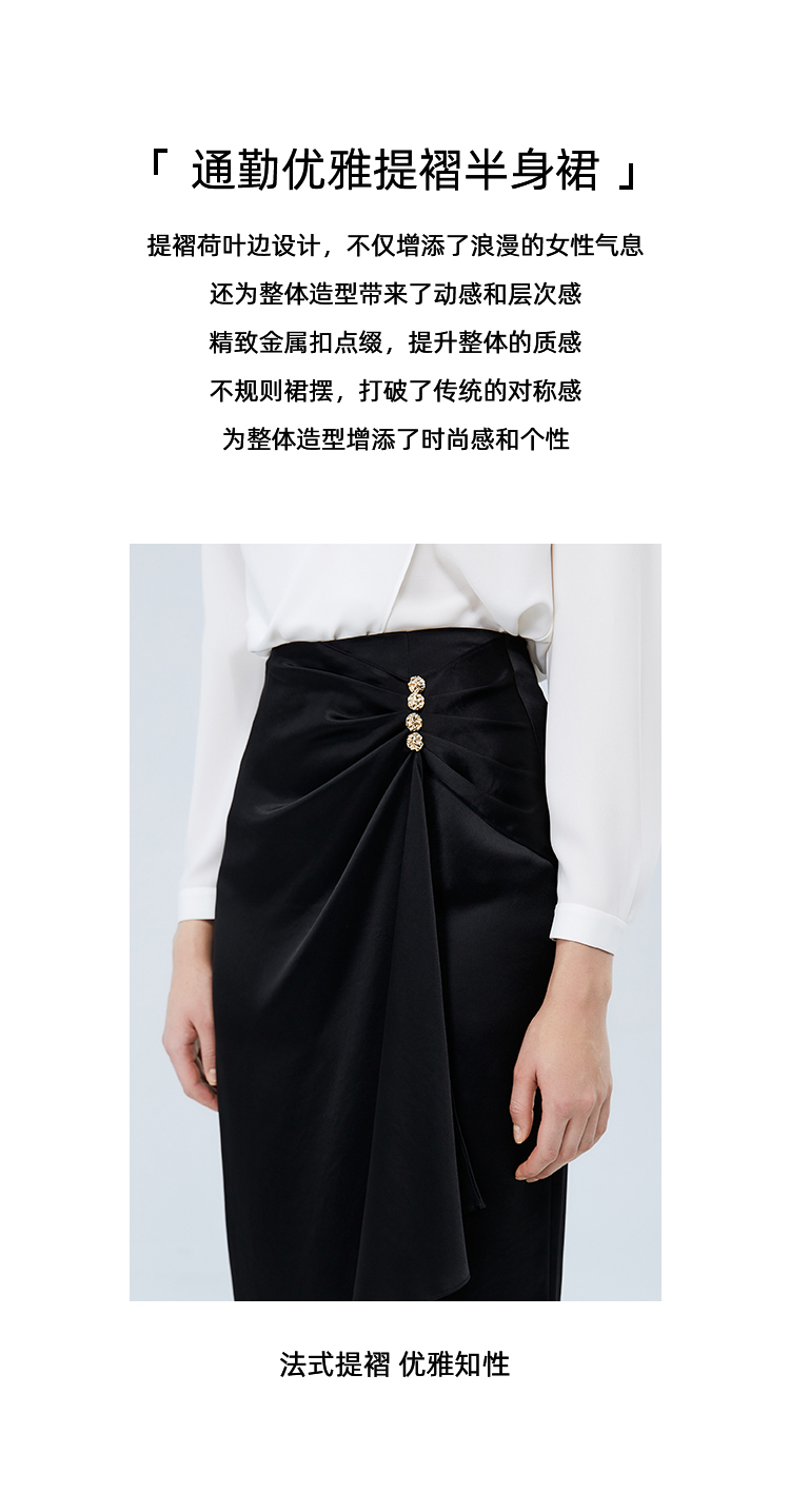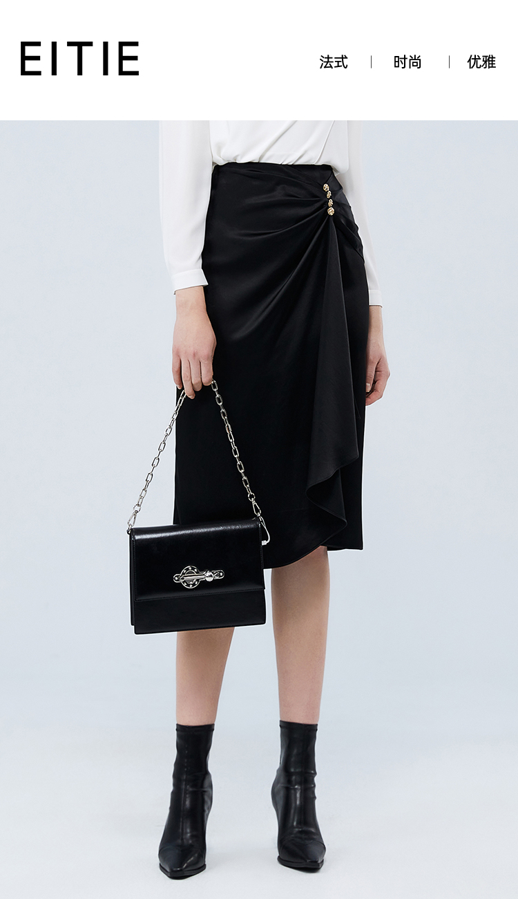 EITIE爱特爱秋季新款气质通勤显瘦百搭高腰半身裙7506202