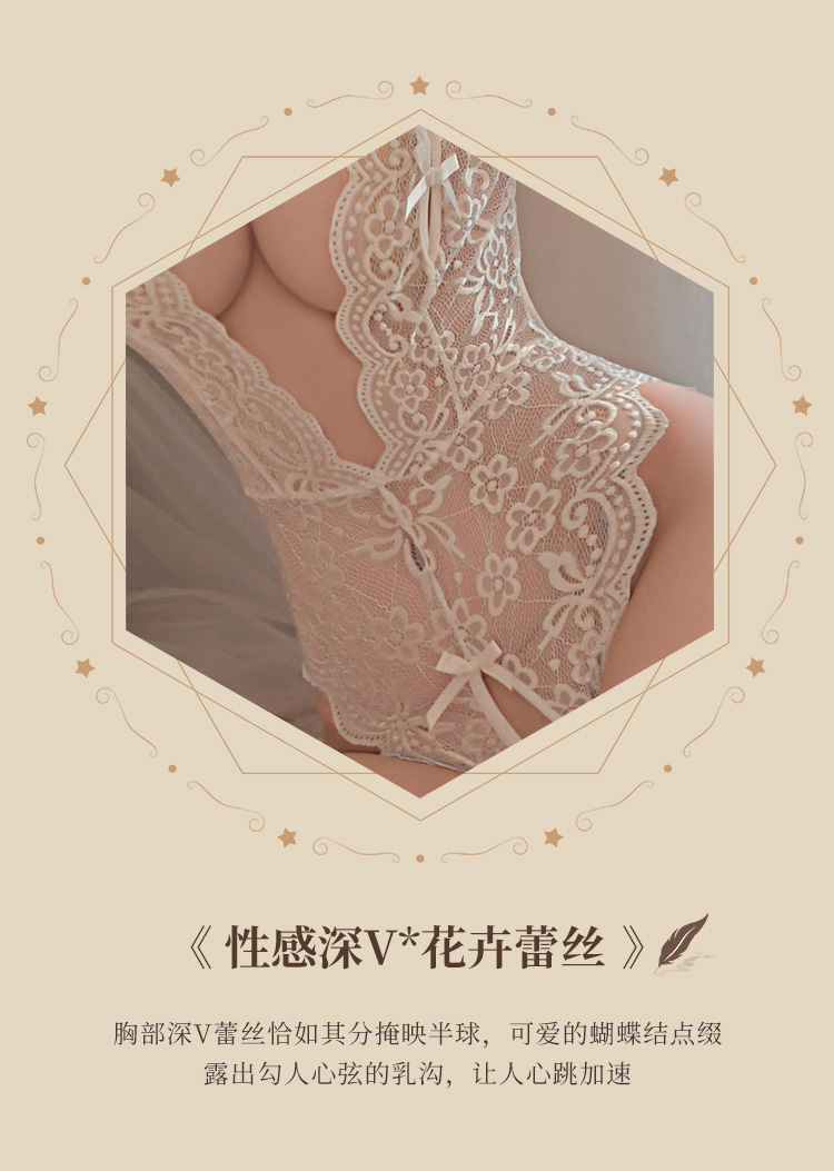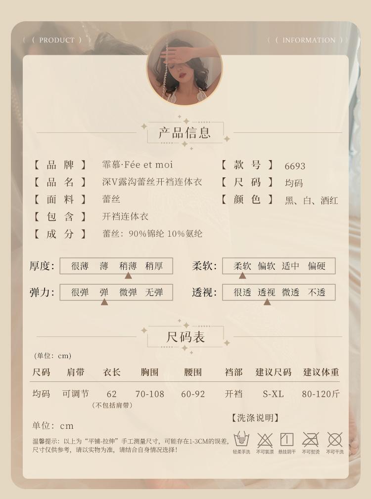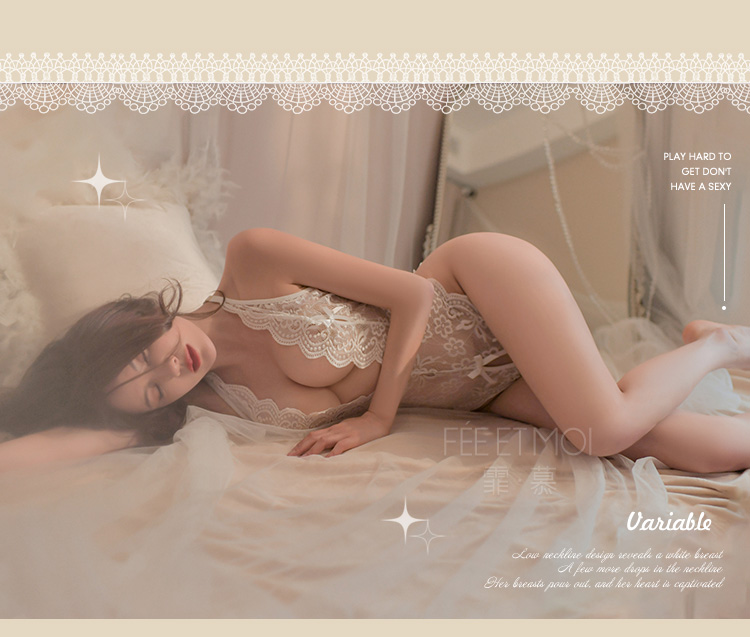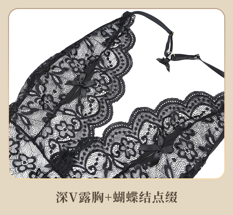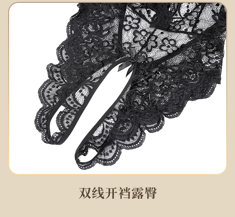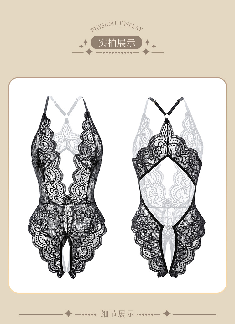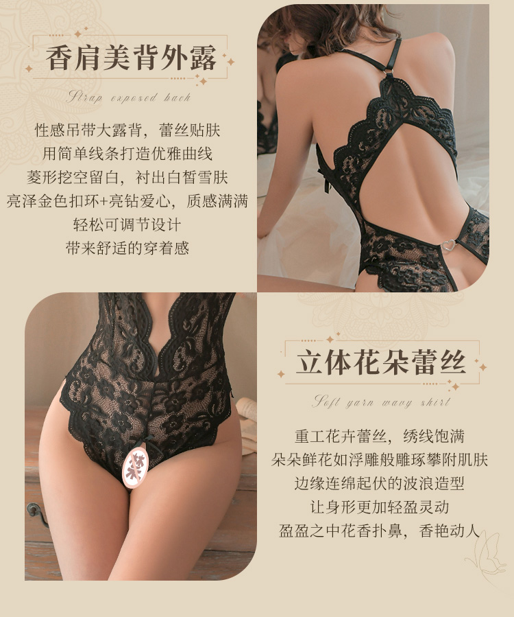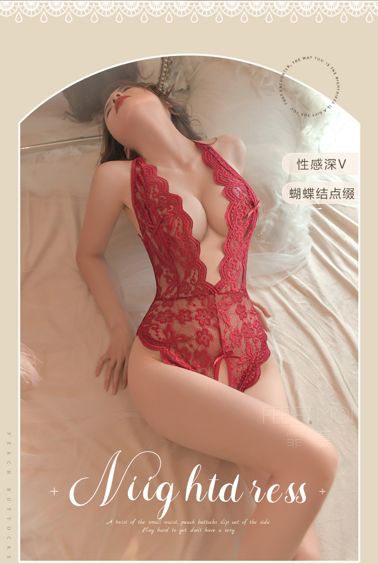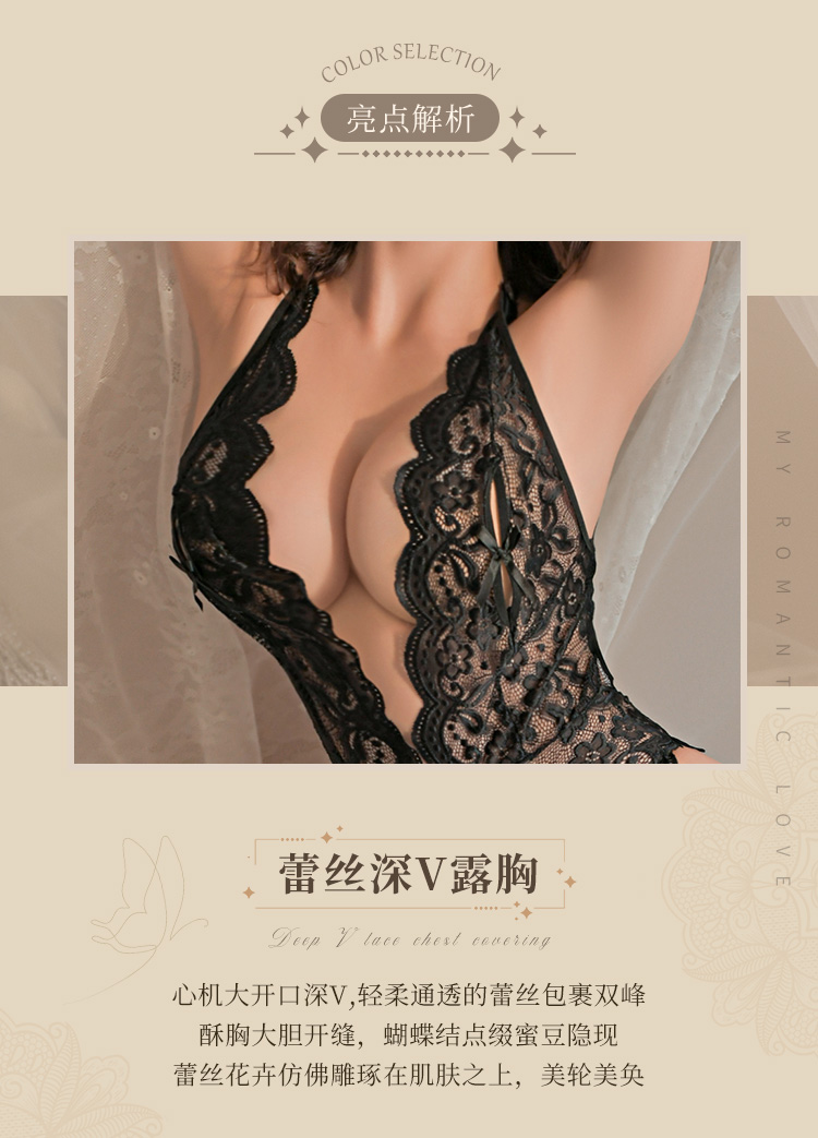 【情趣内衣】霏慕 深V露沟蕾丝开裆连体衣6693