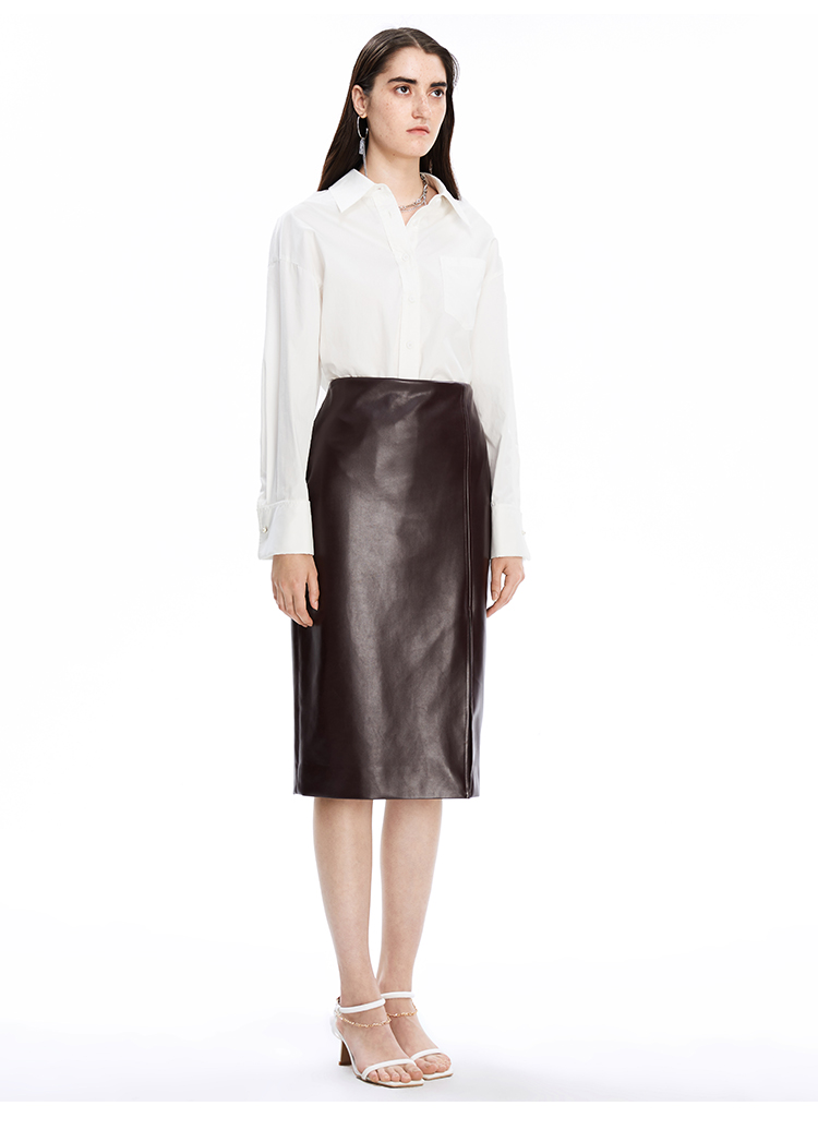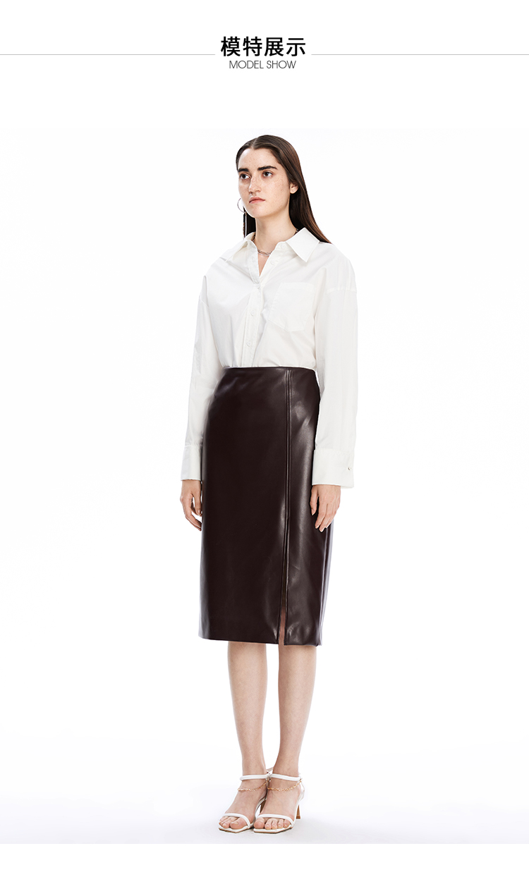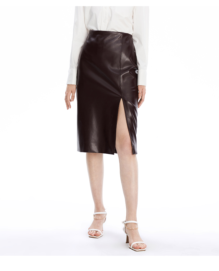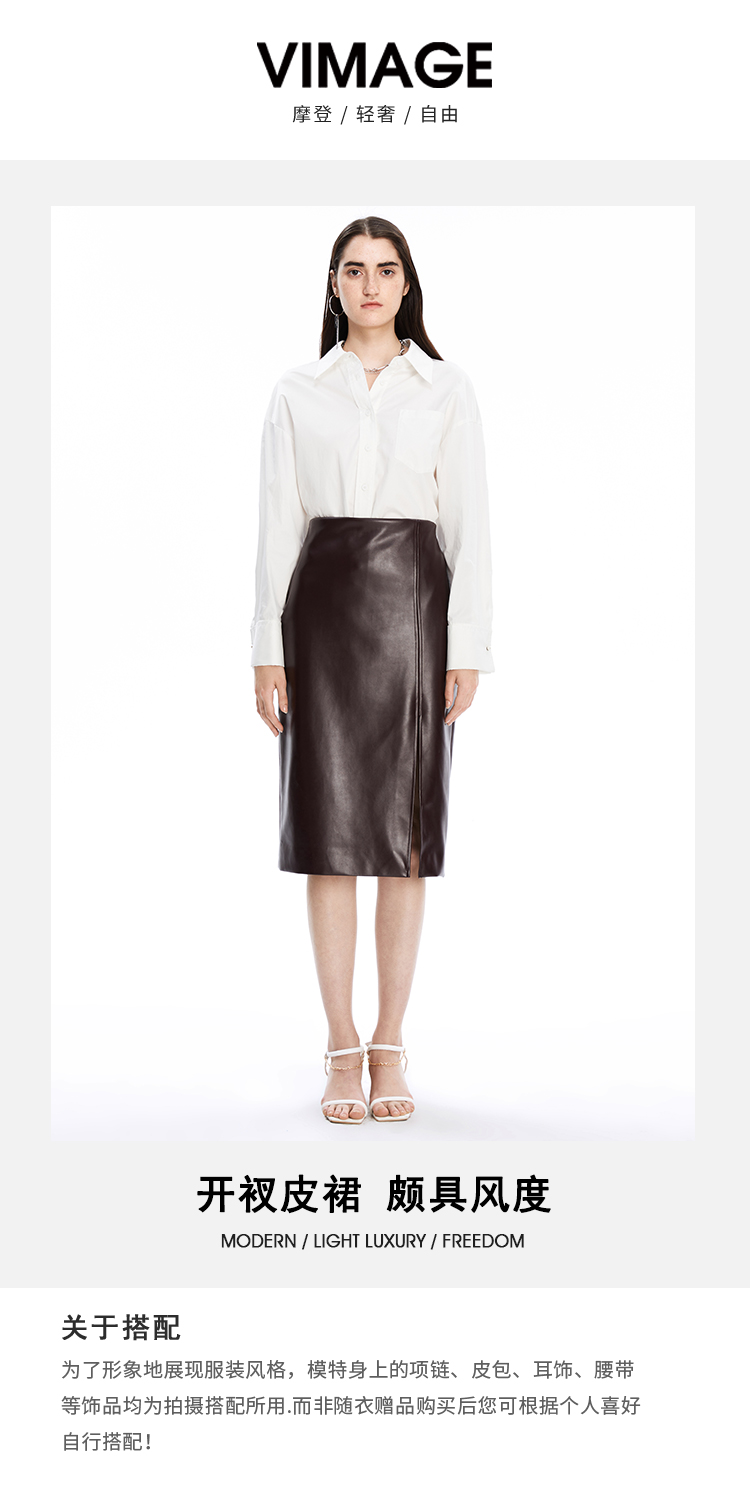 VIMAGE纬漫纪秋季新款时尚百搭洋气显瘦包臀开叉皮半身裙女V1606209