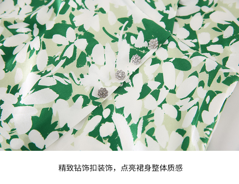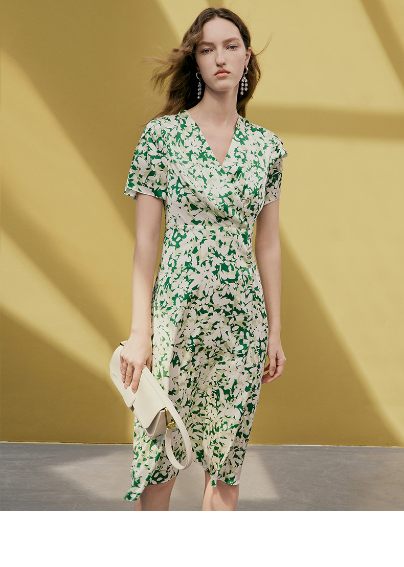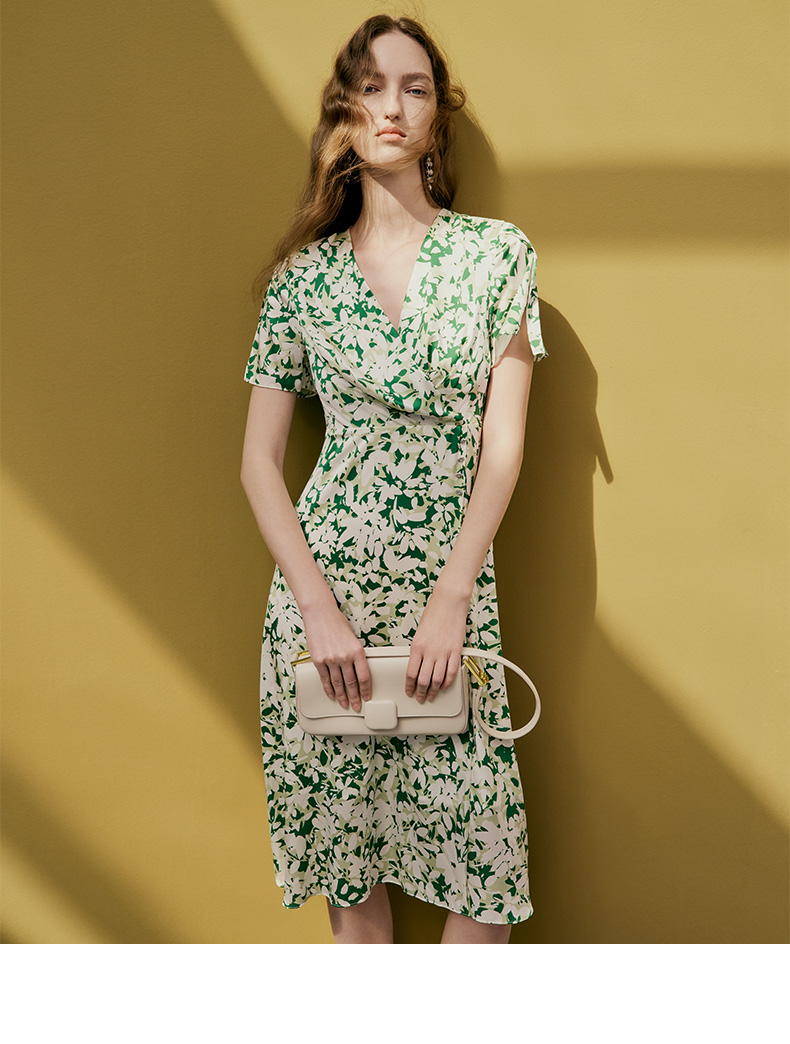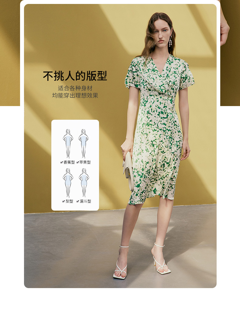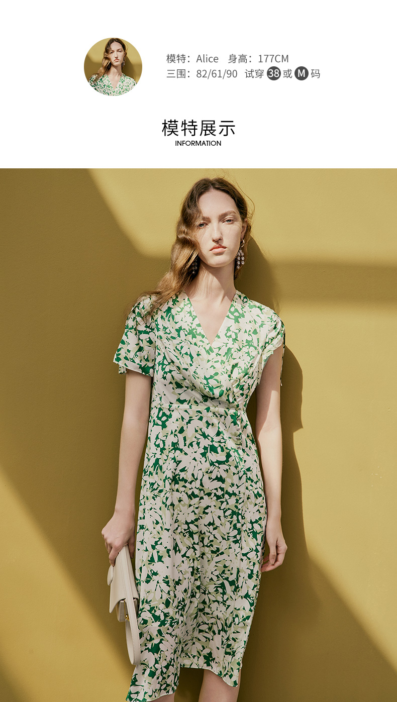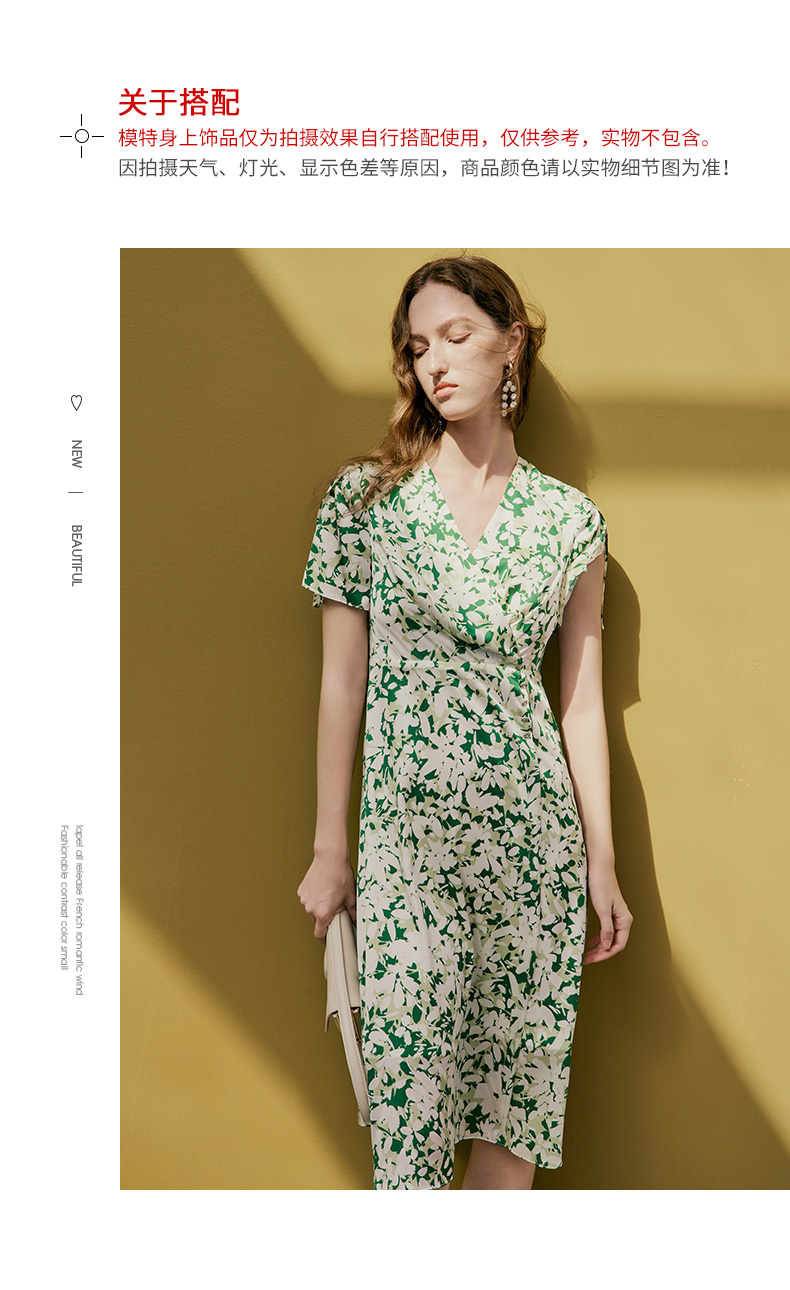 EITIE爱特爱夏季新款印花时尚气质V领显瘦高腰连衣裙7407107