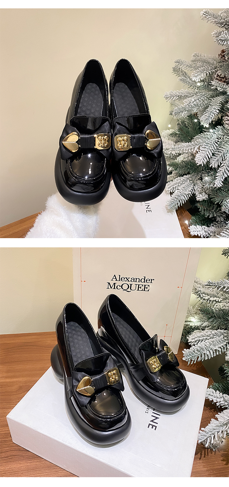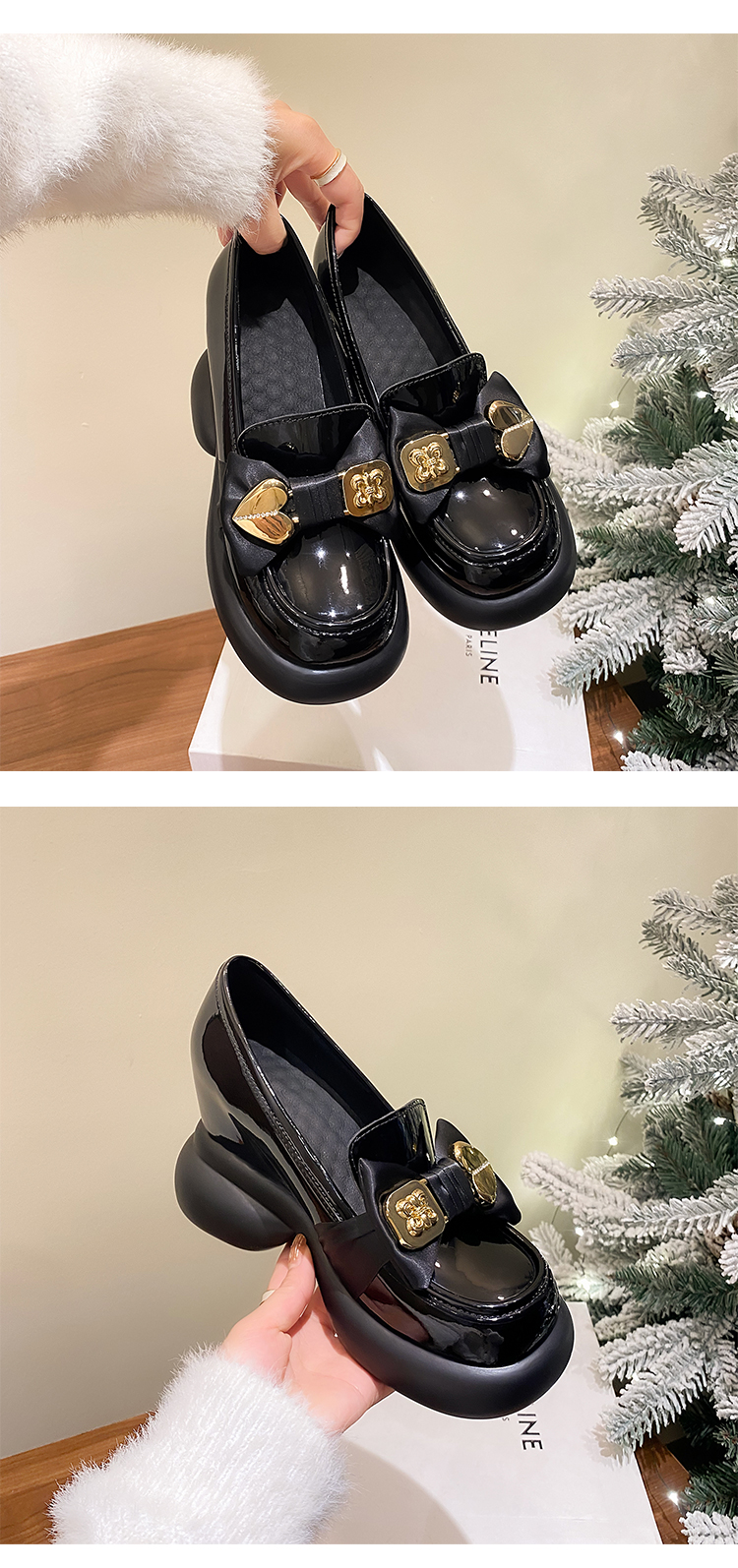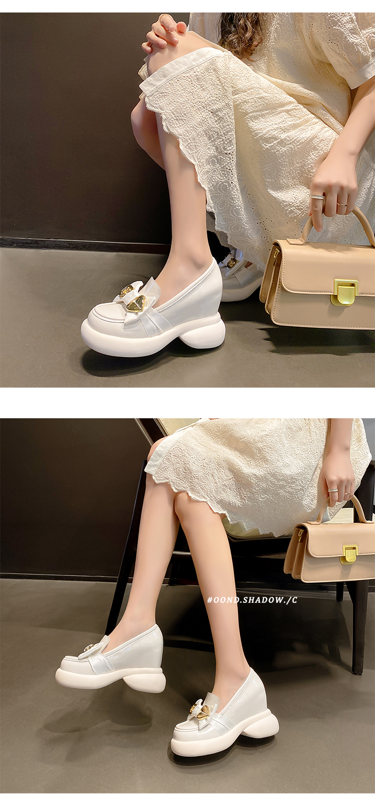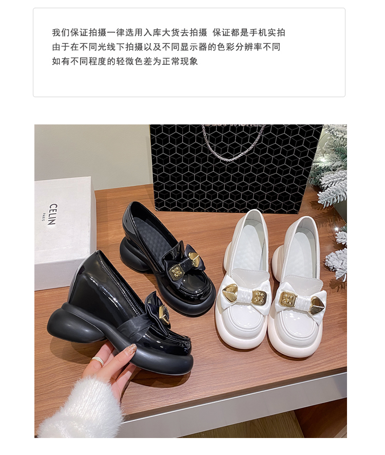 舒适柔软,真皮纯色蝴蝶结超高跟内增高单鞋HX-33-333