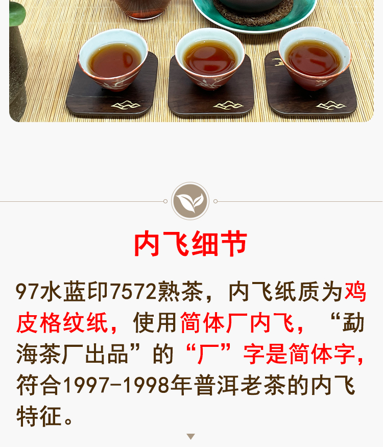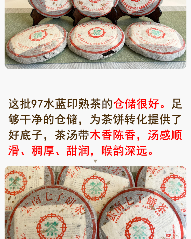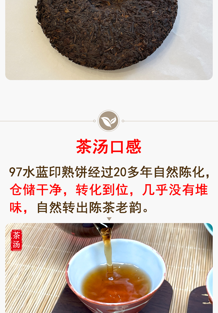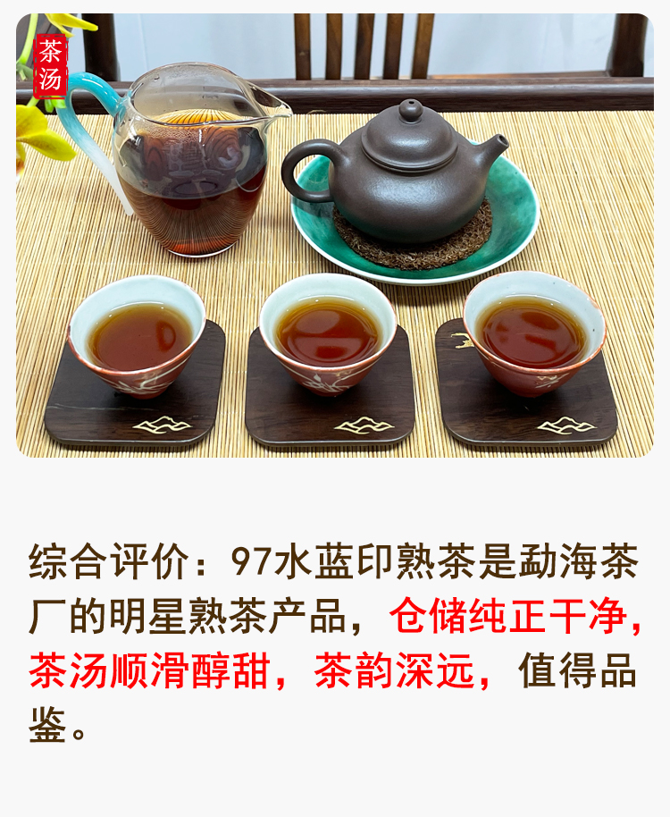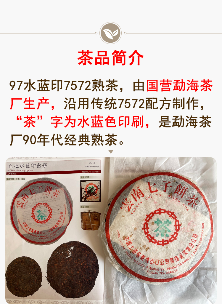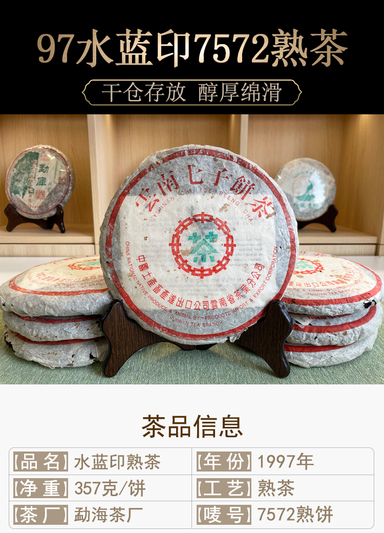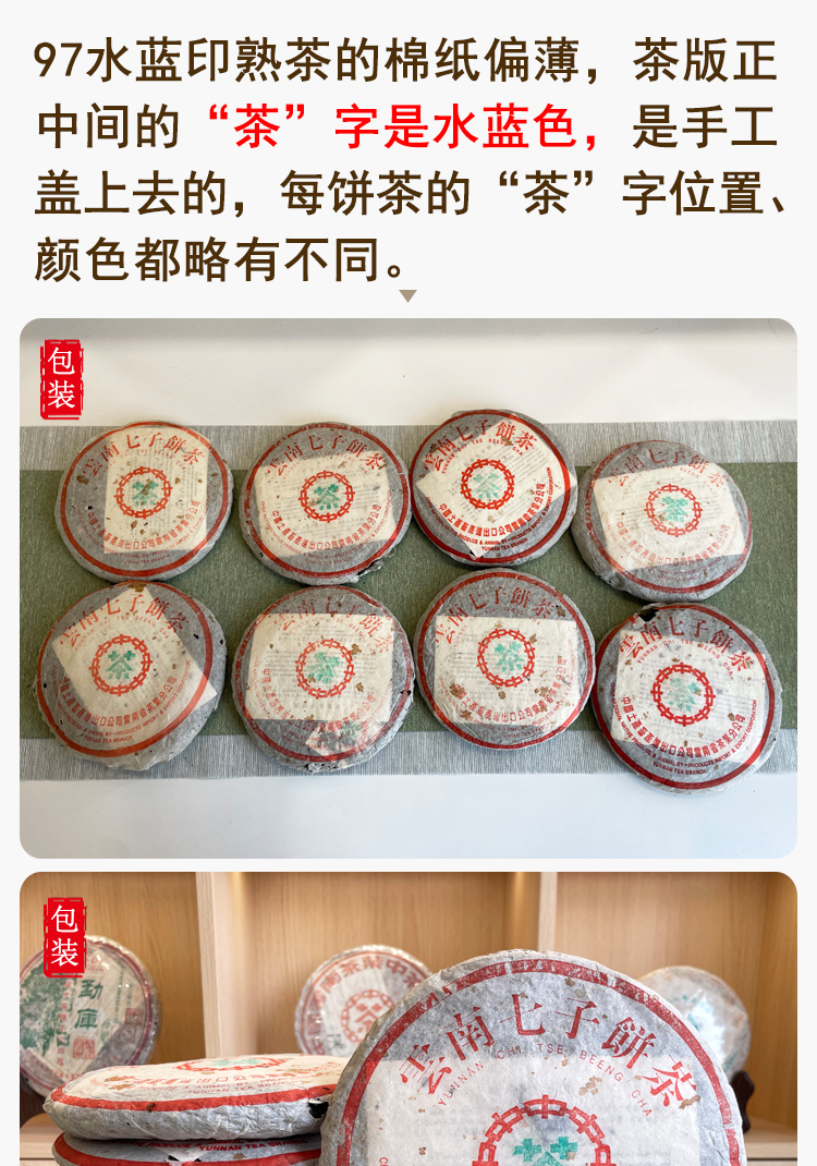 97水蓝印熟茶 国营勐海茶厂经典老熟茶 干仓特别好仓储 真品 细节内飞等介绍见详情页 支持鉴定 单片标价