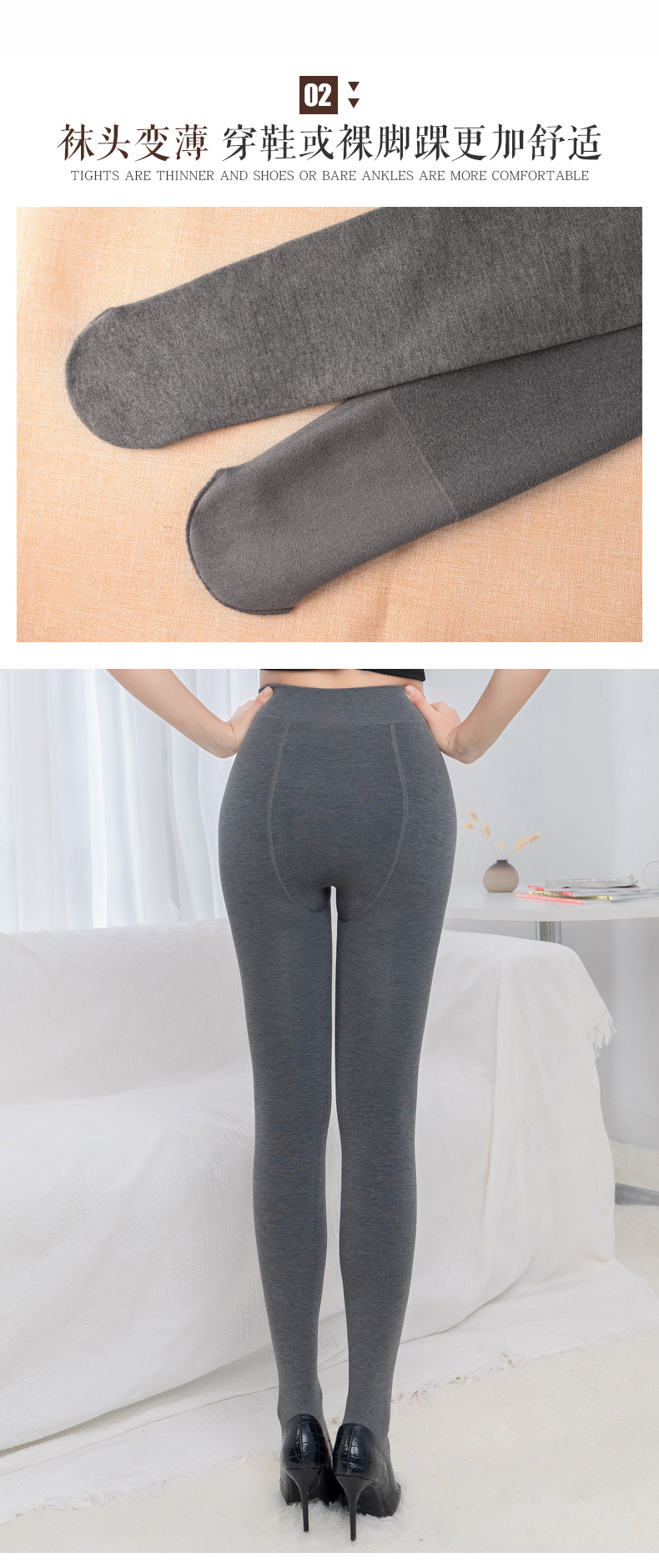 Diear植物小羊绒秋冬连裤袜(浅灰连脚)/1条(均码,适合45-70kg)补单专用
