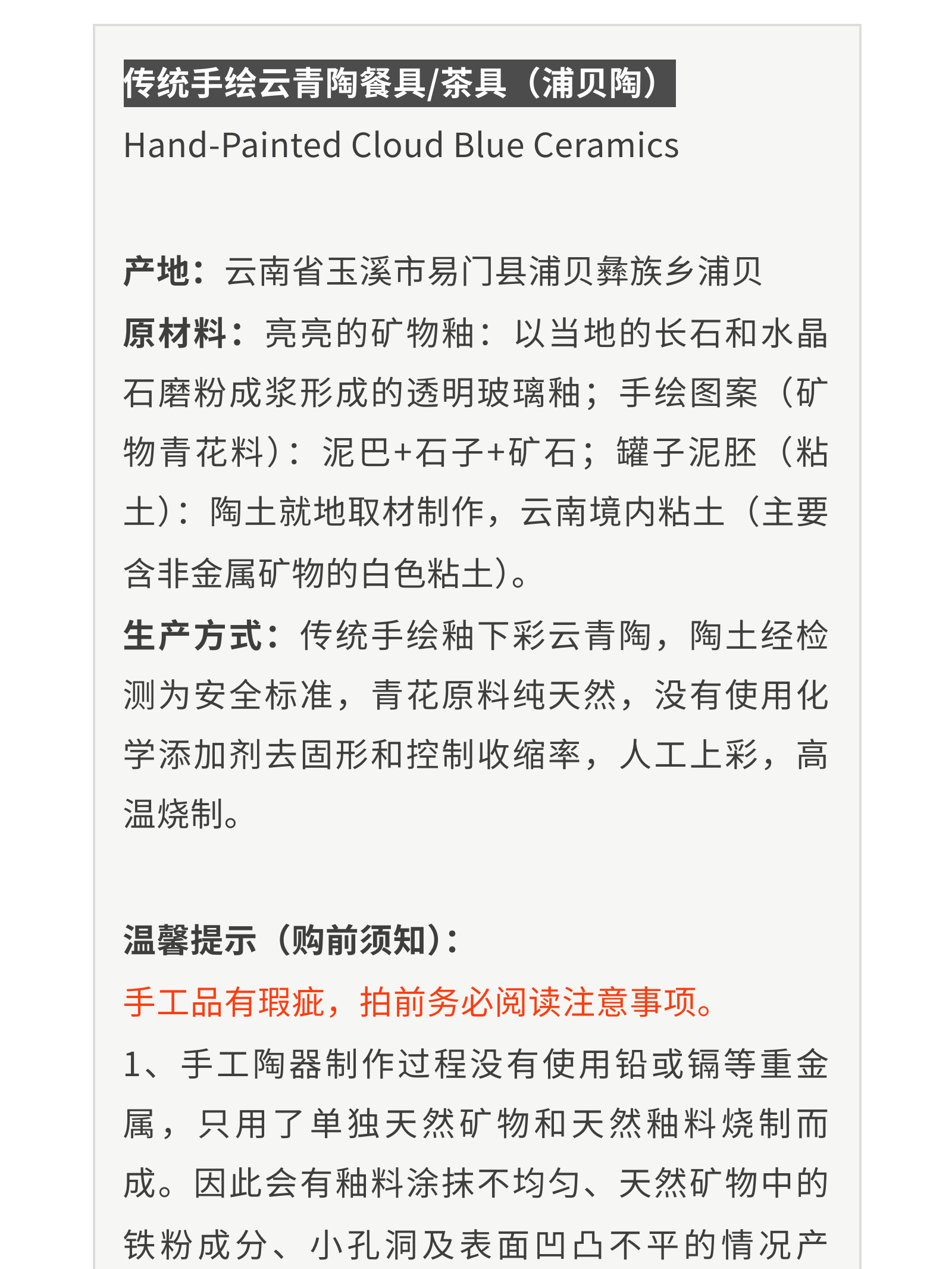 传统手绘云青陶餐具/茶具/碗/碟/杯/炖盅(浦贝陶)| 公平贸易 *Hand-Painted Cloud Blue Ceramics| Fair Trade
