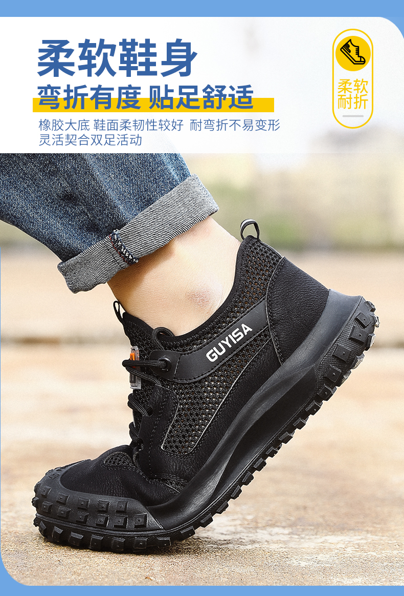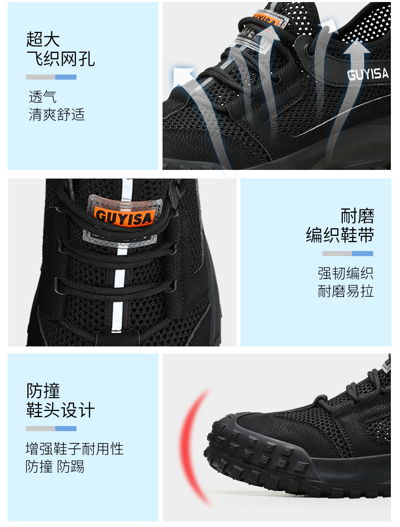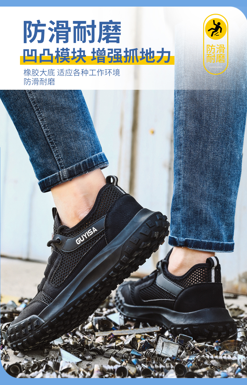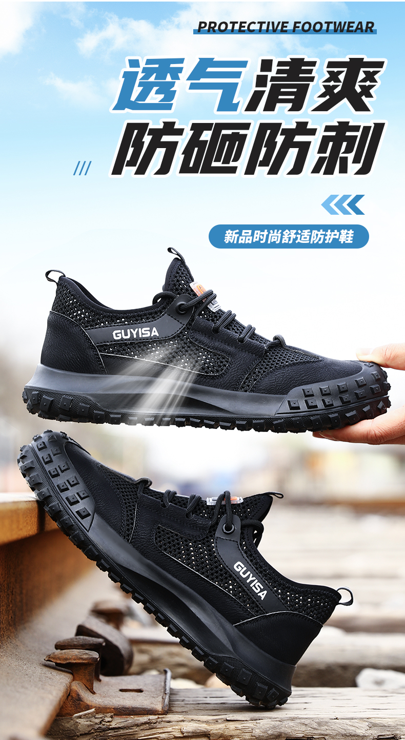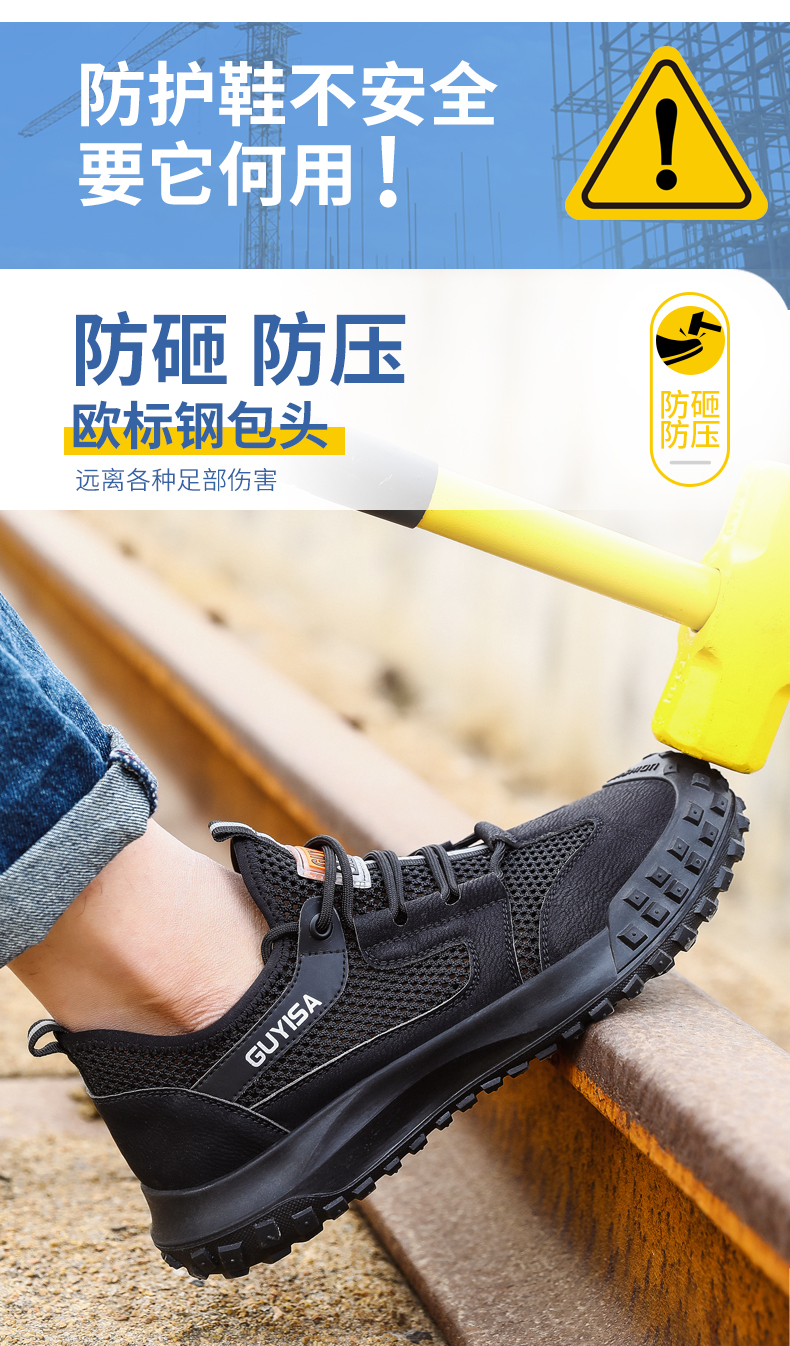新品黑色夏季透气劳保鞋防砸防刺耐磨大网眼透气安全鞋防护鞋