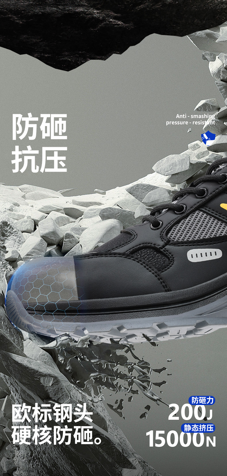 蓝鸥盾防砸防刺穿欧标钢包头凯夫拉橡胶底耐磨抗造