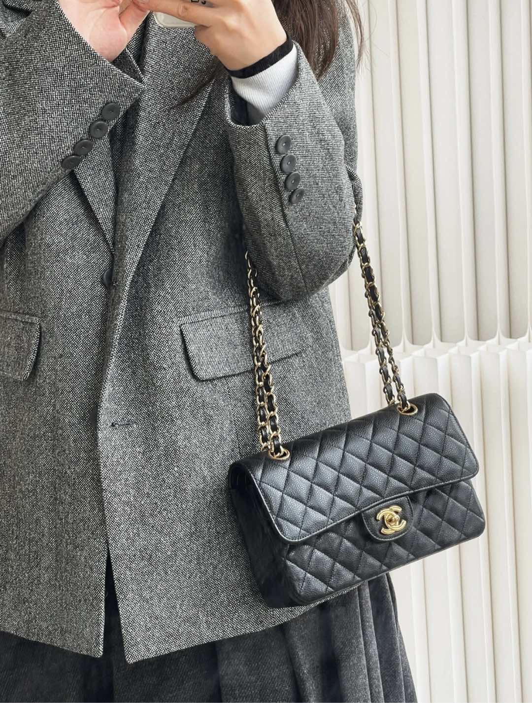 女人的梦中情包,小香CF,尤其是这款鱼子酱系列 一眼爱了,可盐可甜、越看越喜欢。拎着的时候感觉可以给自己加一个优雅buff, 更适合白领一组~