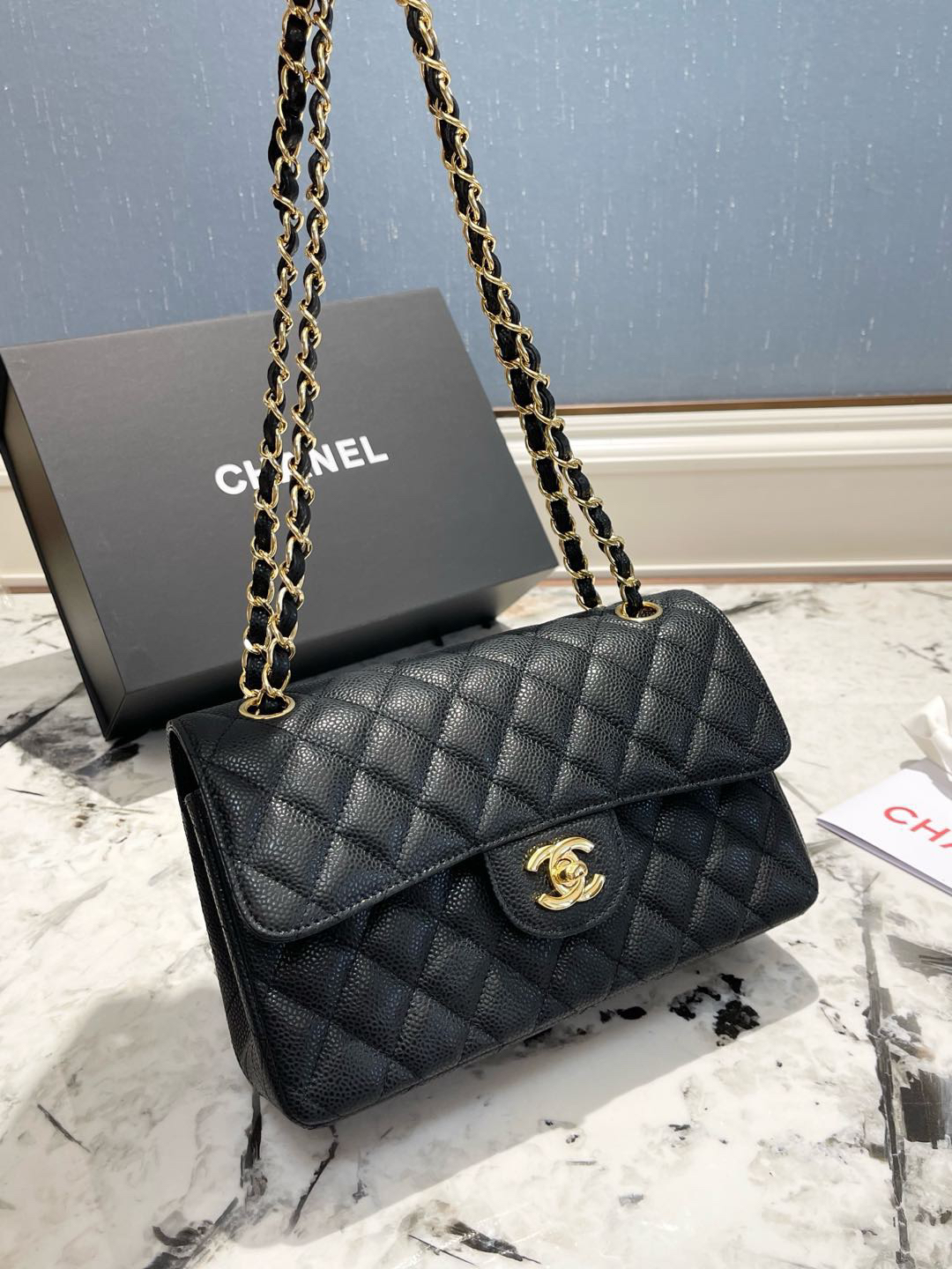 💰899顺丰包邮 已入库,高端定制 Chanel 香奈儿CF 鱼子酱黑金牛皮包 尺寸23✖️14✖️6.5cm 全套礼盒🎁装,进口牛皮 全钢五金 市面上此版本没有低于1500的 可作为年货!
