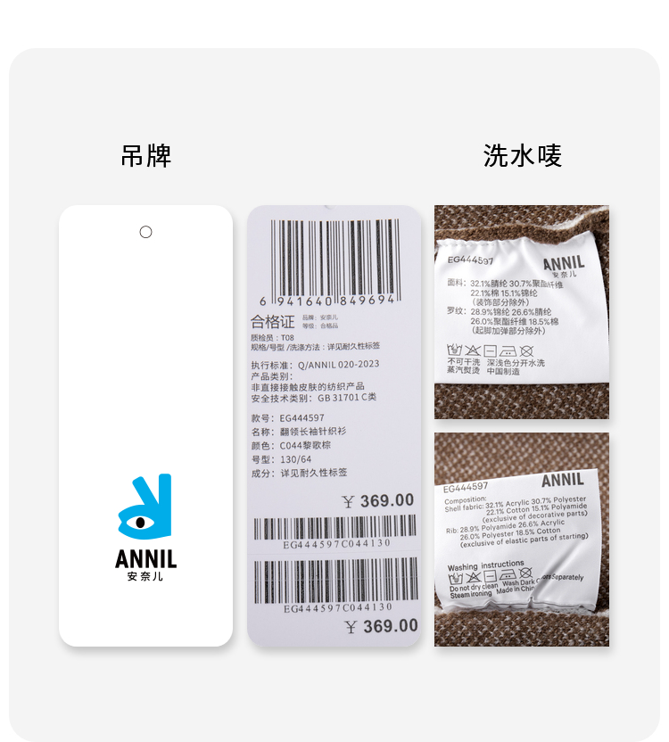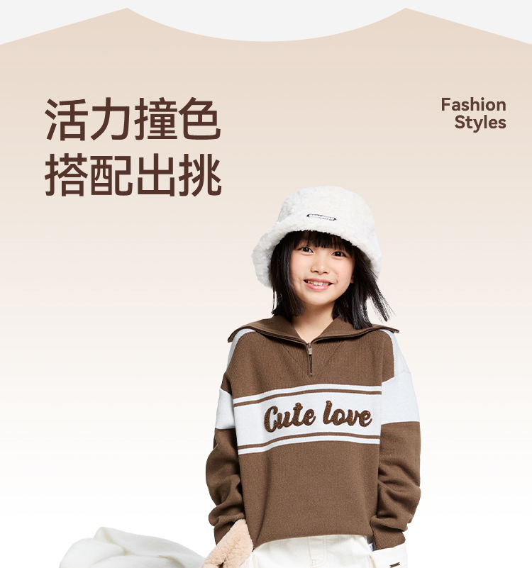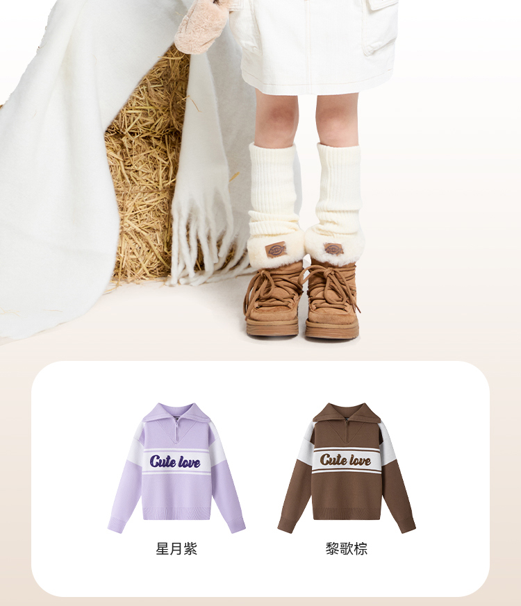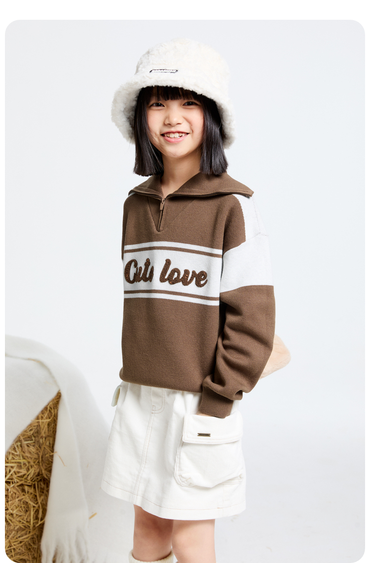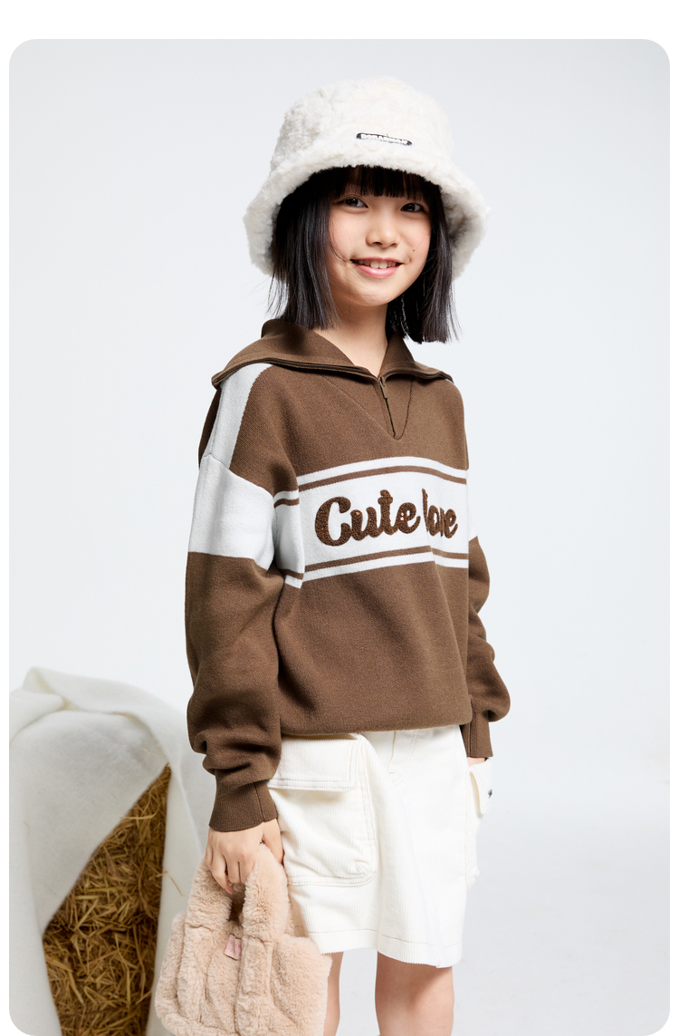女童翻领长袖针织衫冬季新款安奈儿童装EG444597