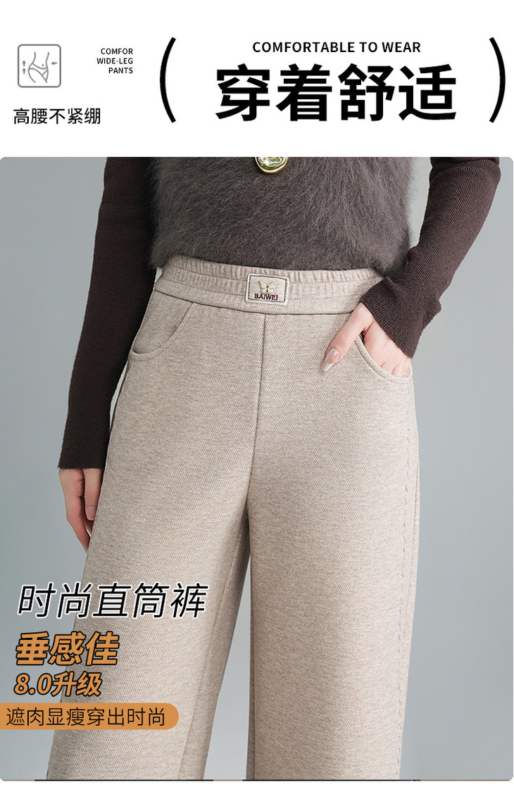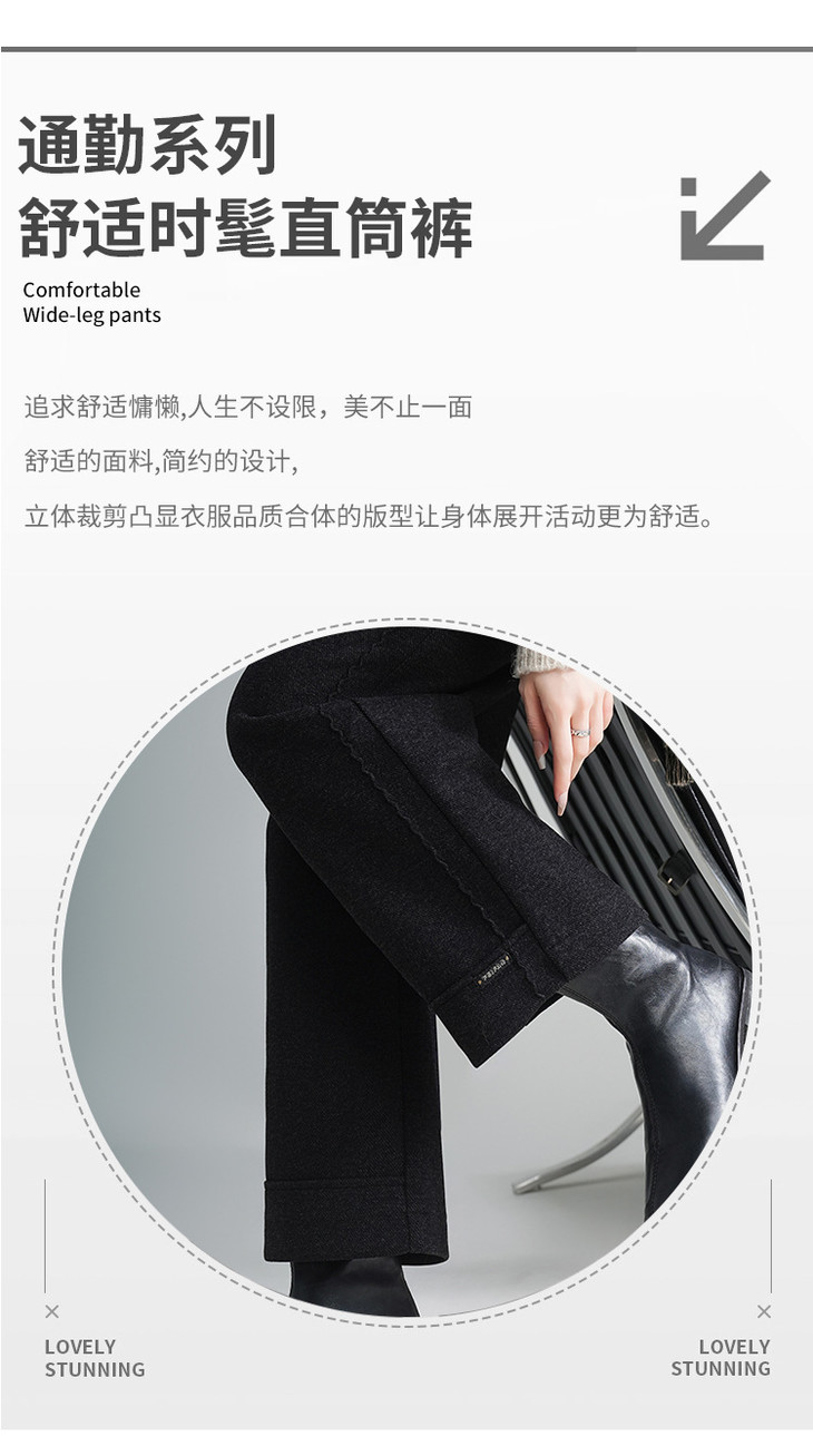 毛呢垂感直筒裤,松紧腰通勤时尚九分裤窄版阔腿裤MYX-QM-8953-L