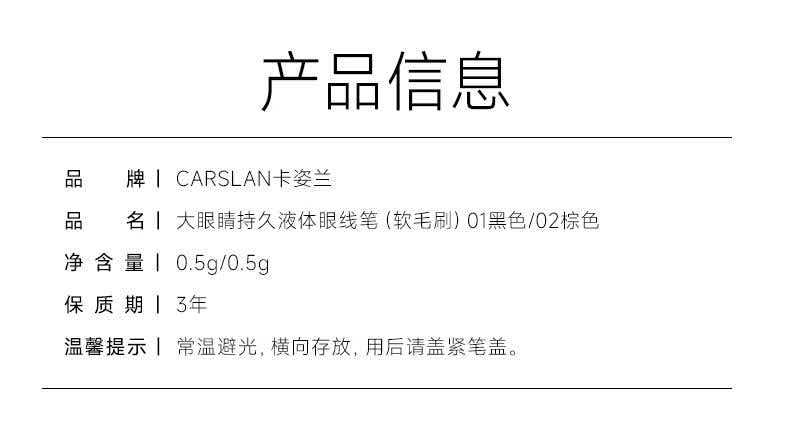 【精选】卡姿兰(Carslan)大眼睛持久液体眼线笔不易晕染持久顺滑显色(黑色)0.5ml 新年礼物