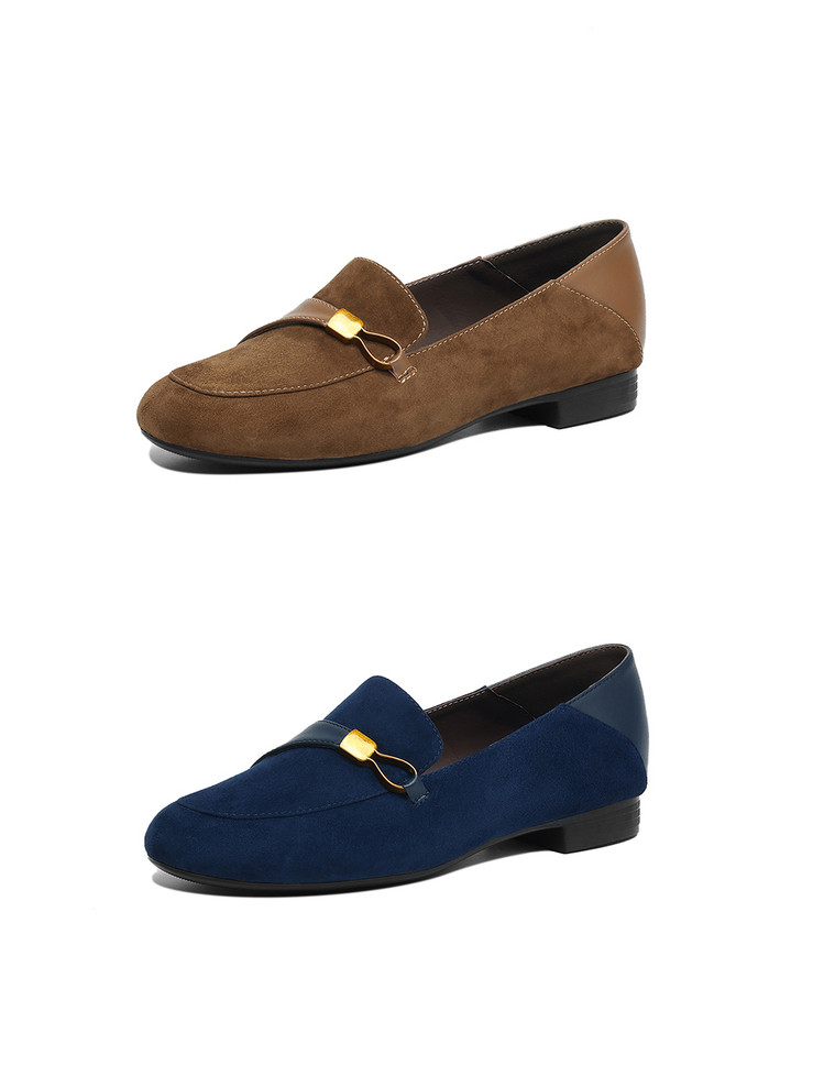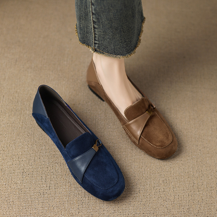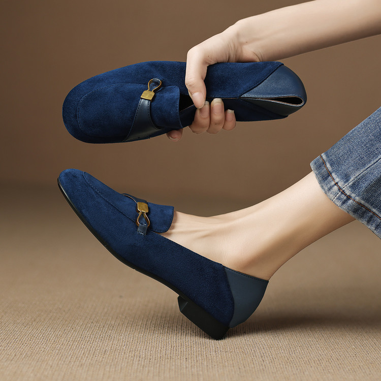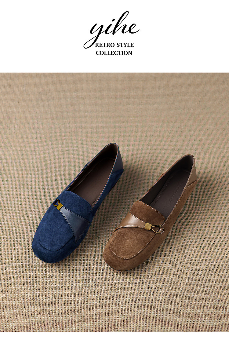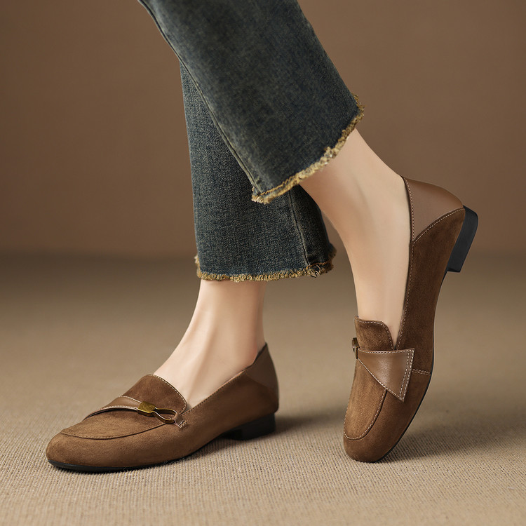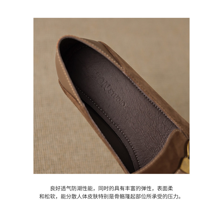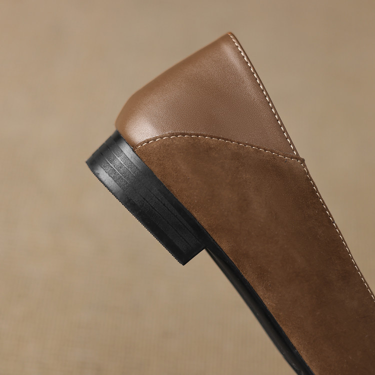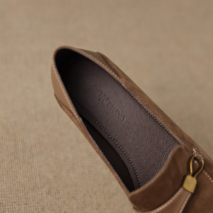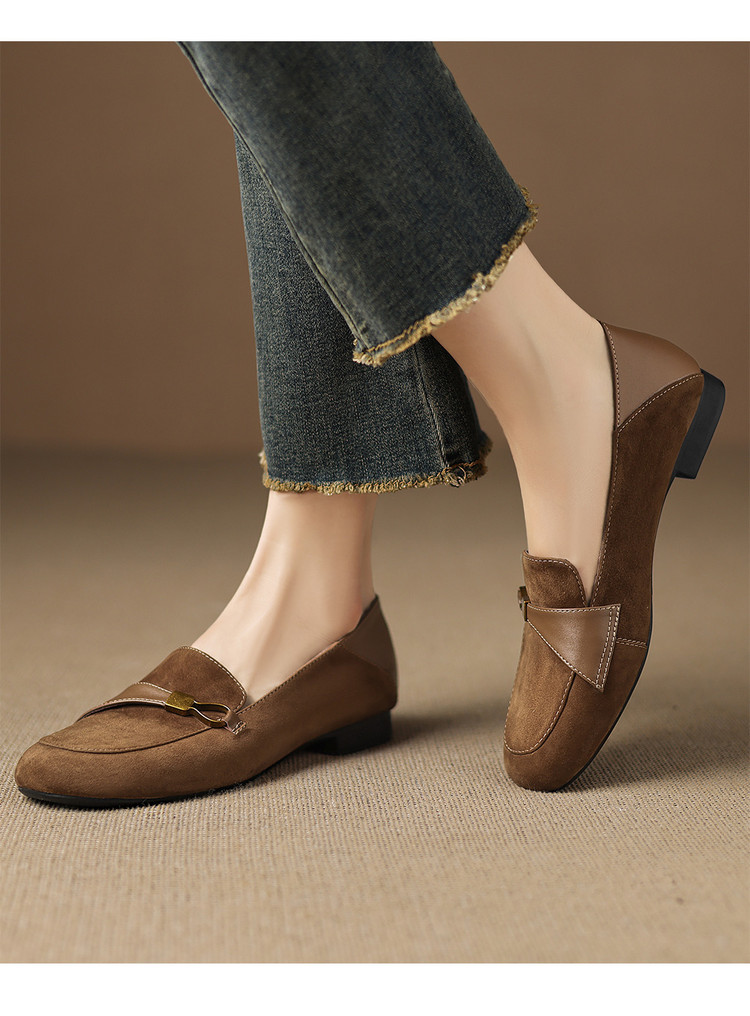 【预售5天】乐福鞋女中跟新款春秋季复古圆头单鞋女粗跟拼接小皮鞋JBL&JBL25-165