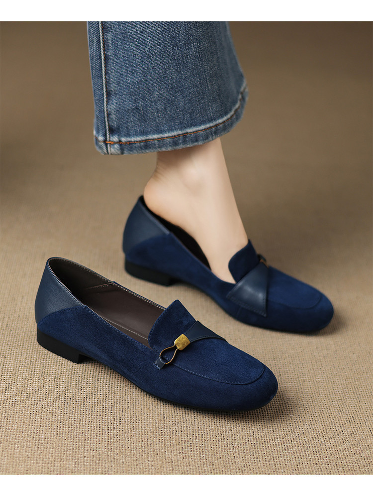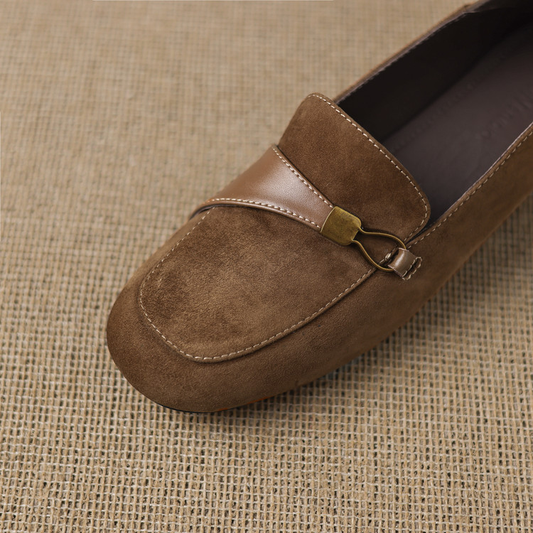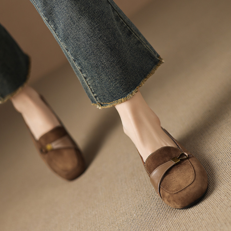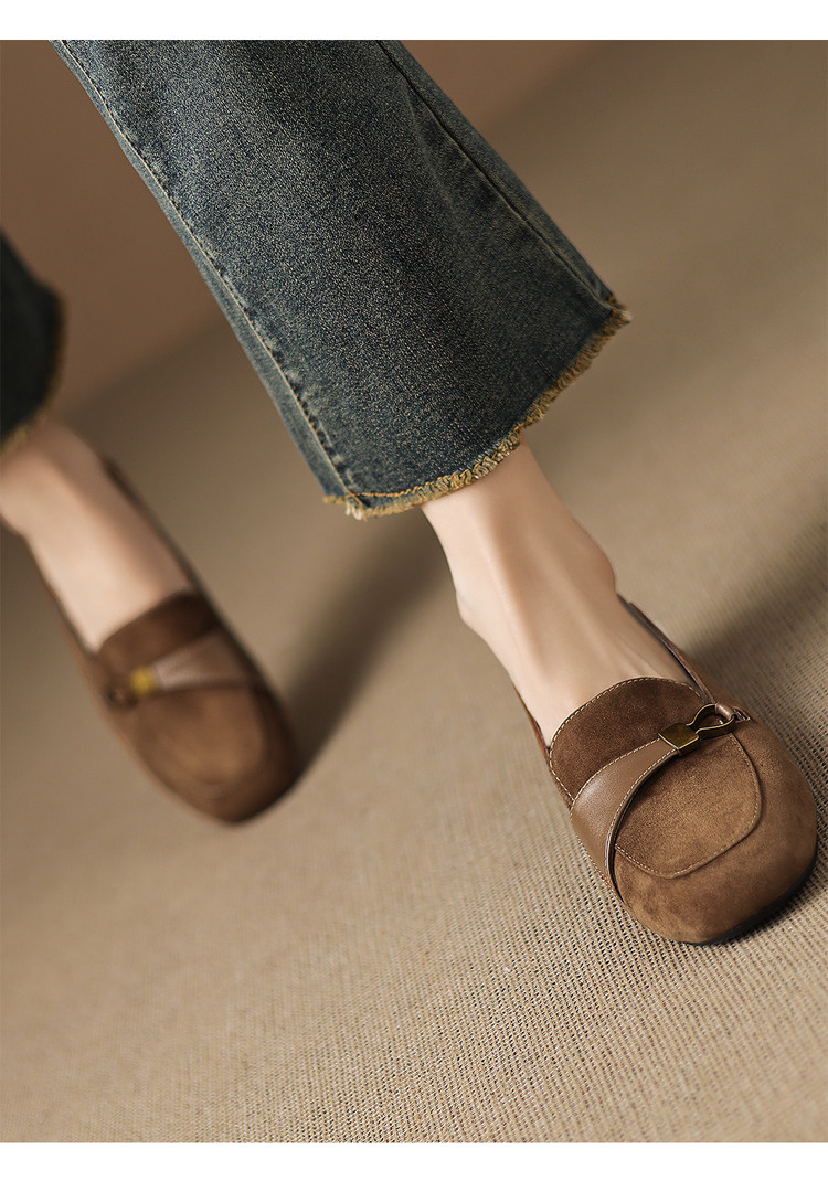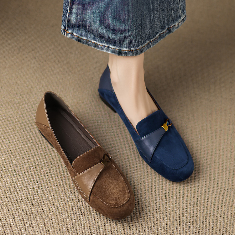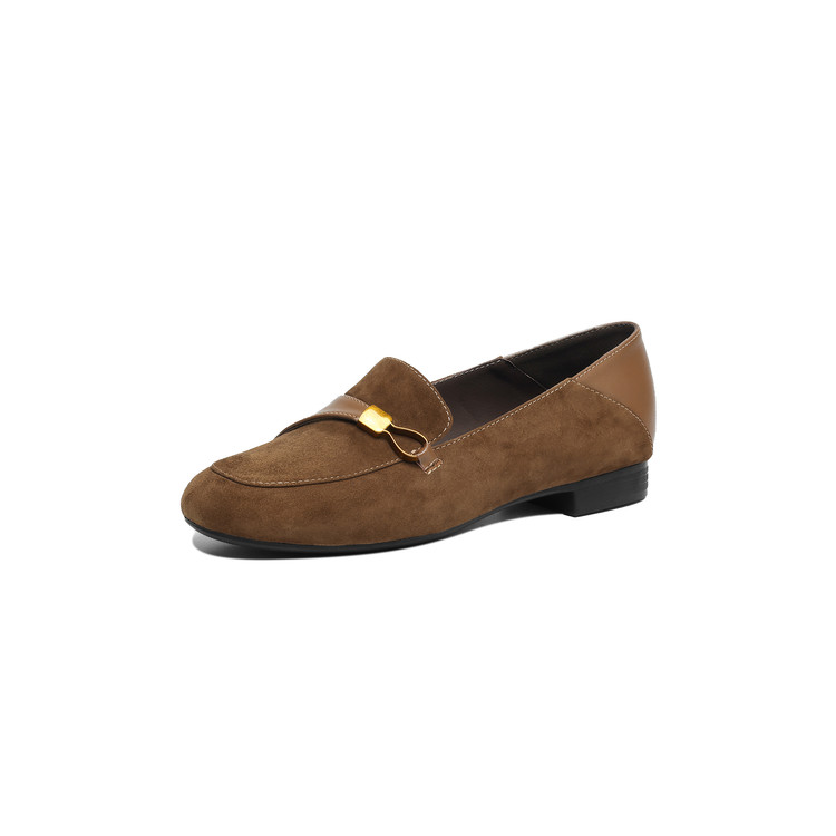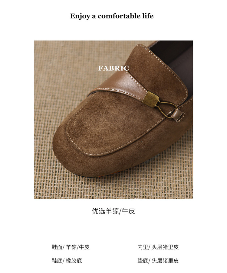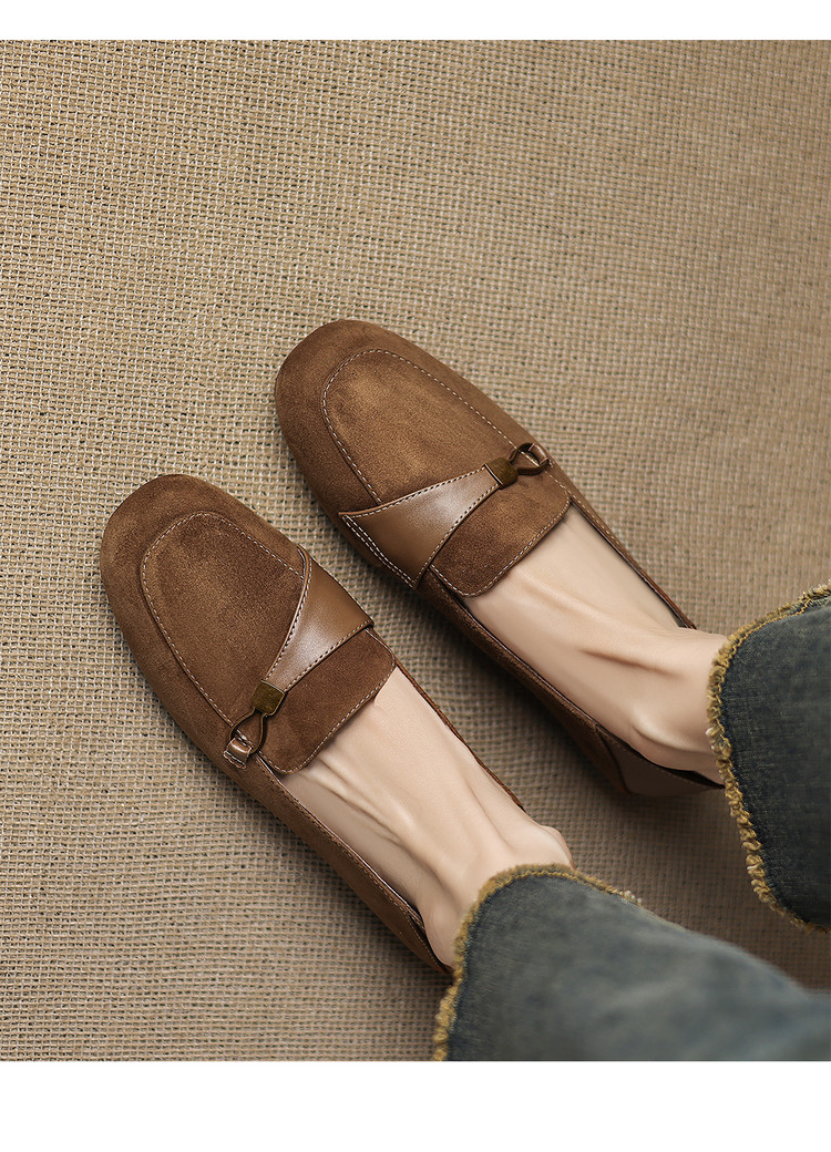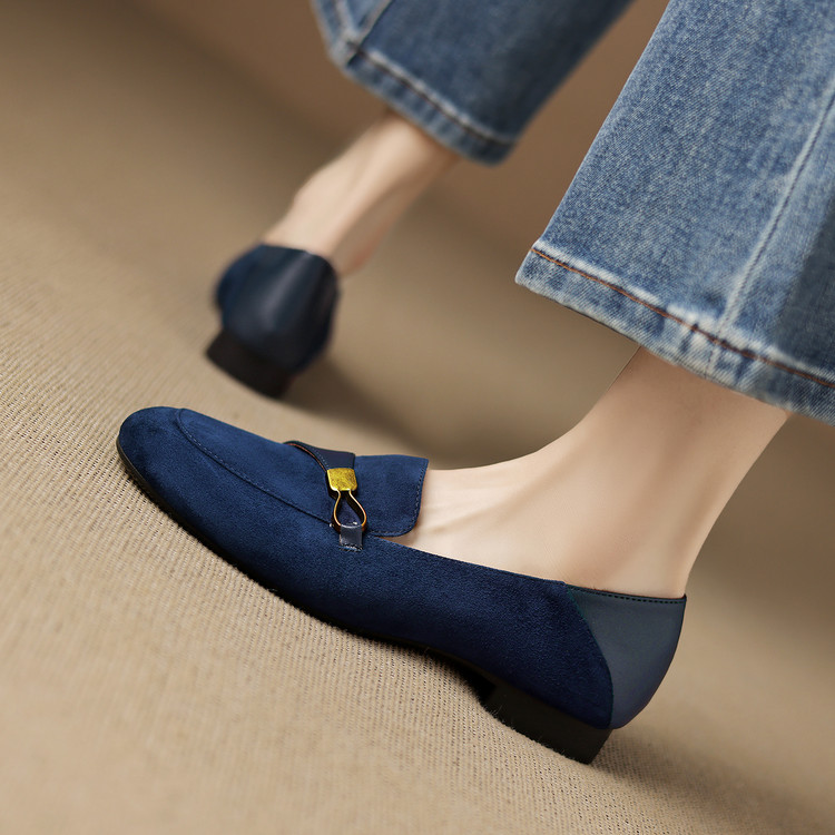 【预售5天】乐福鞋女中跟新款春秋季复古圆头单鞋女粗跟拼接小皮鞋JBL&JBL25-165